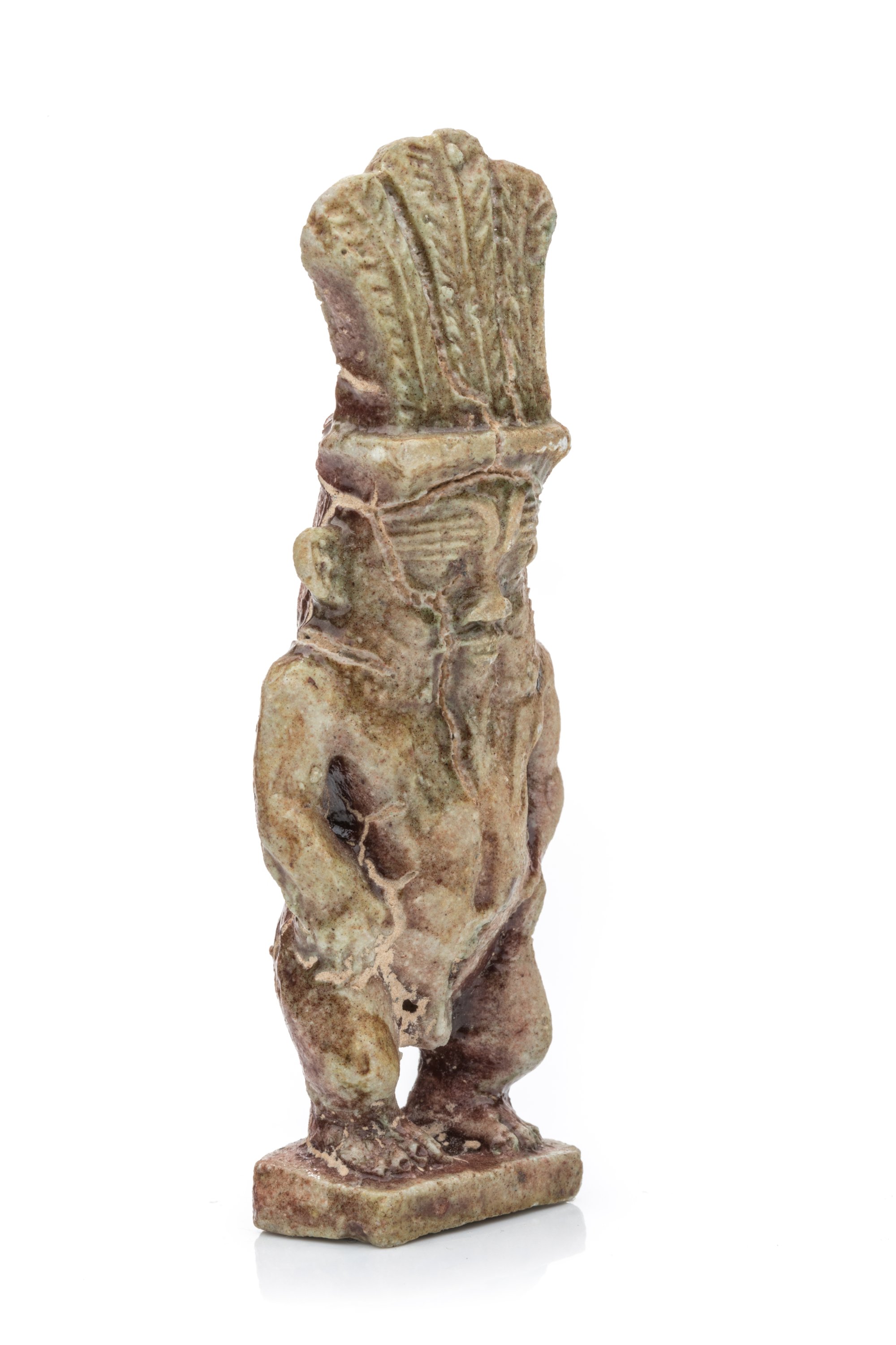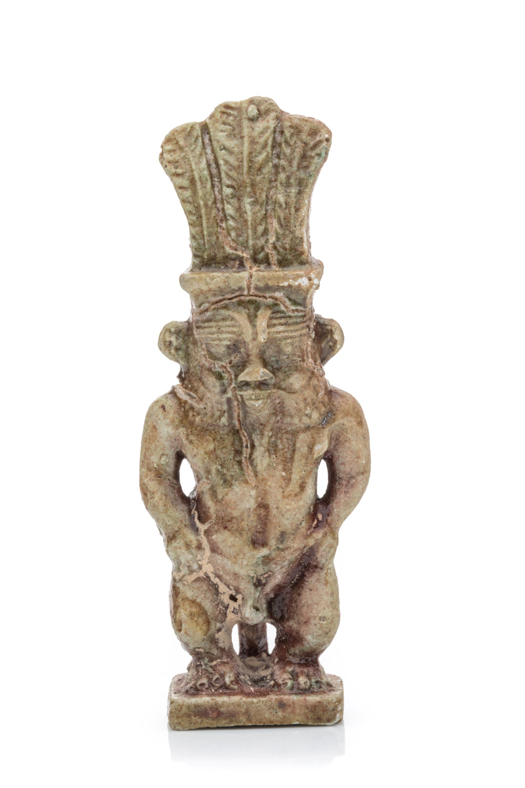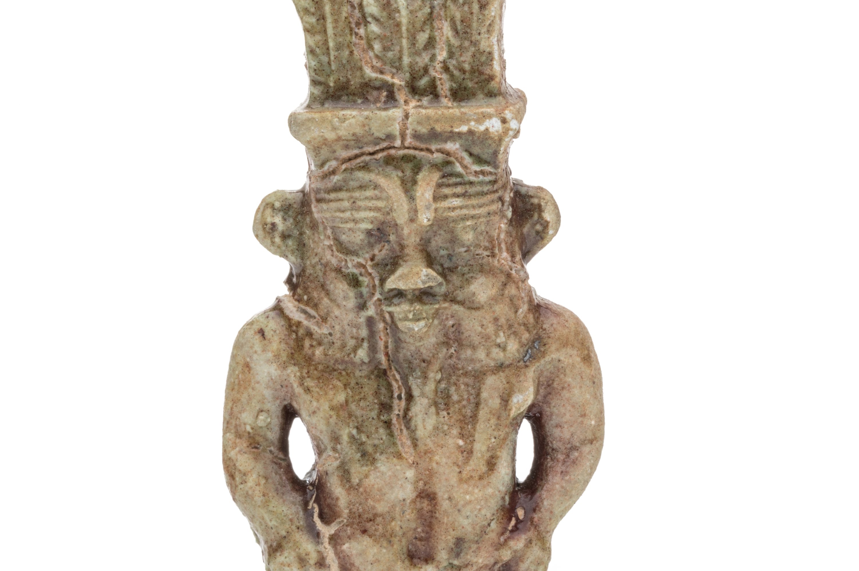 An Egyptian Late Period to Ptolemaic Period faience amulet representing god Bes.