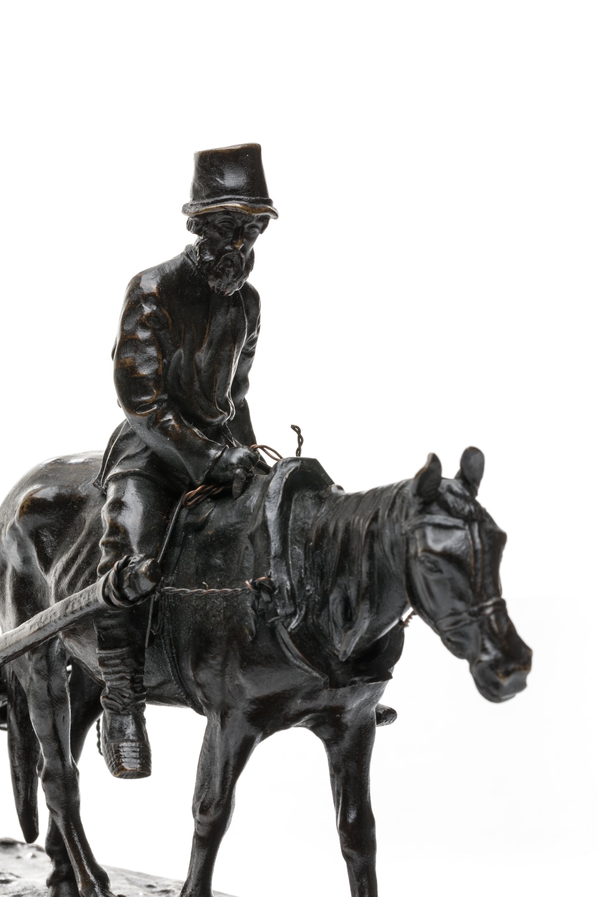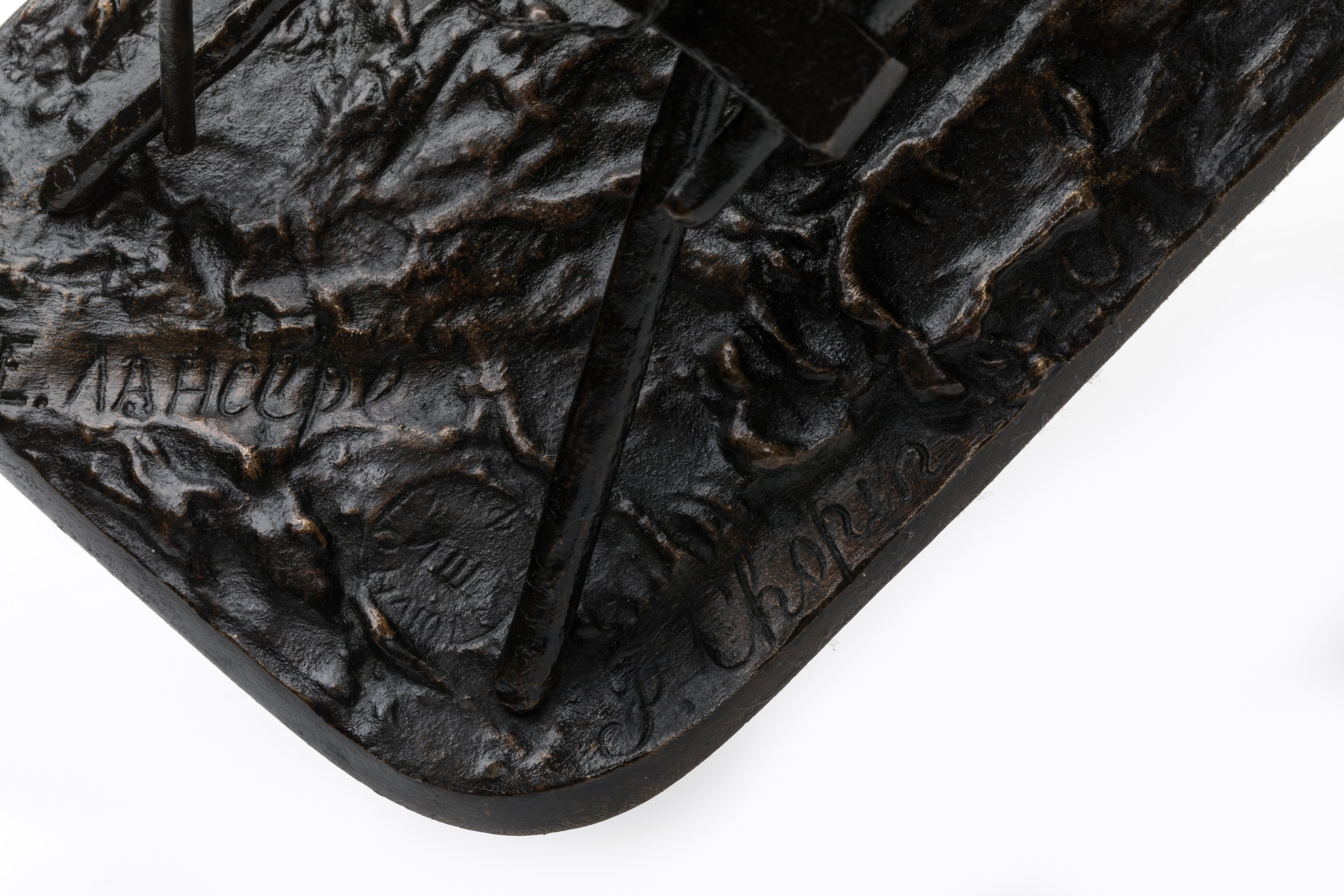 A bronze sculpture by Evgeni Alexandrovich Lanceray depicting peasants returning from the fields. Designed in 1873. Signed. Chopin foundry mark.