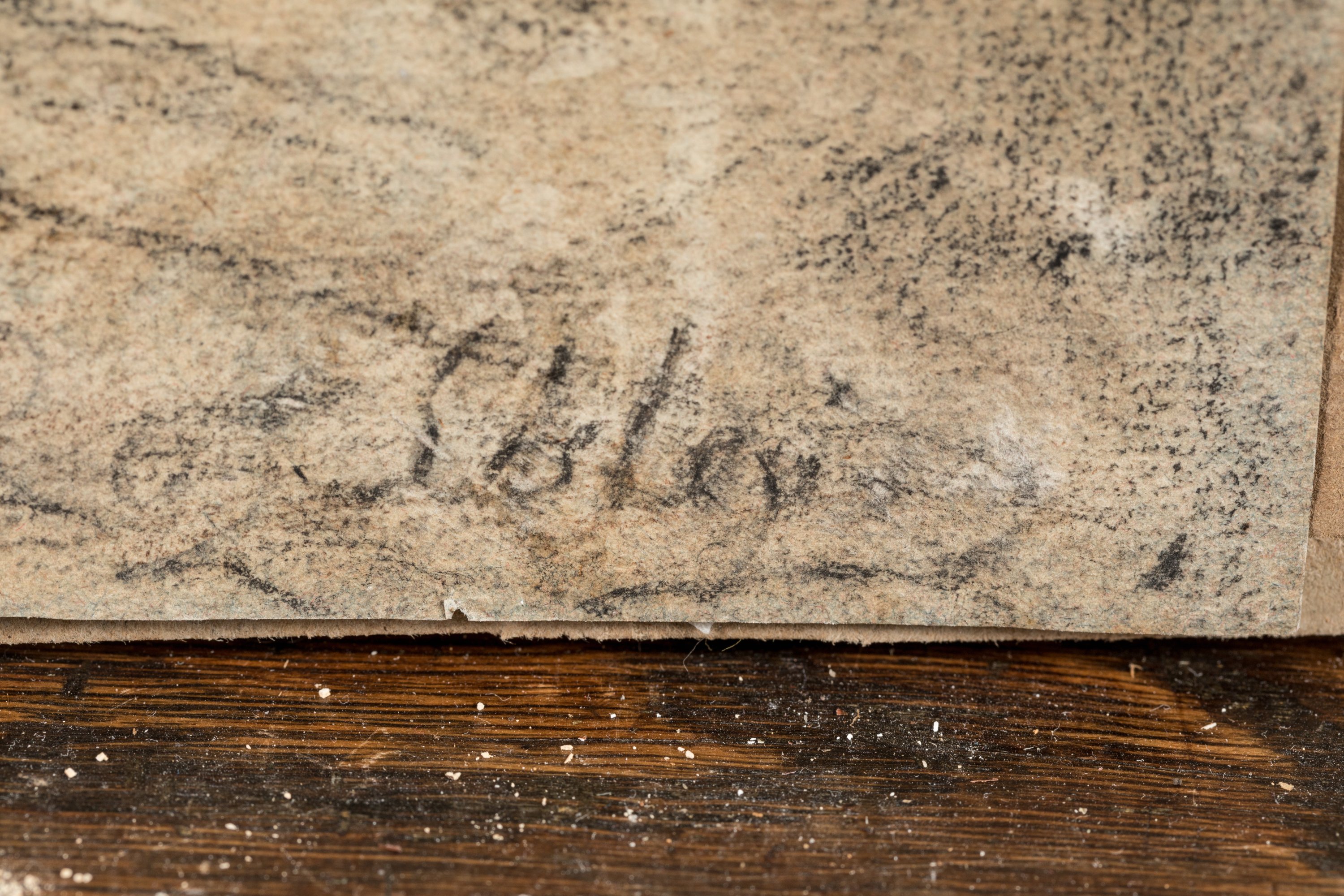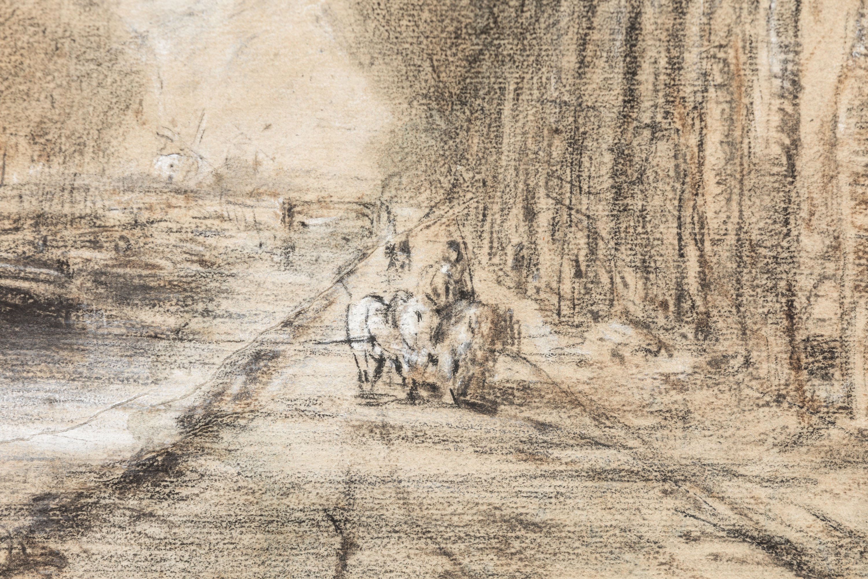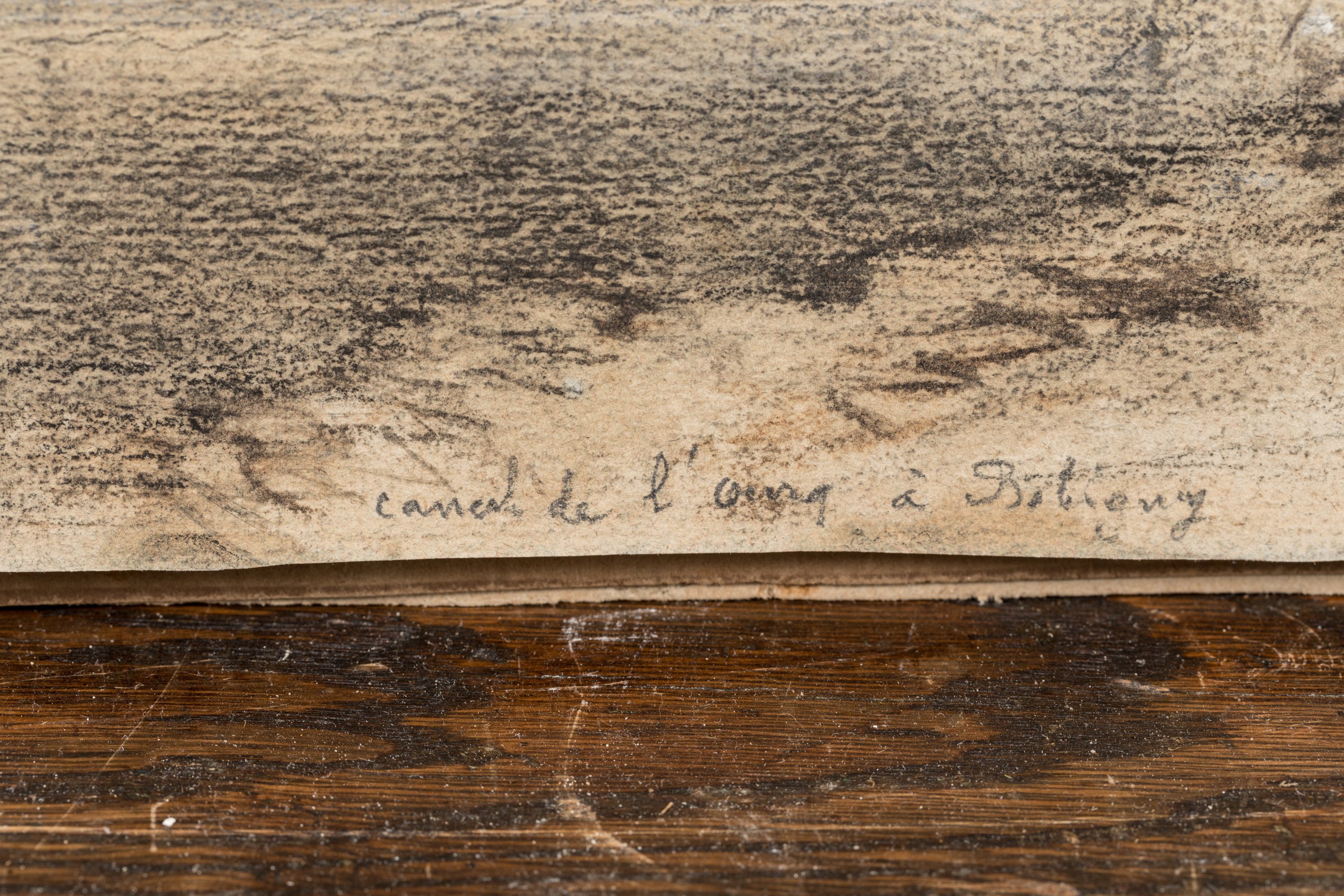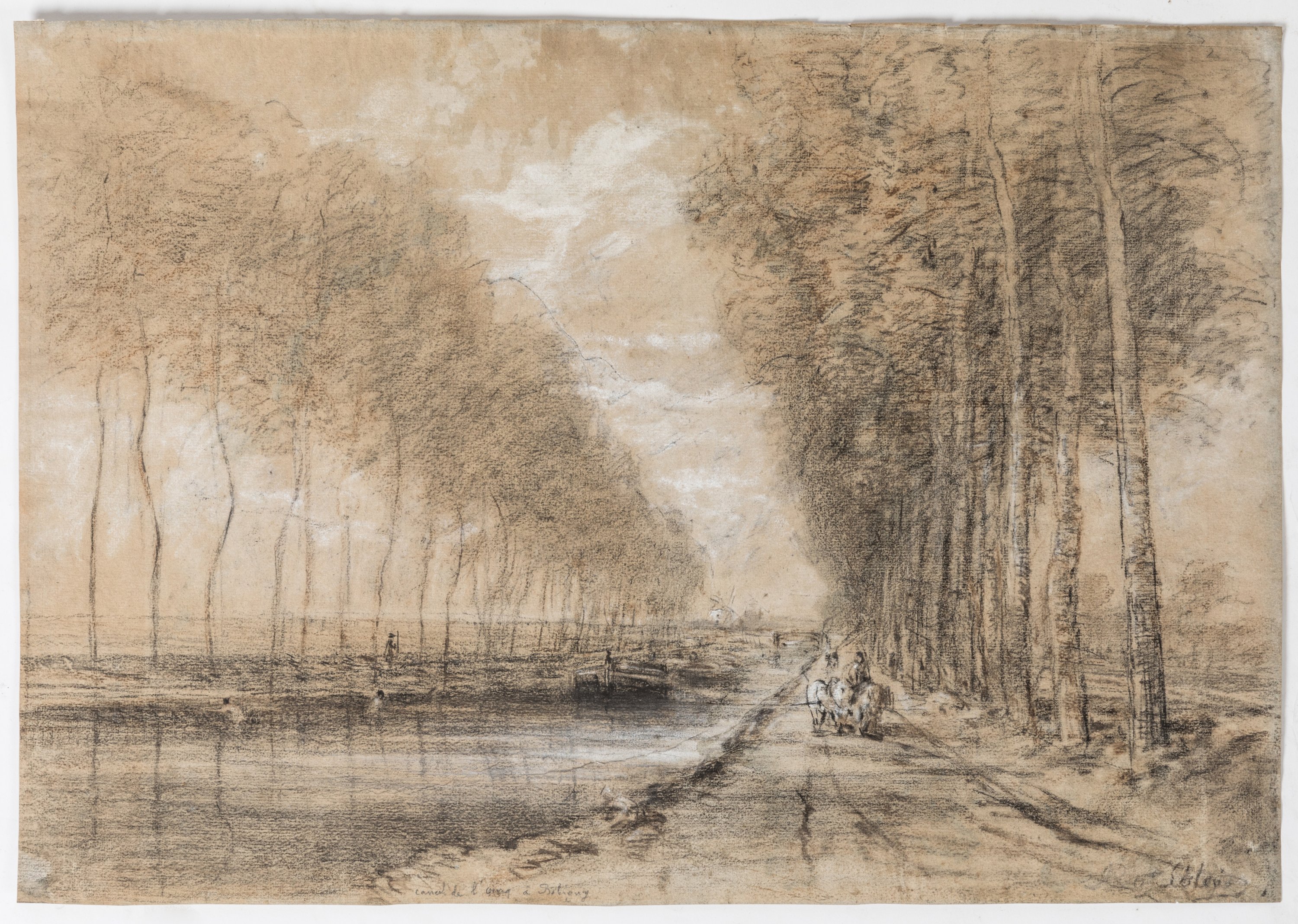 A 19th Century French School depiction of the Ourcq Canal in Bobigny, France. Charcoal and gouache on paper.
