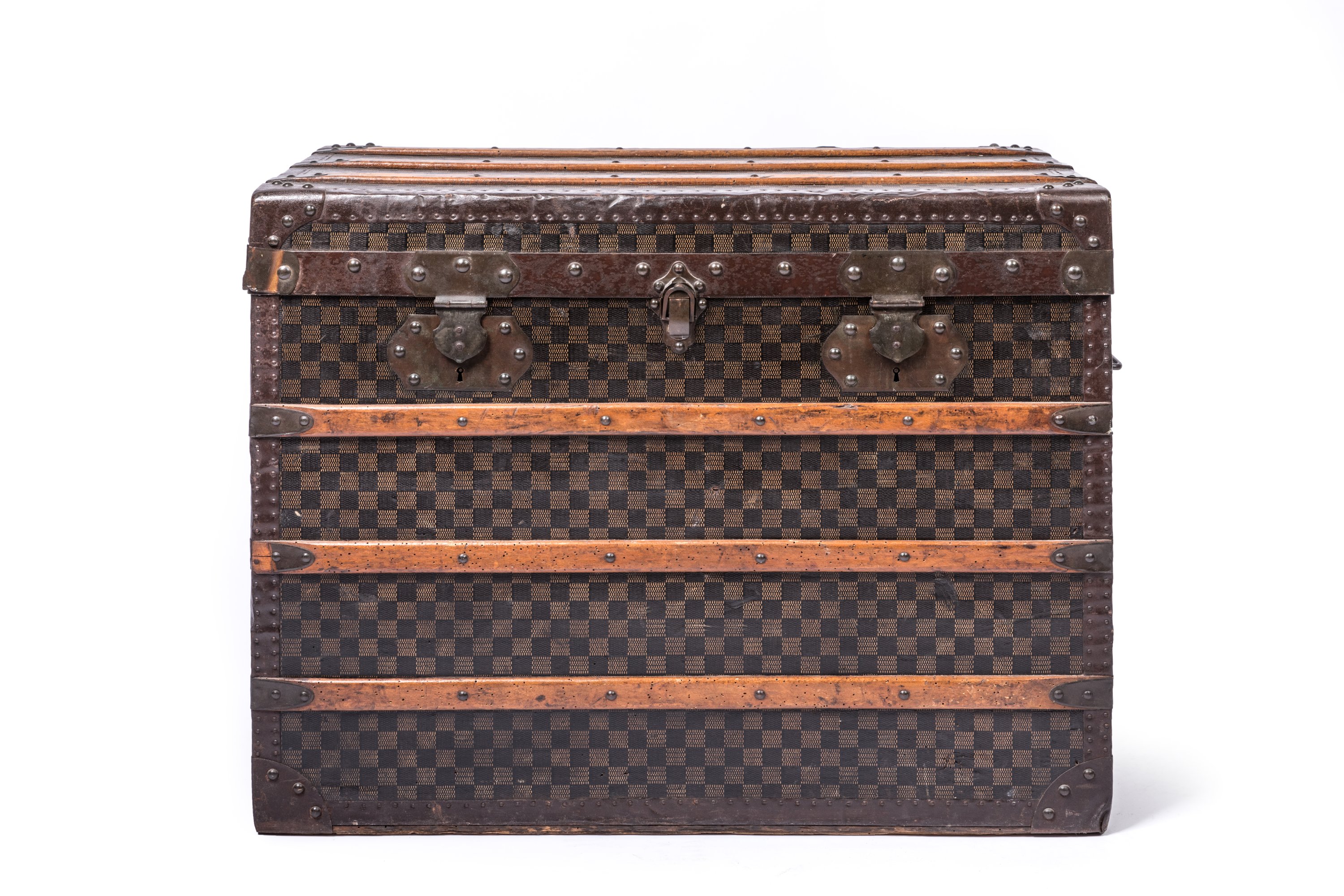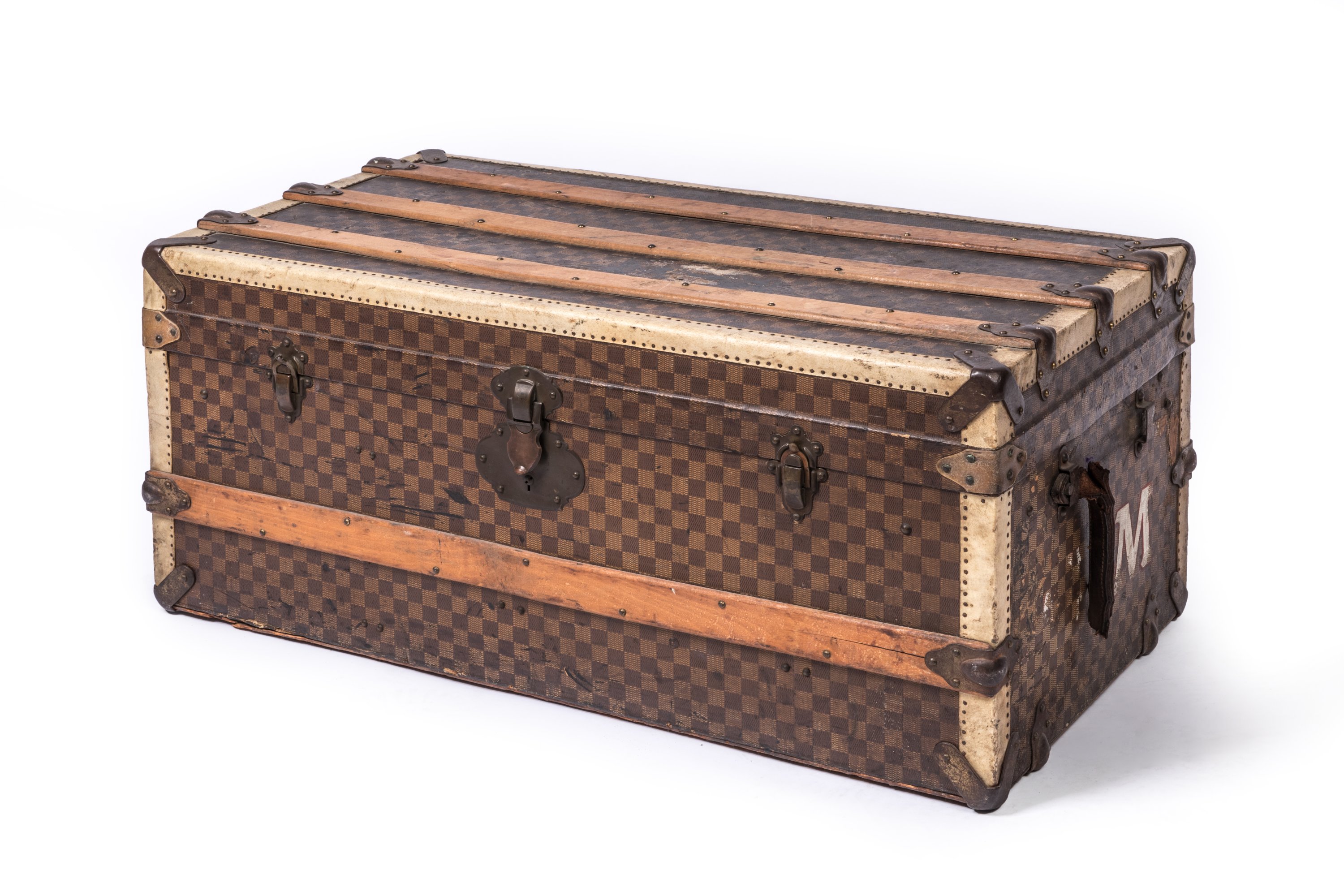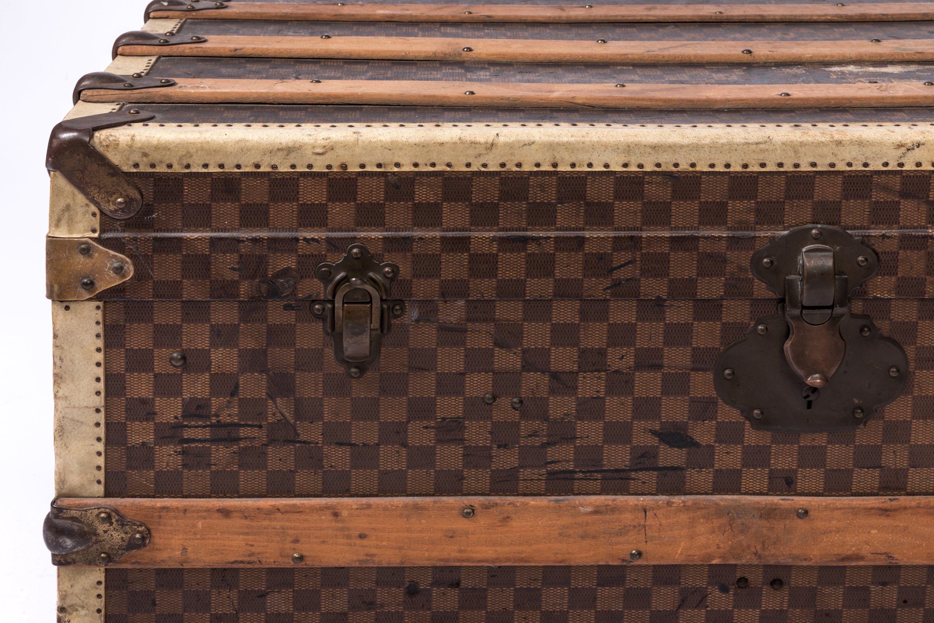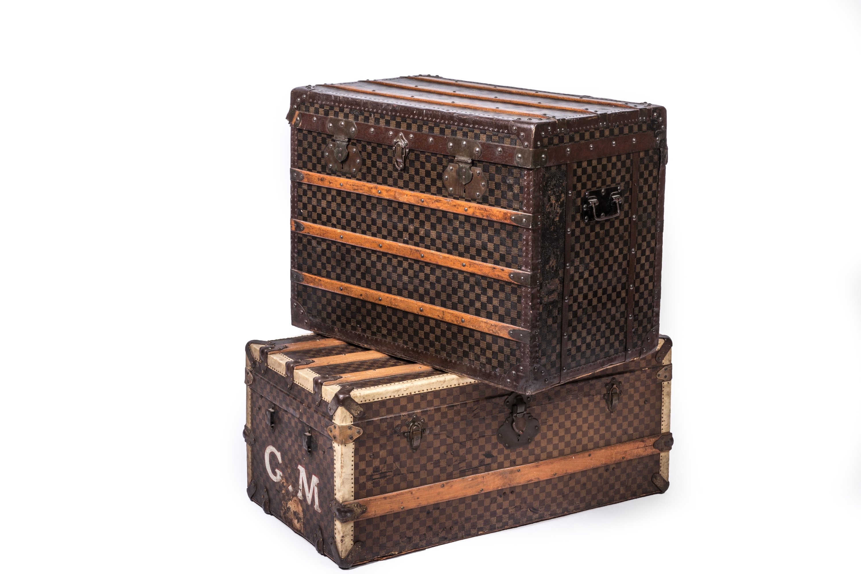 Two early 20th century trunks inspired by Louis Vuitton's designs.