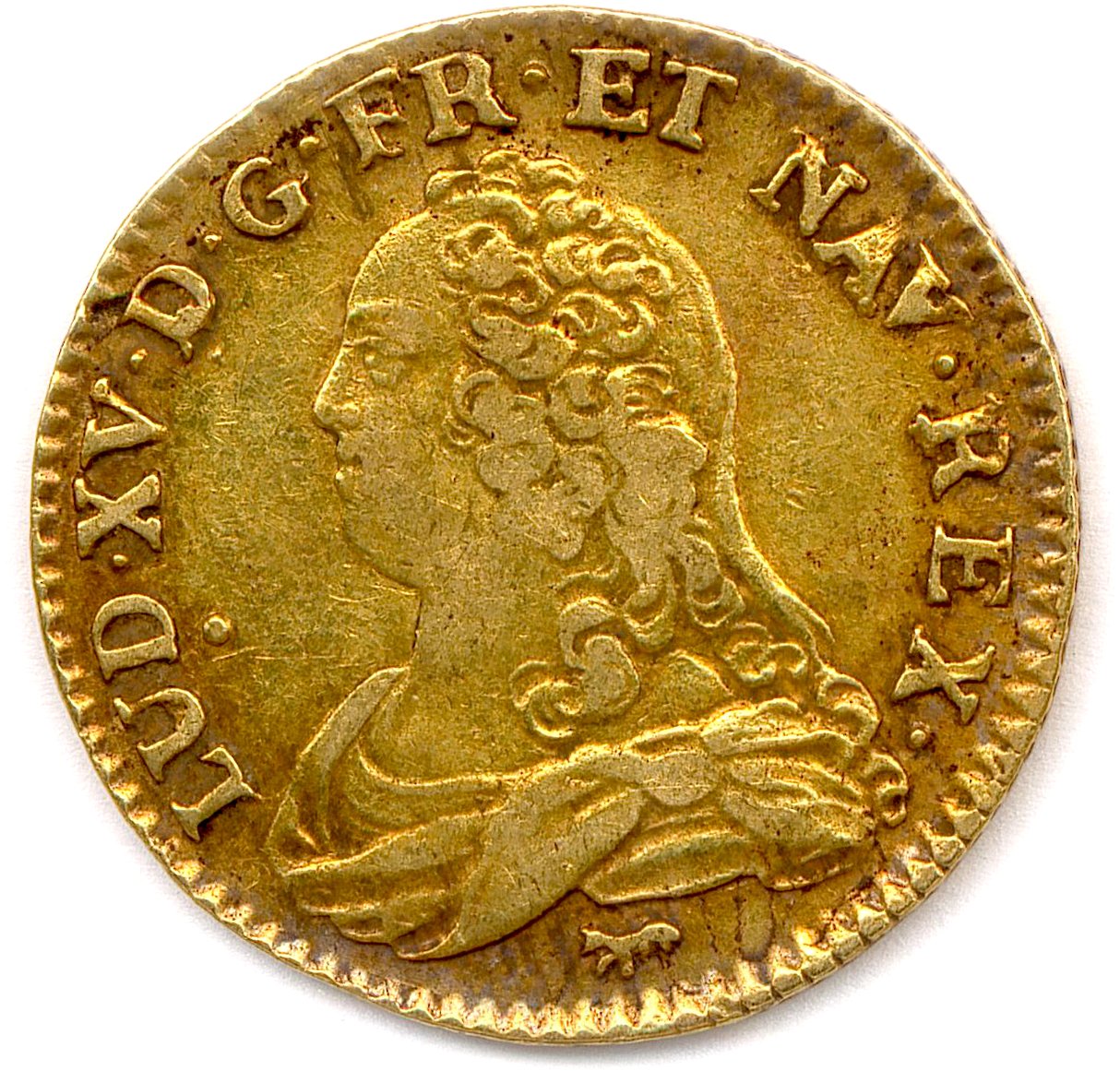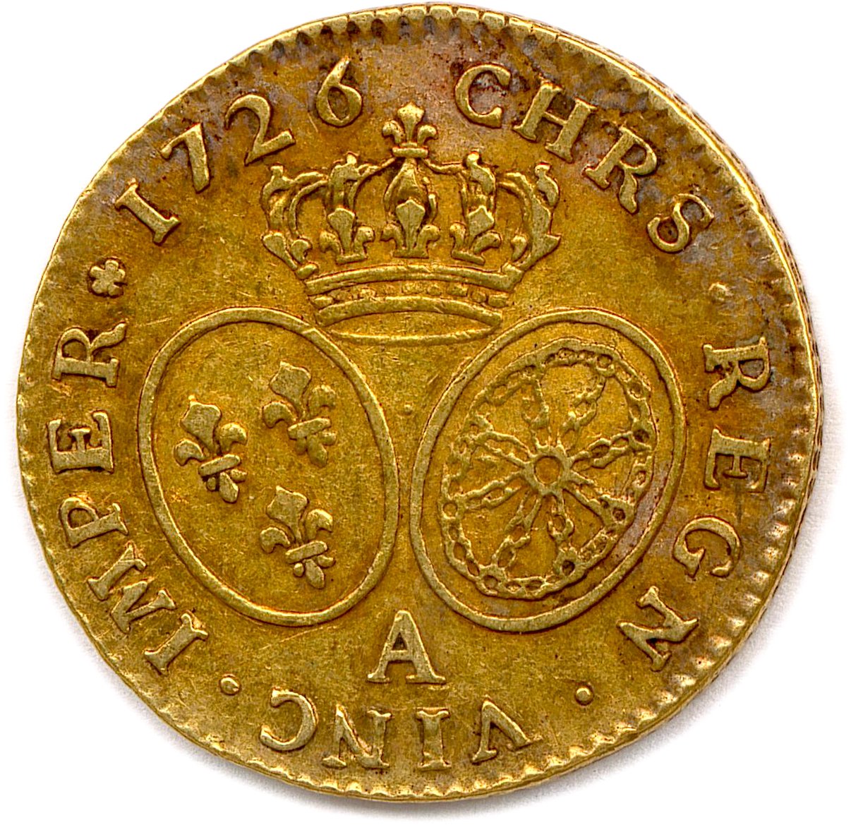 A 1726 "Louis d'or aux lunettes" gold coin.