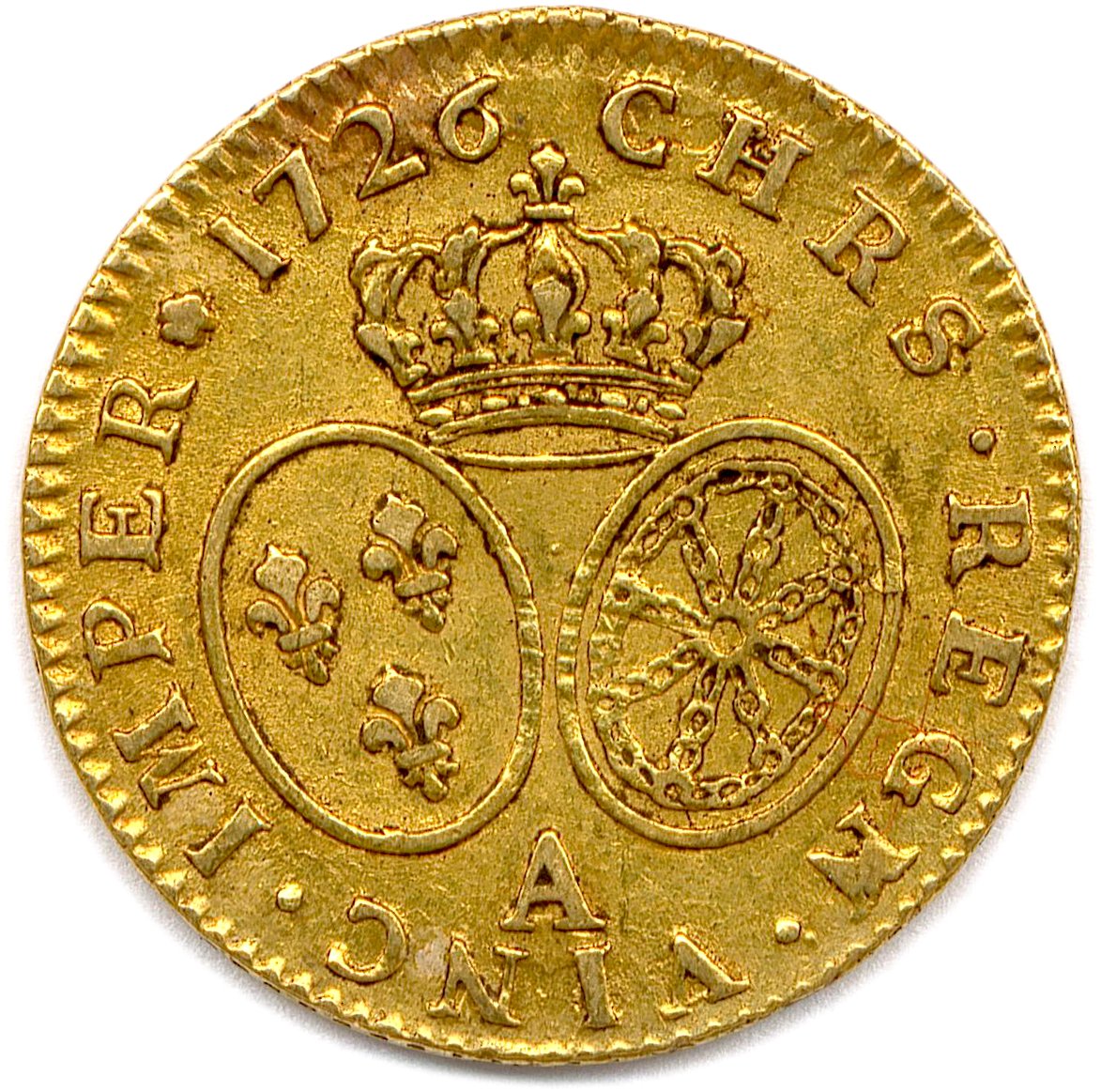 A 1726 "Louis d'or aux lunettes" gold coin.
