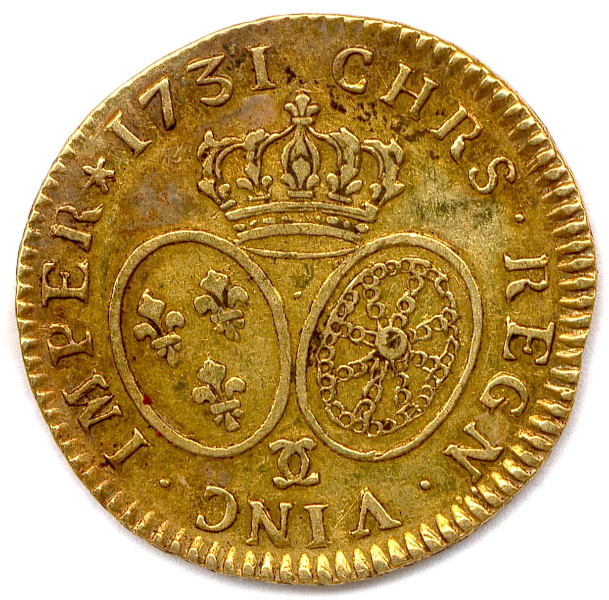 A 1731 "Louis d'or aux lunettes" gold coin.