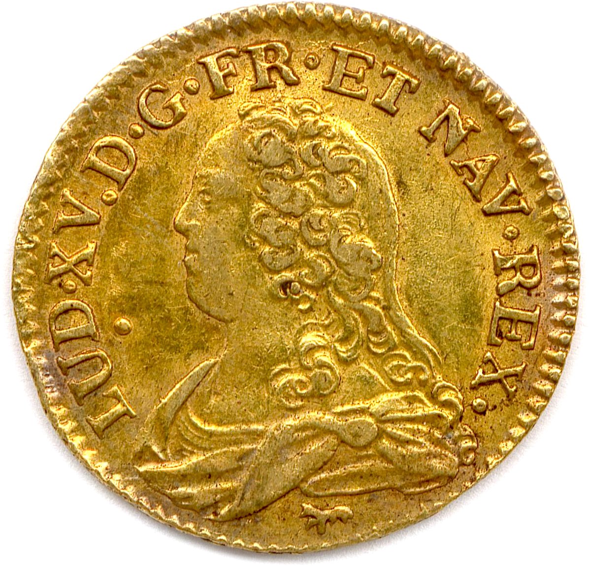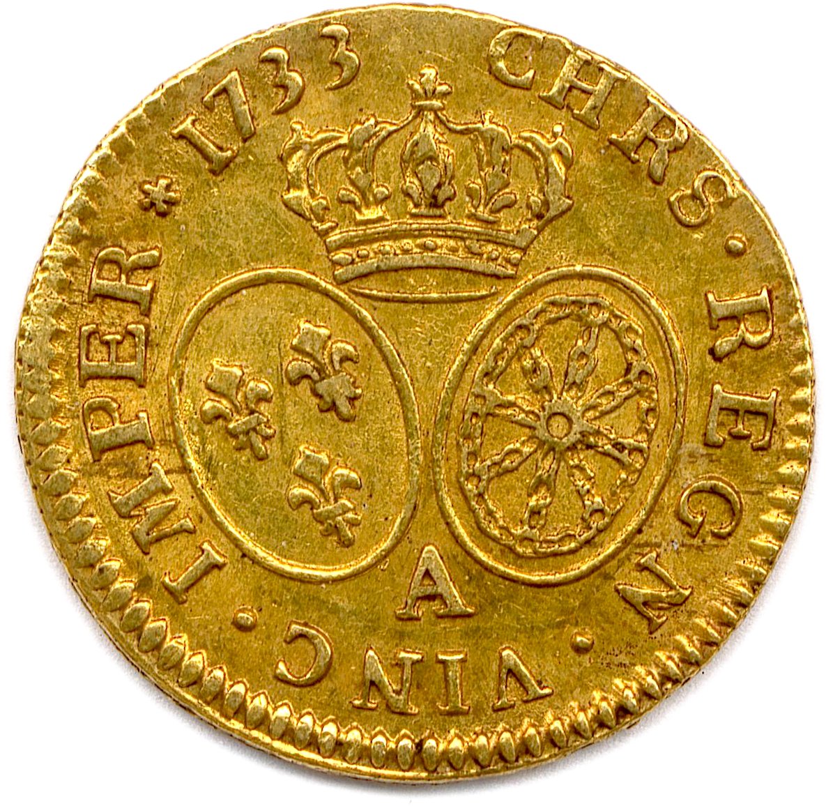 A 1733 "Louis d'or aux lunettes" gold coin.