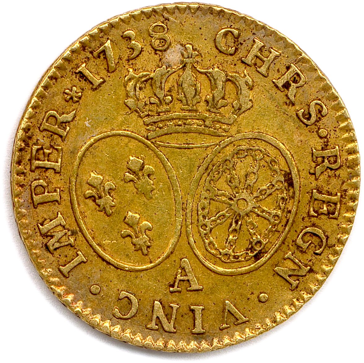 A 1738 "Louis d'or aux lunettes" gold coin.
