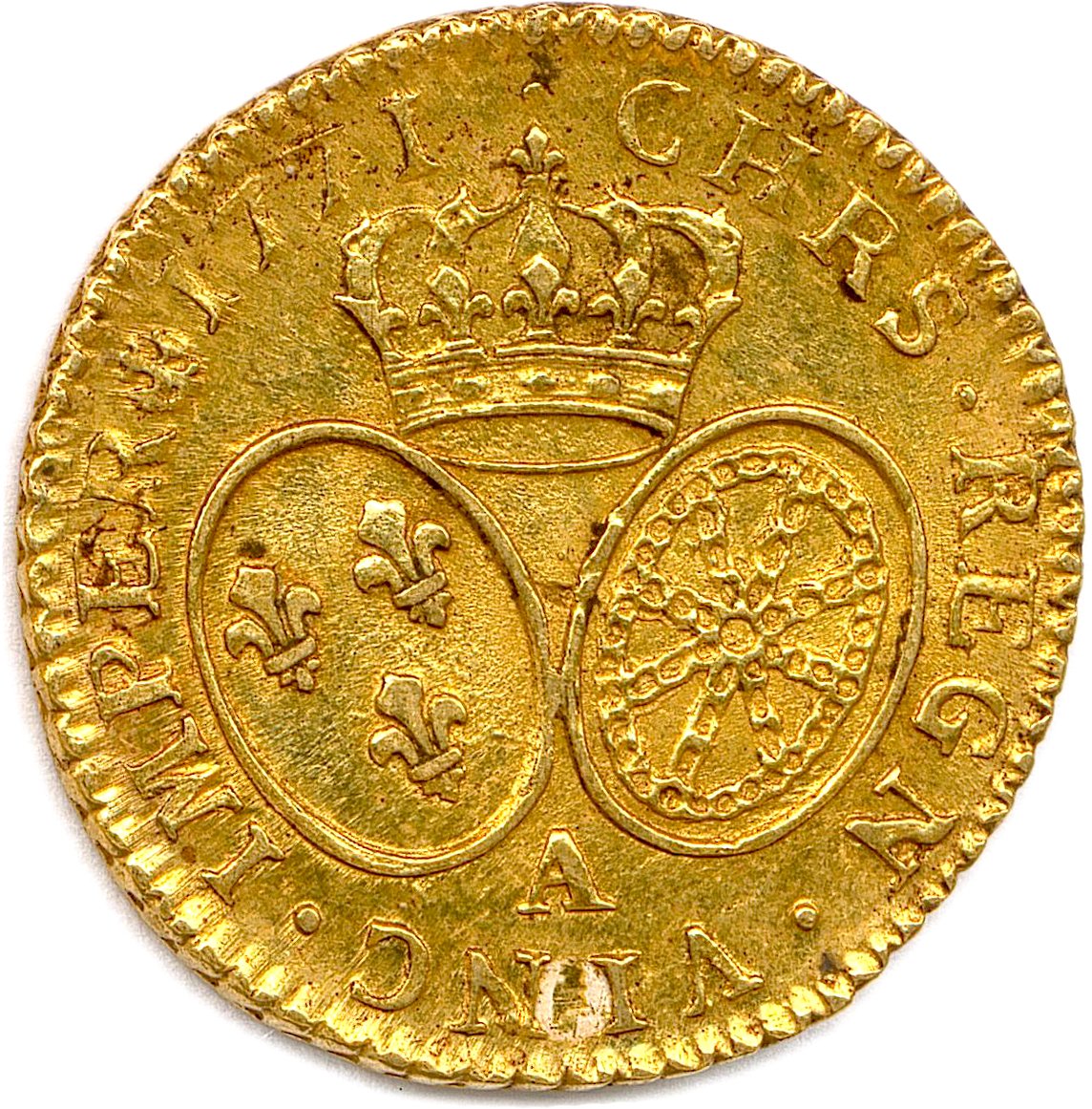 A 1771 "Louis d'or à la vieille tête" gold coin.