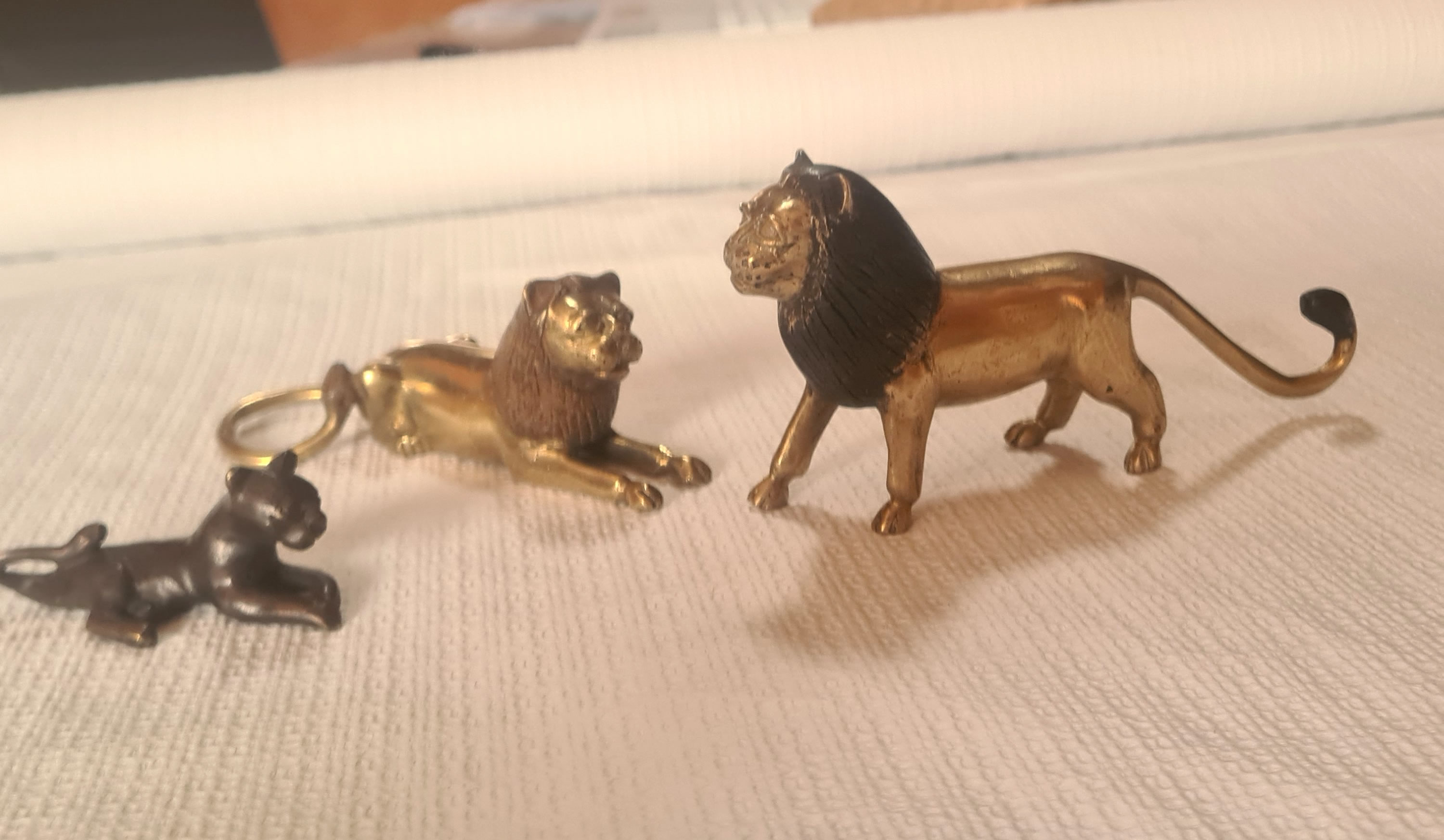 3 statuettes de lions en laiton réalisées par les artistes du Burkina Faso