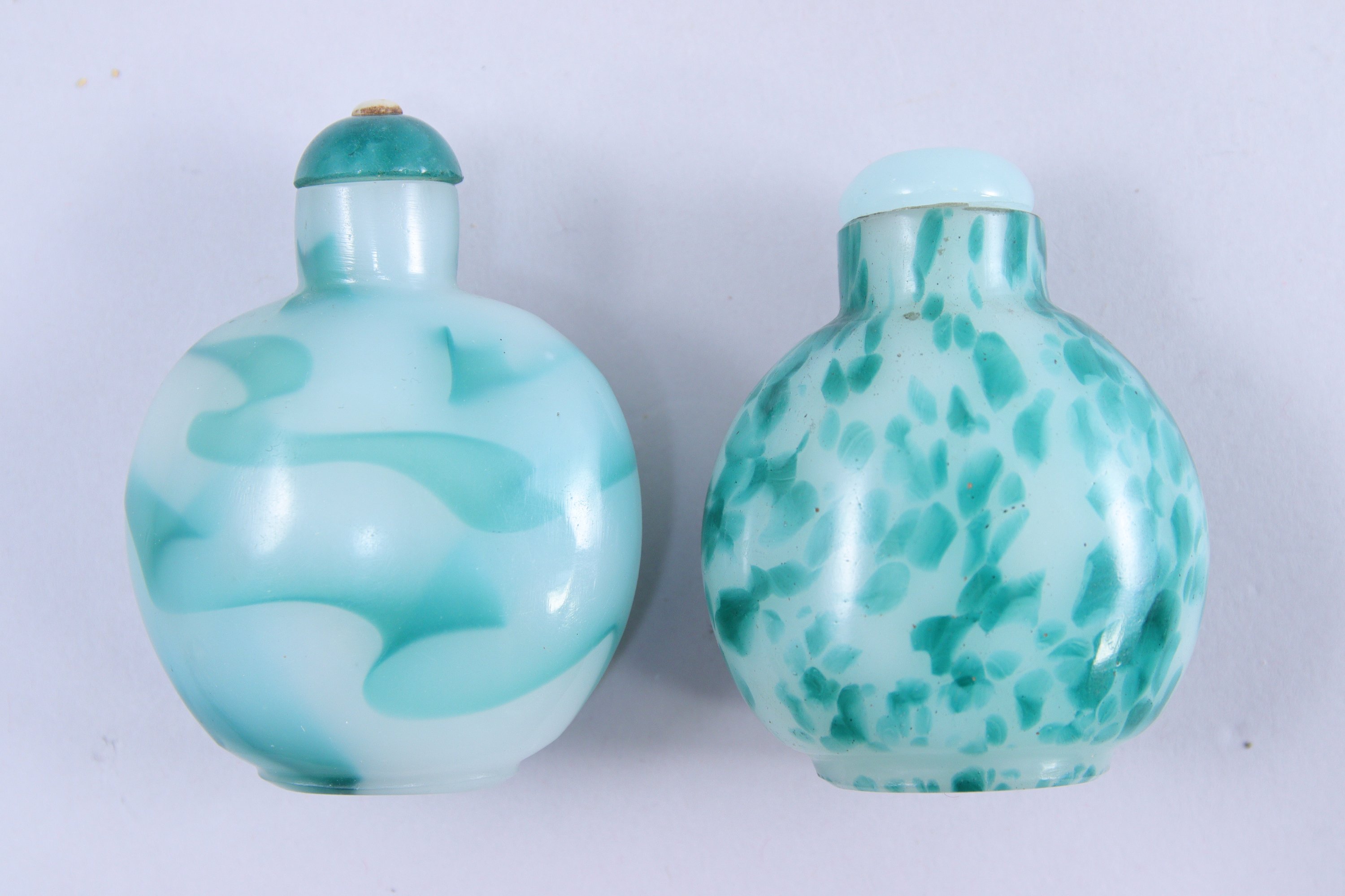 en verre vert et blanc dit 'sandwich". Bouchons en verre.