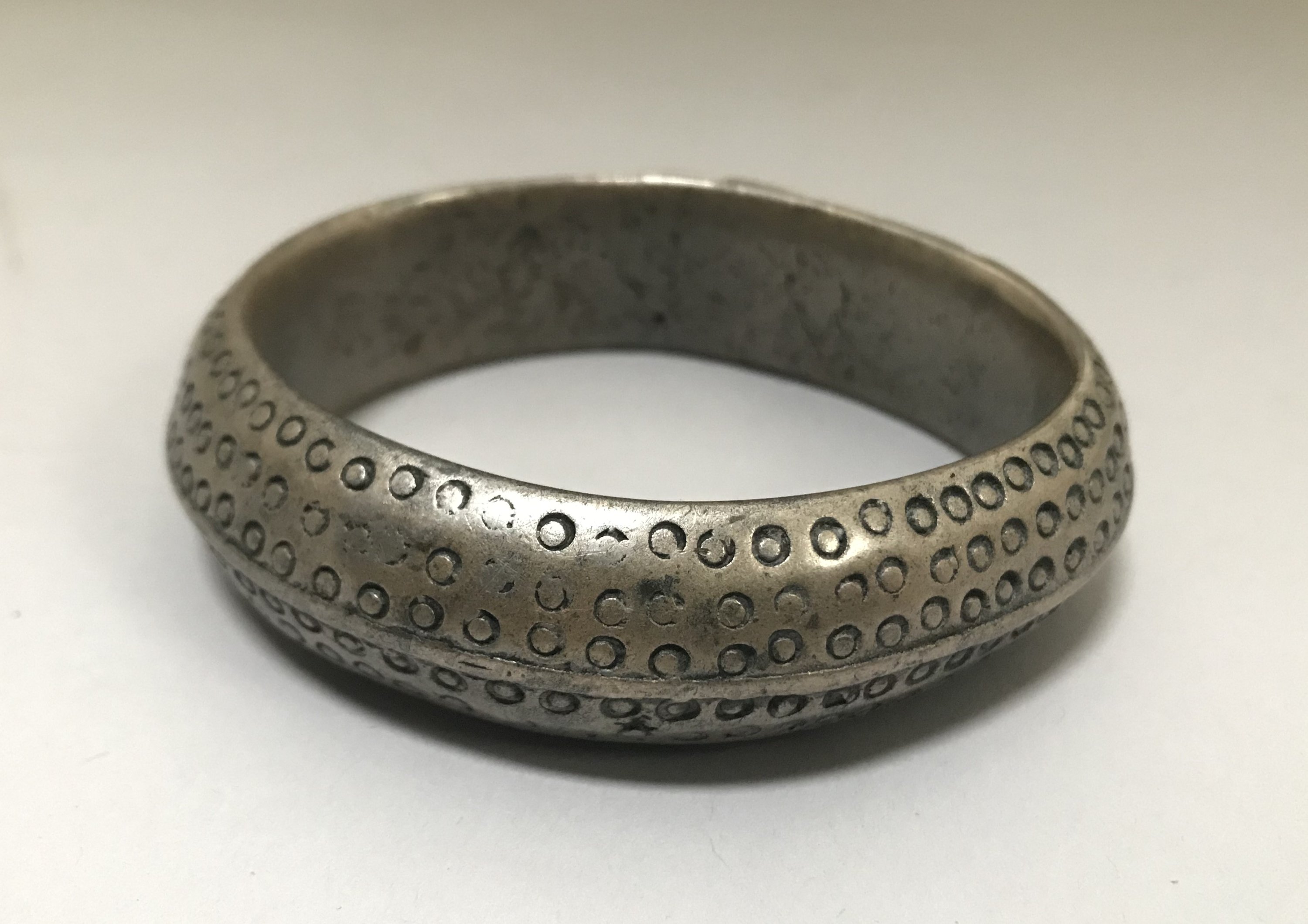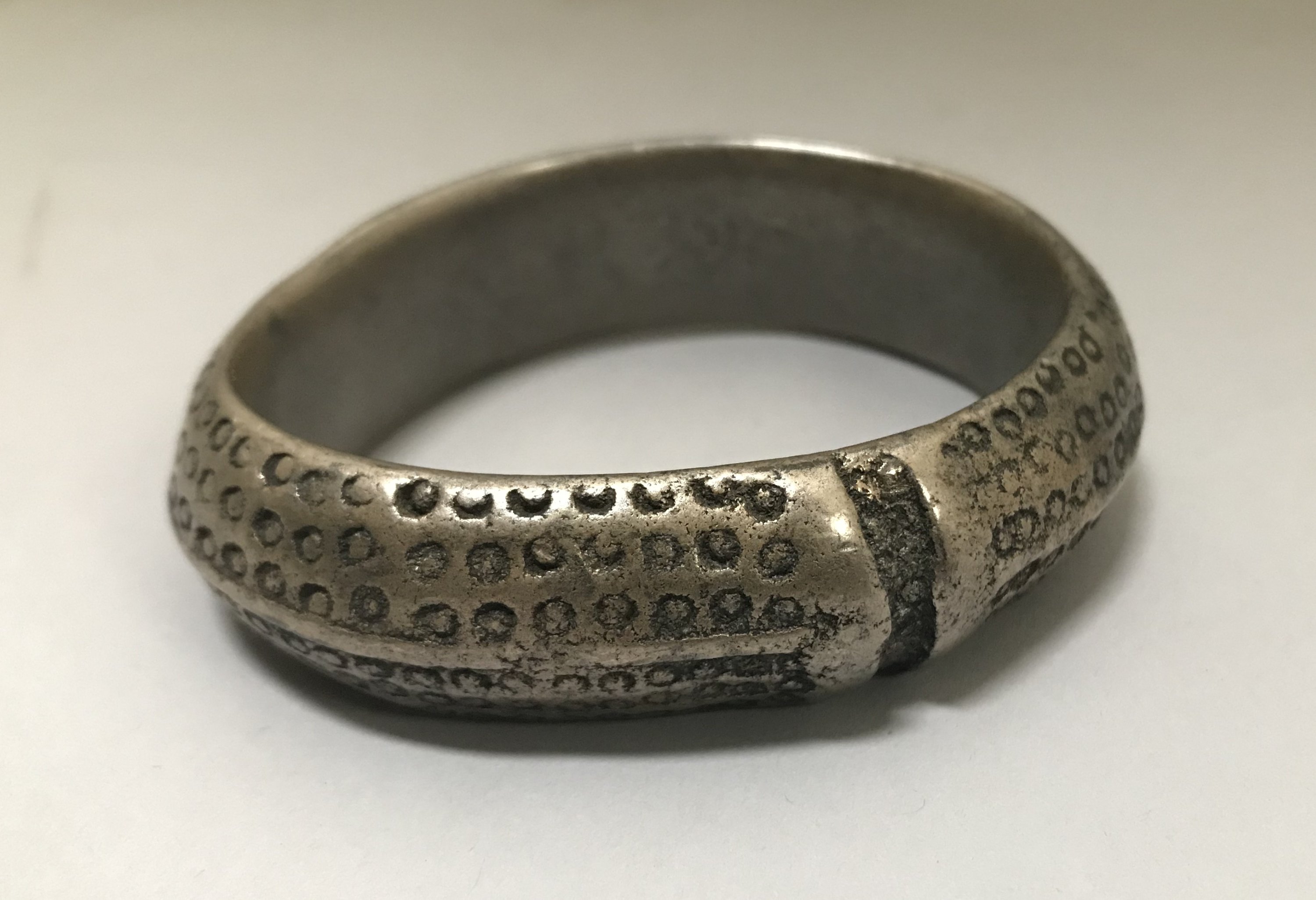 en alliage de bronze et d’argent de forme ovale avec un décor gravé de deux zones de cercles.