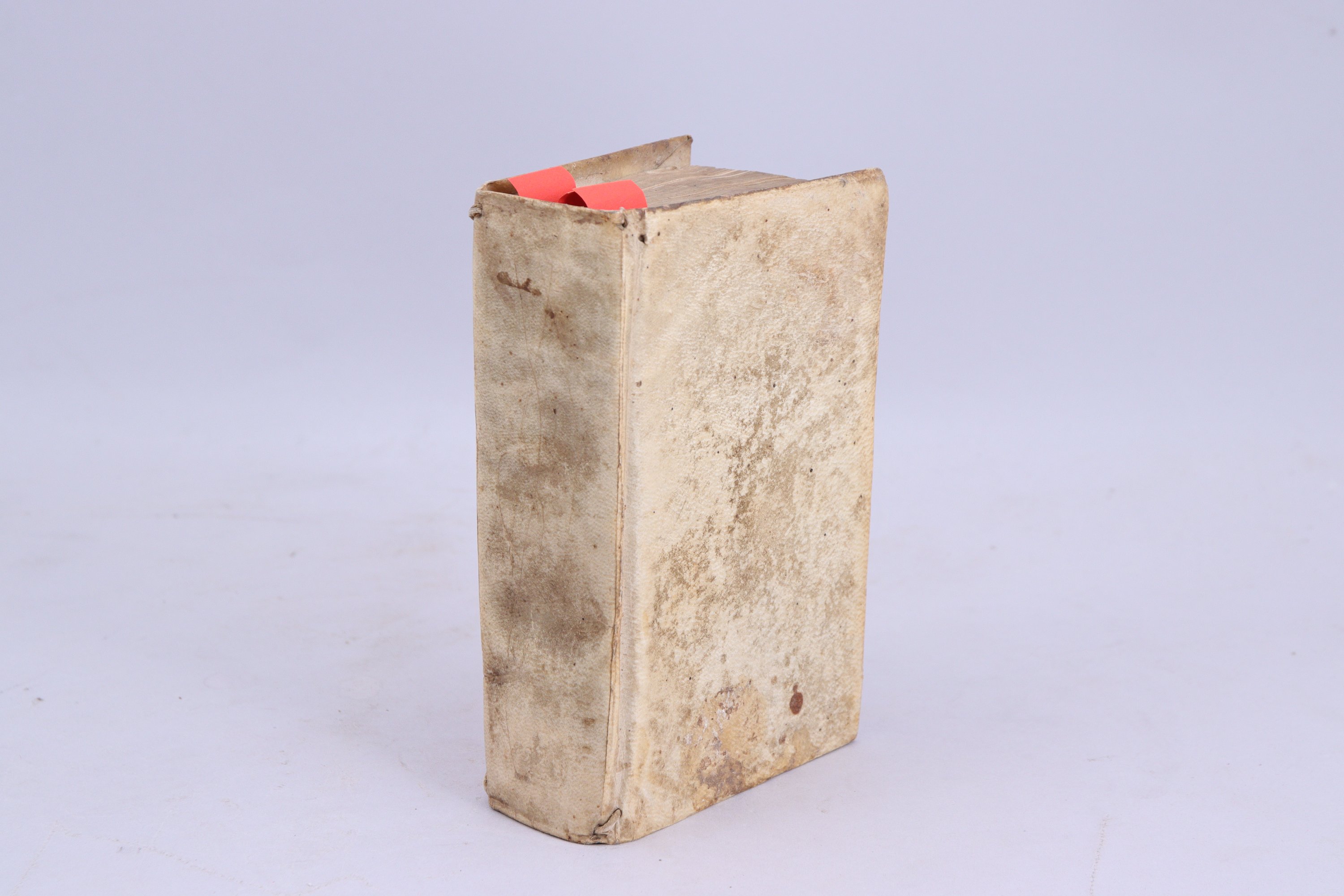 2 parties avec titres séparés en 1 vol. in-8, (16 ff), 312 feuillets, (25 ff) ; 24 feuillets. Plein vélin rigide légèrement postérieur. (Vélin un peu sali. Mouillures claires, stabilisées, sur les deux premiers cahiers. Titre de la première partie et dernier feuillet de la seconde partie empoussiérés).