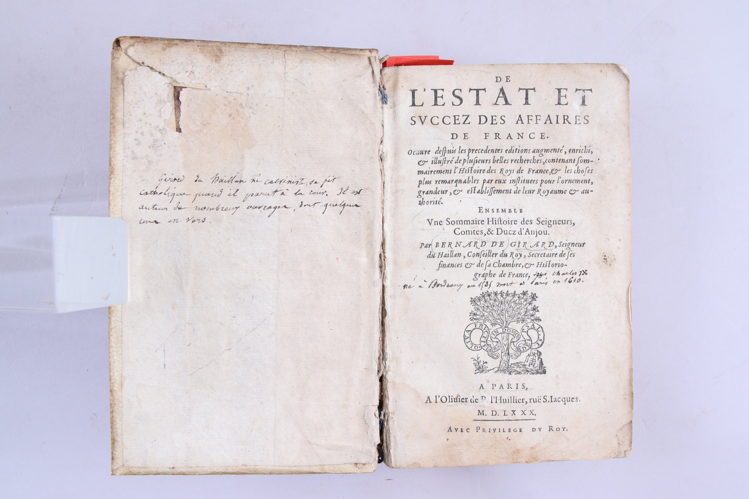 Par Bernard de Girard, Seigneur du Haillan, Conseiller du Roy, Secrétaire de ses finances et de sa Chambre, et Historiographe de France.