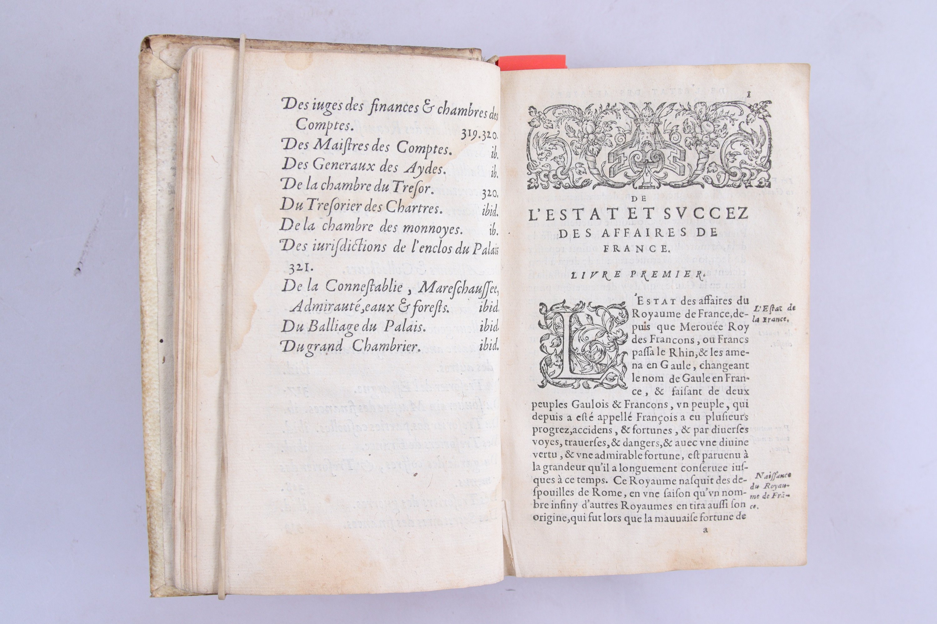 De l'estat et succez des affaires de France. Oeuvre despuis les precedentes editions augmenté, enrichi et illustré de plusieurs belles recherches, contenant sommairement l'Histoire des Roys de France & les choses les plus remarquables par eux instituées pour l'ornement, grandeur & establissement de leur Royaume et authorité.