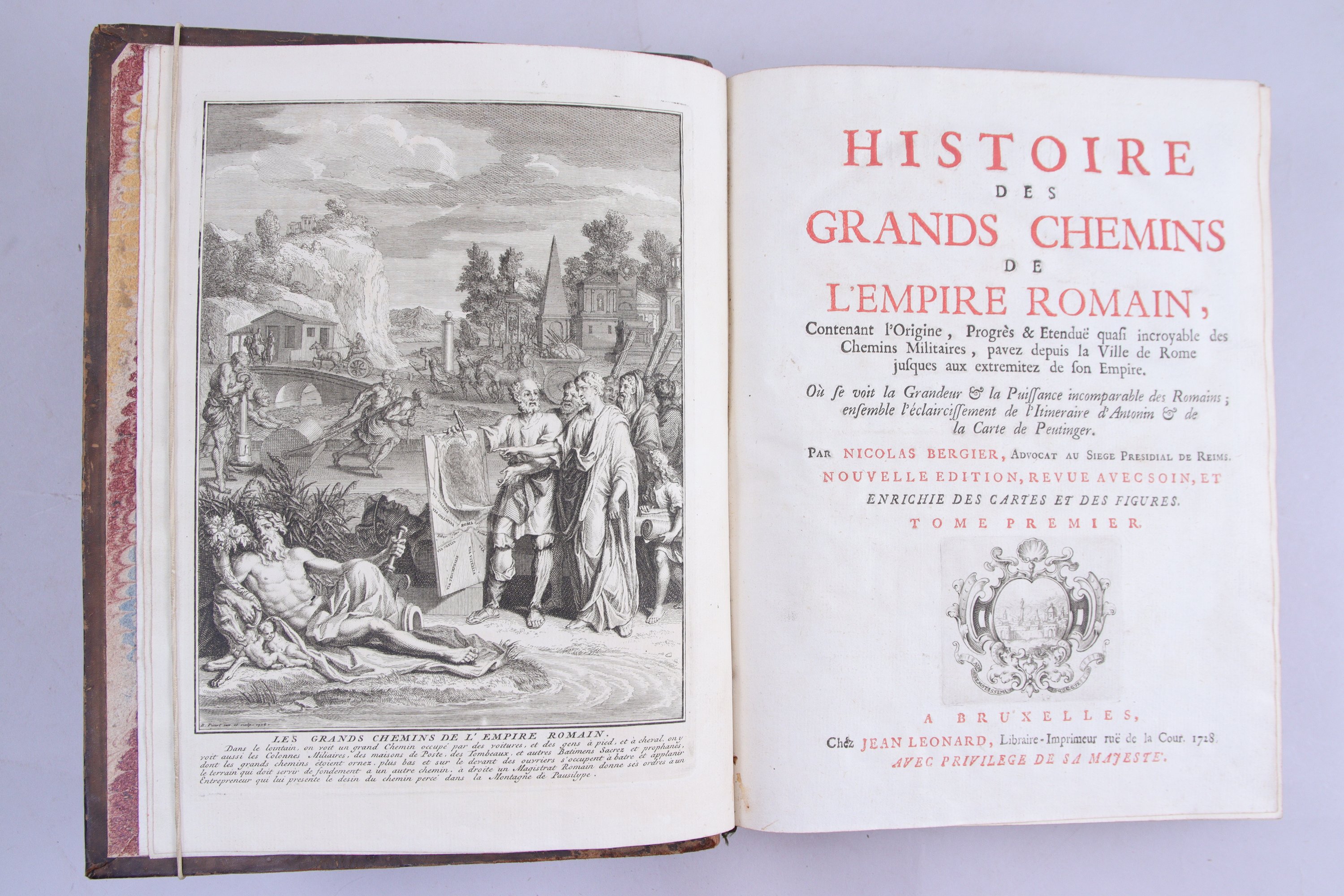 Titre-frontispice, portrait, 4 planches gravées sur cuivre et table de Peutinger en 8 segments.