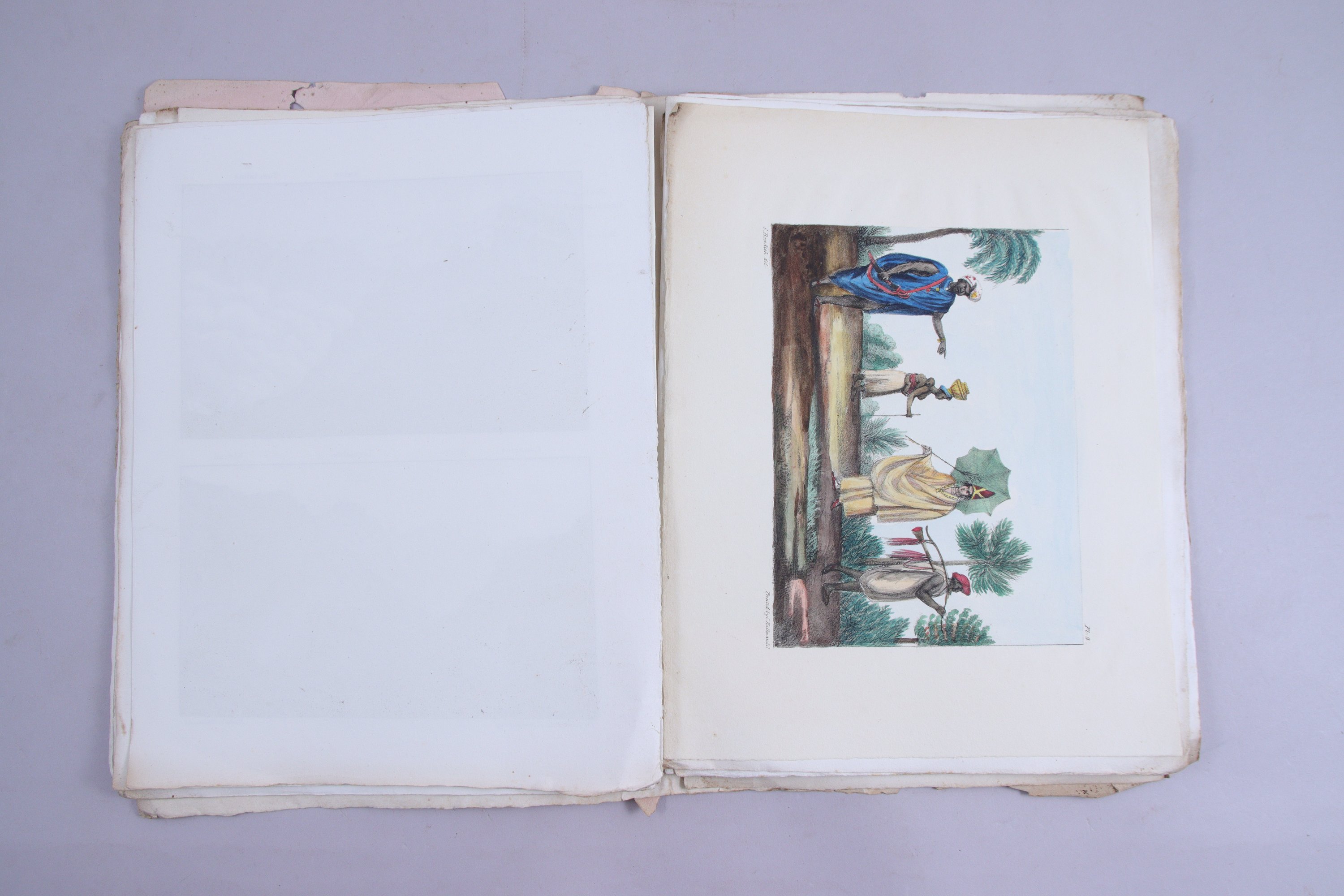 Atlas complet de l'explication des planches et des 22 lithographies (dont 4 doubles et 3 en couleurs) pour la plupart dessinées et gravées par Sarah Bowdich, épouse du naturaliste Thomas Edward Bowdich (1791-1824), ami de Cuvier et de Humboldt.
