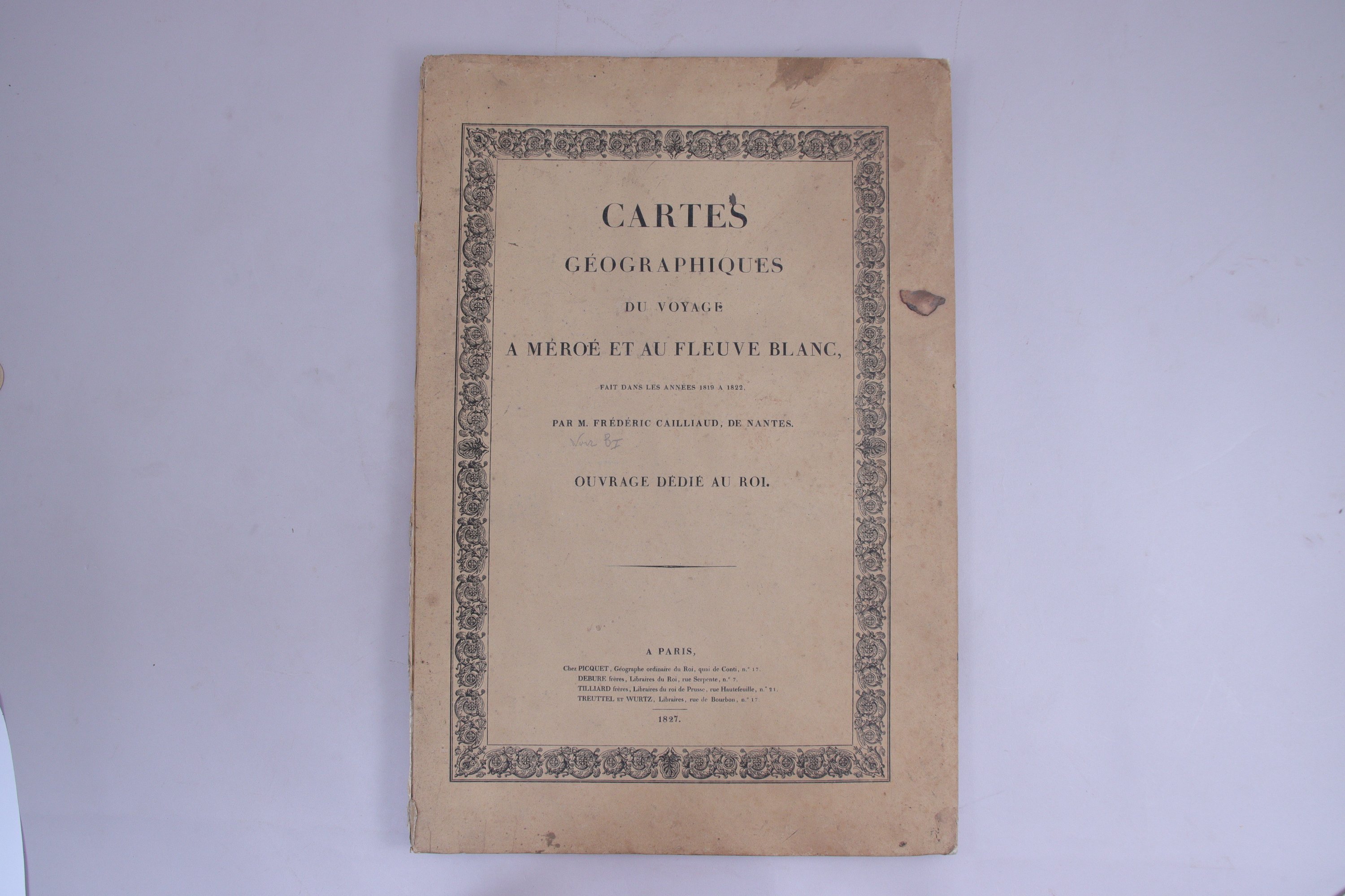 Cartes géographiques du voyage à Méroé et au Fleuve Blanc fait dans les années 1819 à 1822 par M. Frédéric Cailliaud, de Nantes. Explication de la carte détaillée du cours du Nil dans la Haute et Basse Nubie.