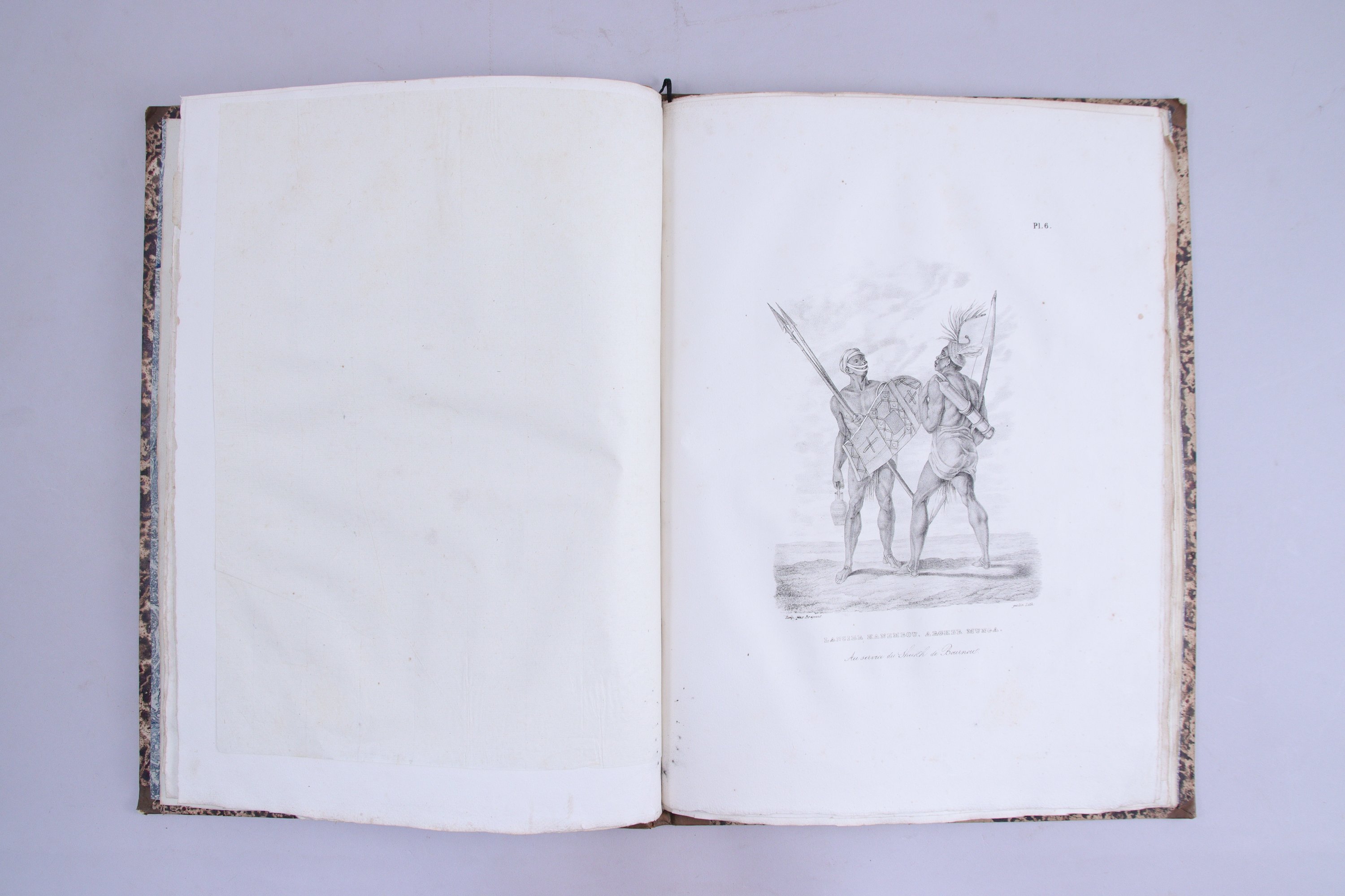 14 lithographies à pleine page (costumes, paysages etc...) et 5 cartes, dont une carte générale des voyages mesurant 640 X 470 mm.