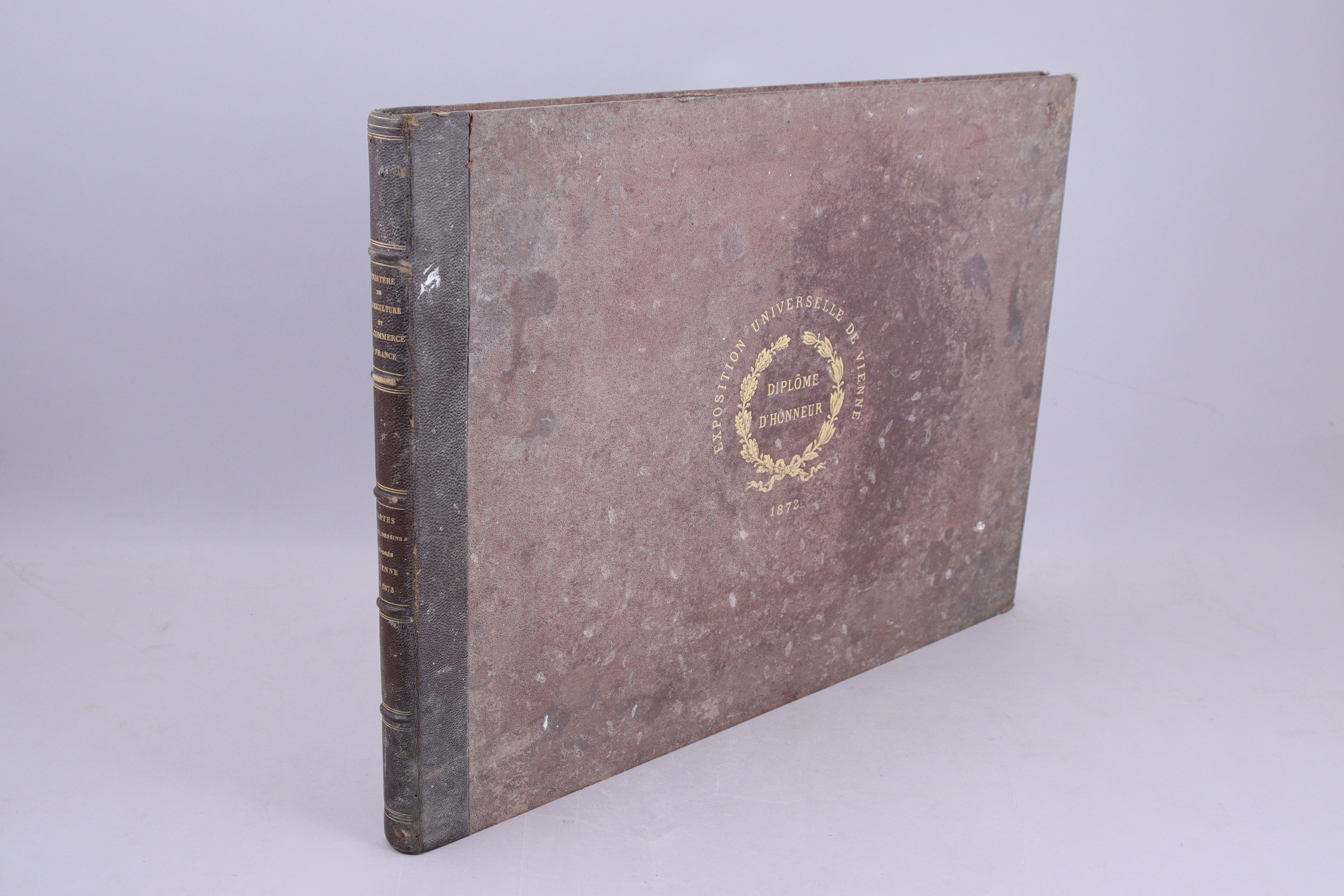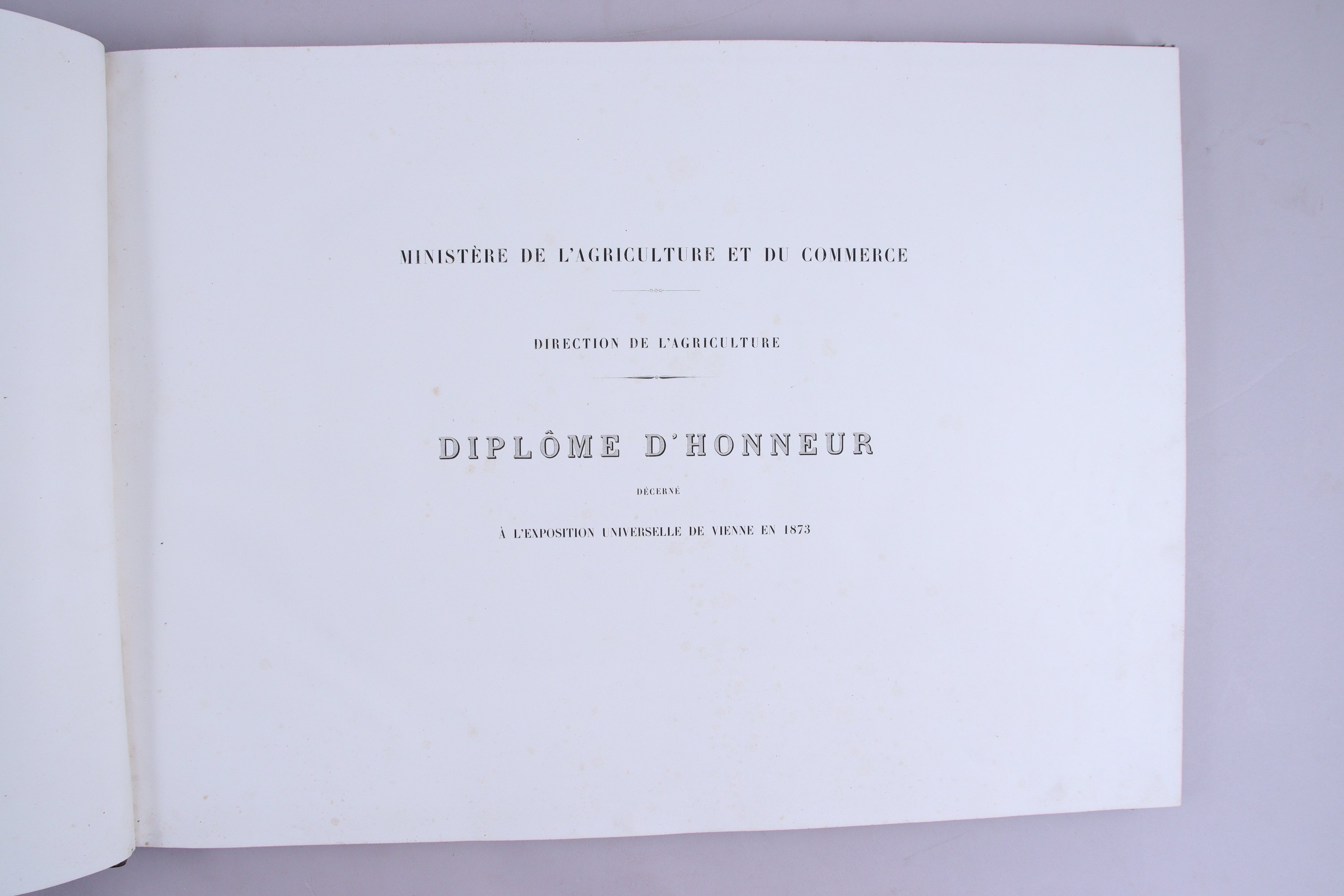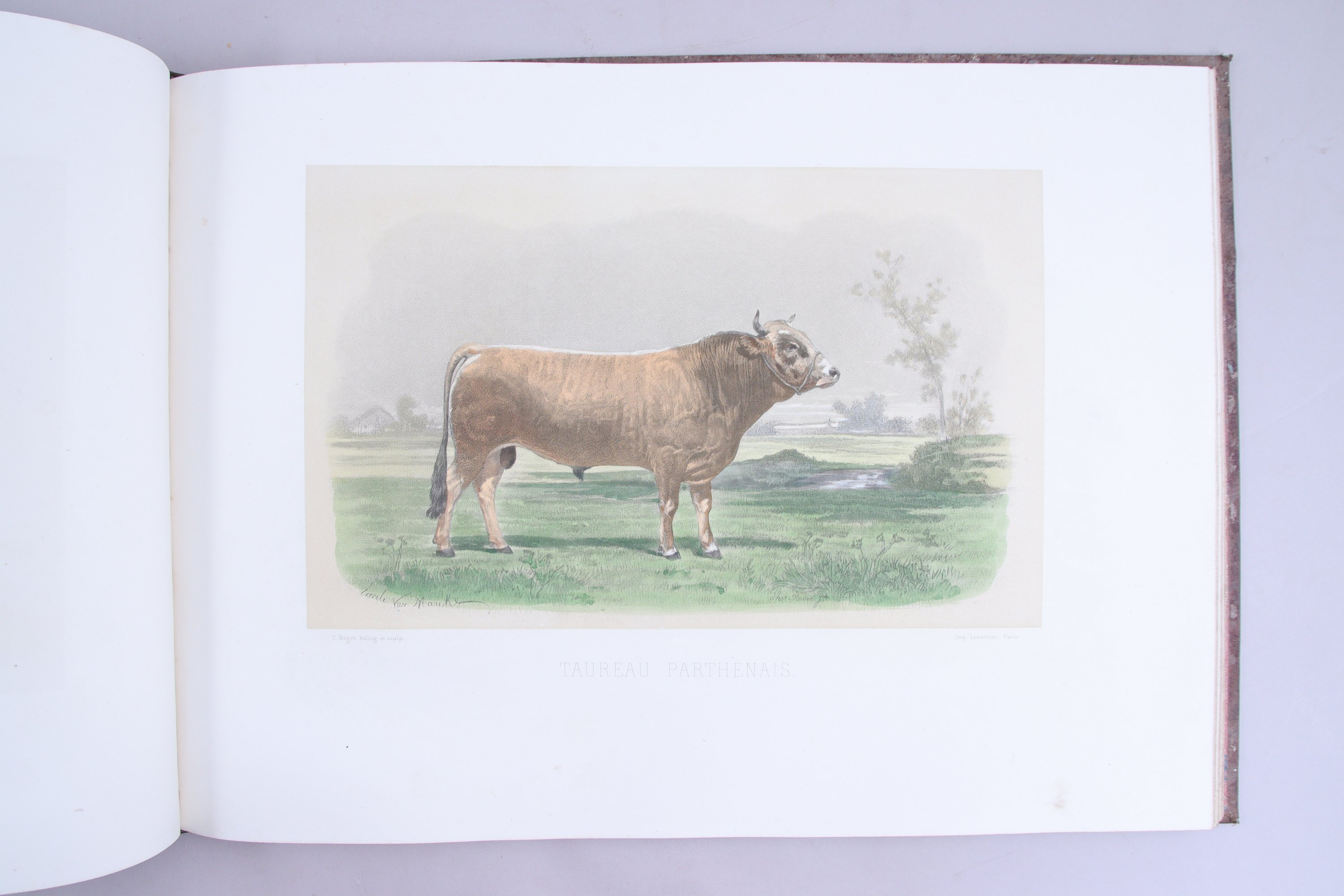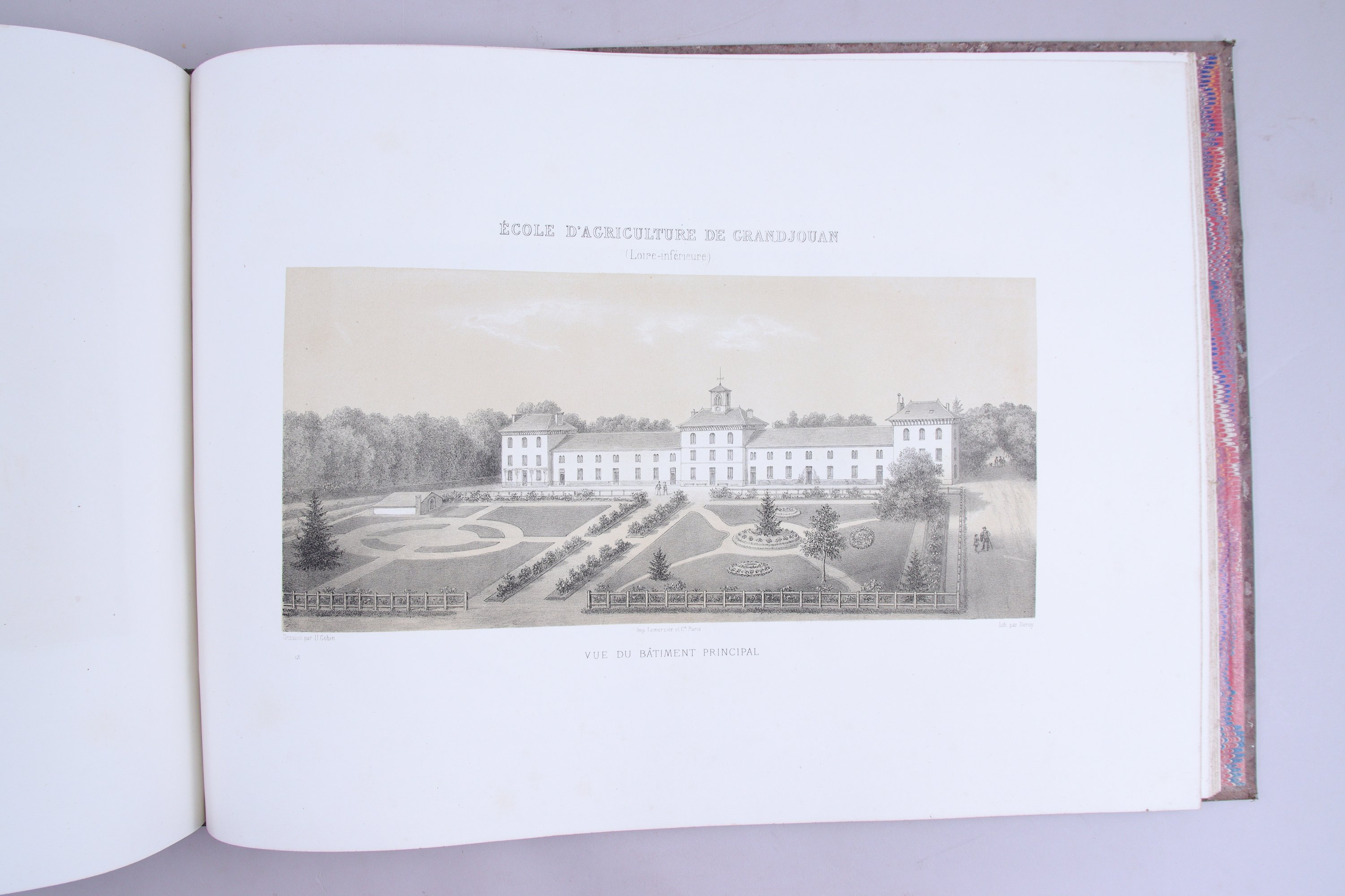 . (43) ff. de texte et 39 planches, parmi lesquelles 16 planches lithographiées en couleurs sur Chine appliqué de races de bovins et d'ovins, 6 vues lithographiées d'écoles d'agriculture, etc... etc...