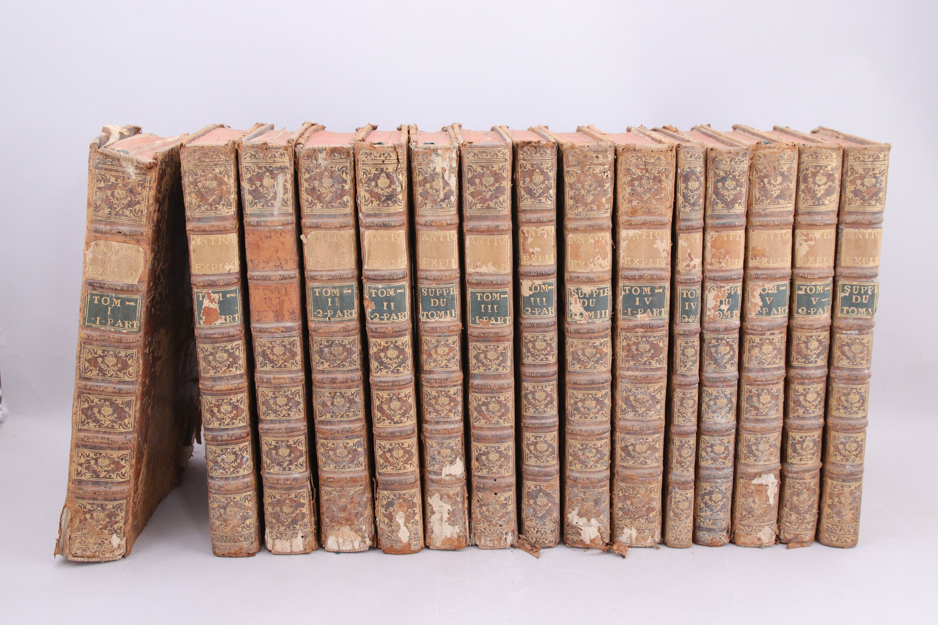 15 volumes in-folio, veau du temps. (Reliure du tome I délabrée. Fortes épidermures sur les autres volumes).