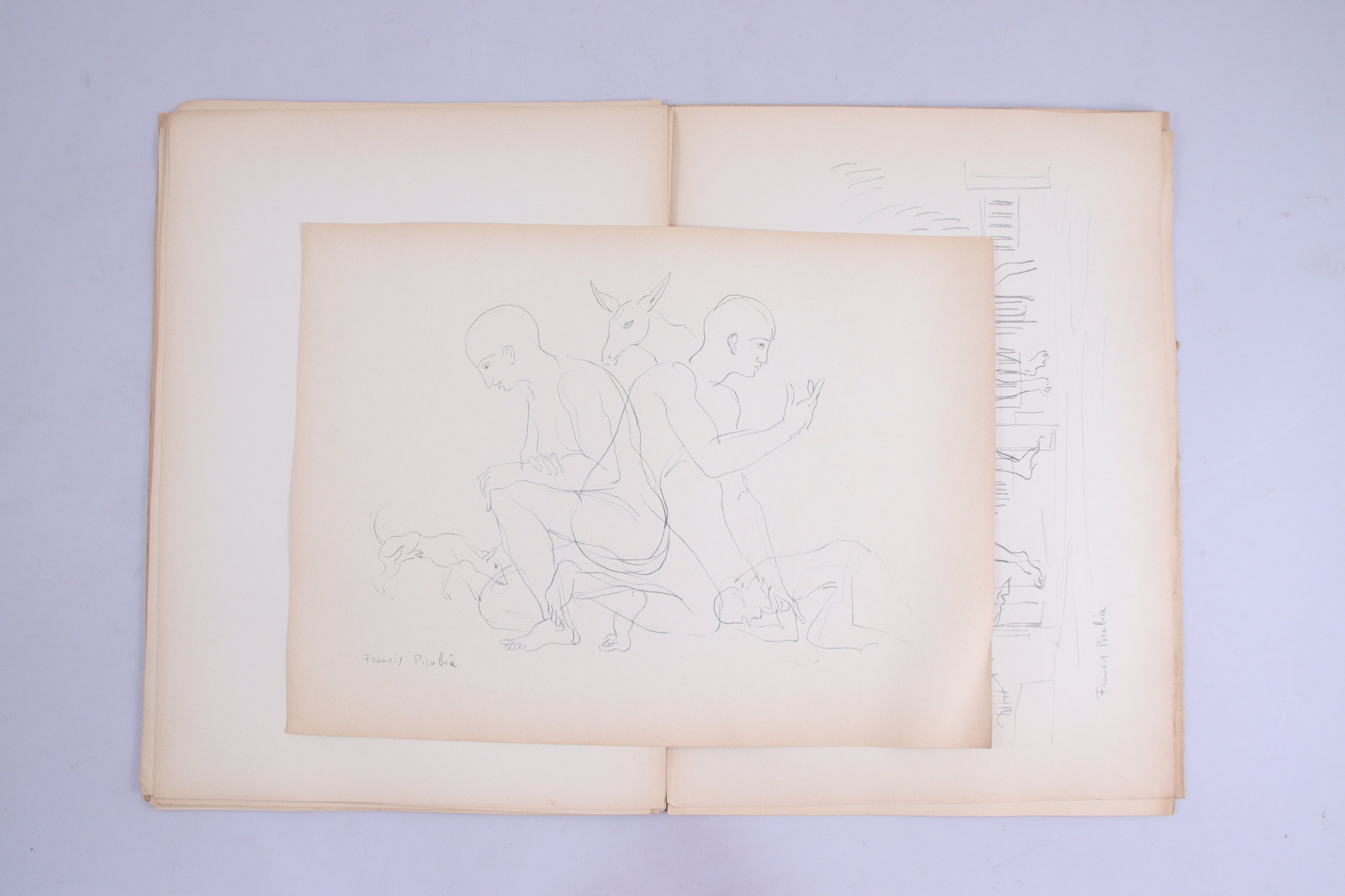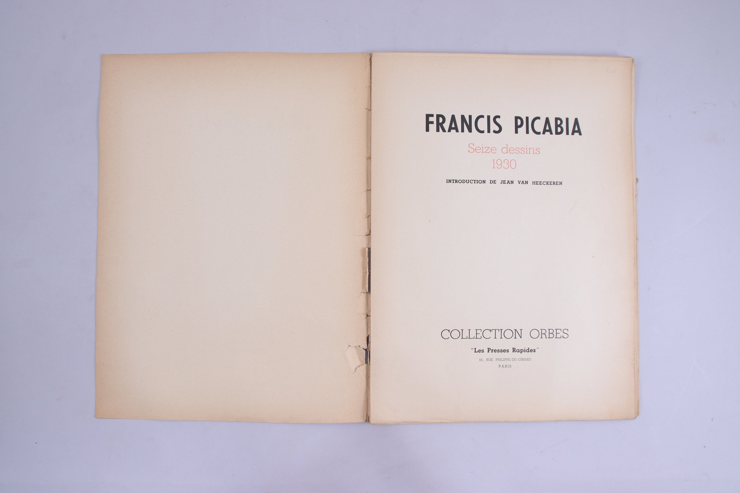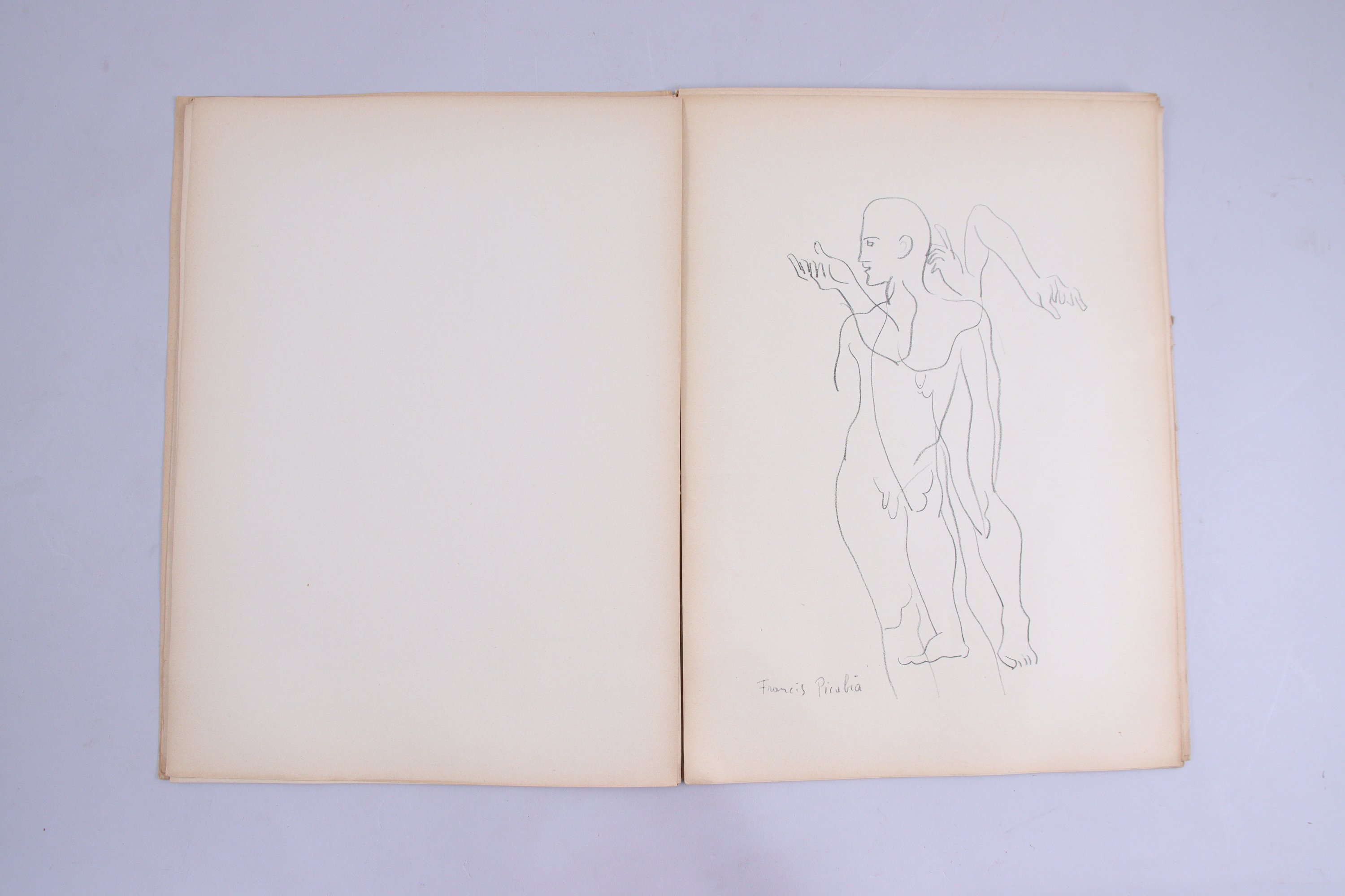 Folio broché. In-folio à feuilles mobiles, couverture illustrée, deux feuillets d'introduction de quatre pages et seize planches détachées de dessins au crayon de Picabia.