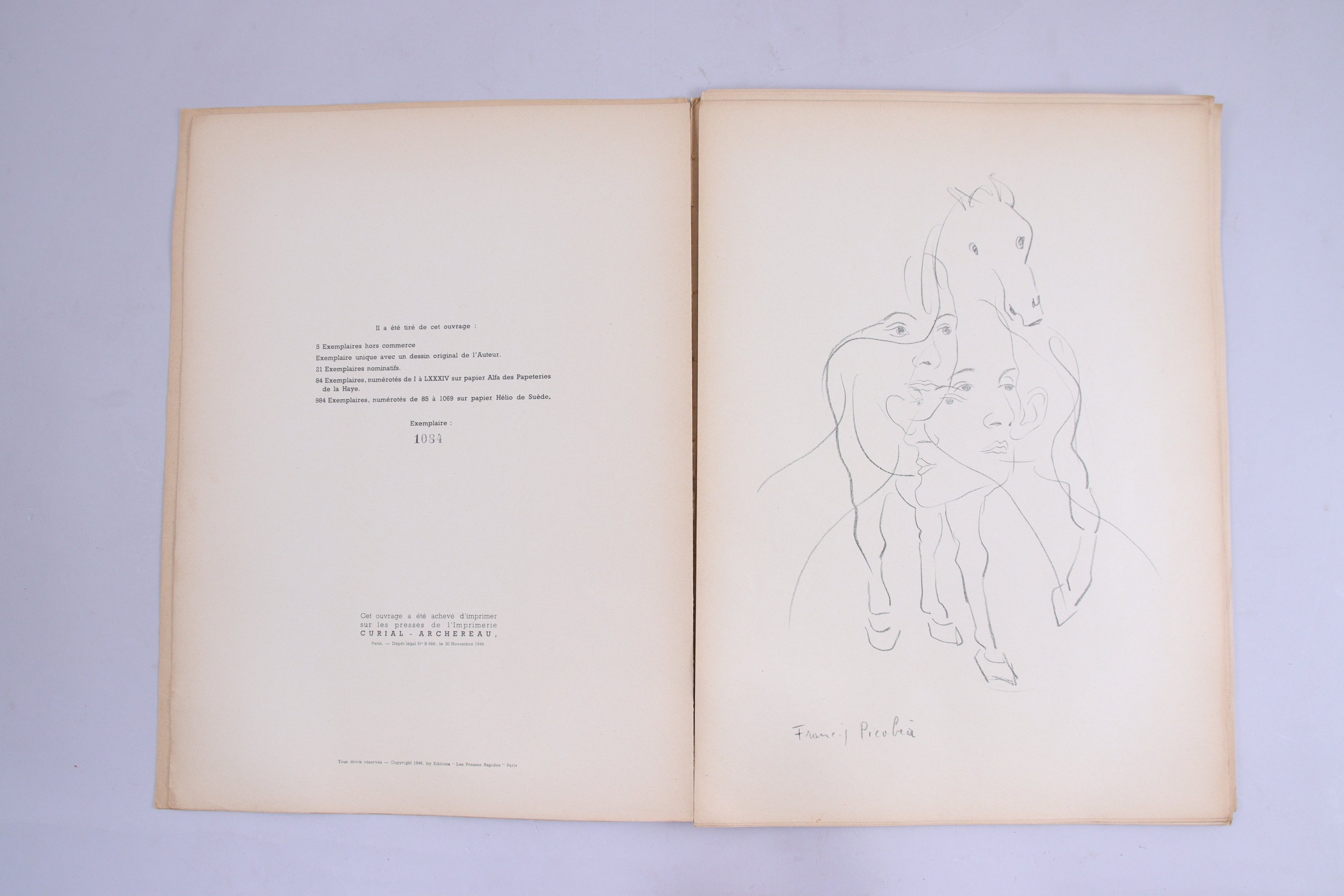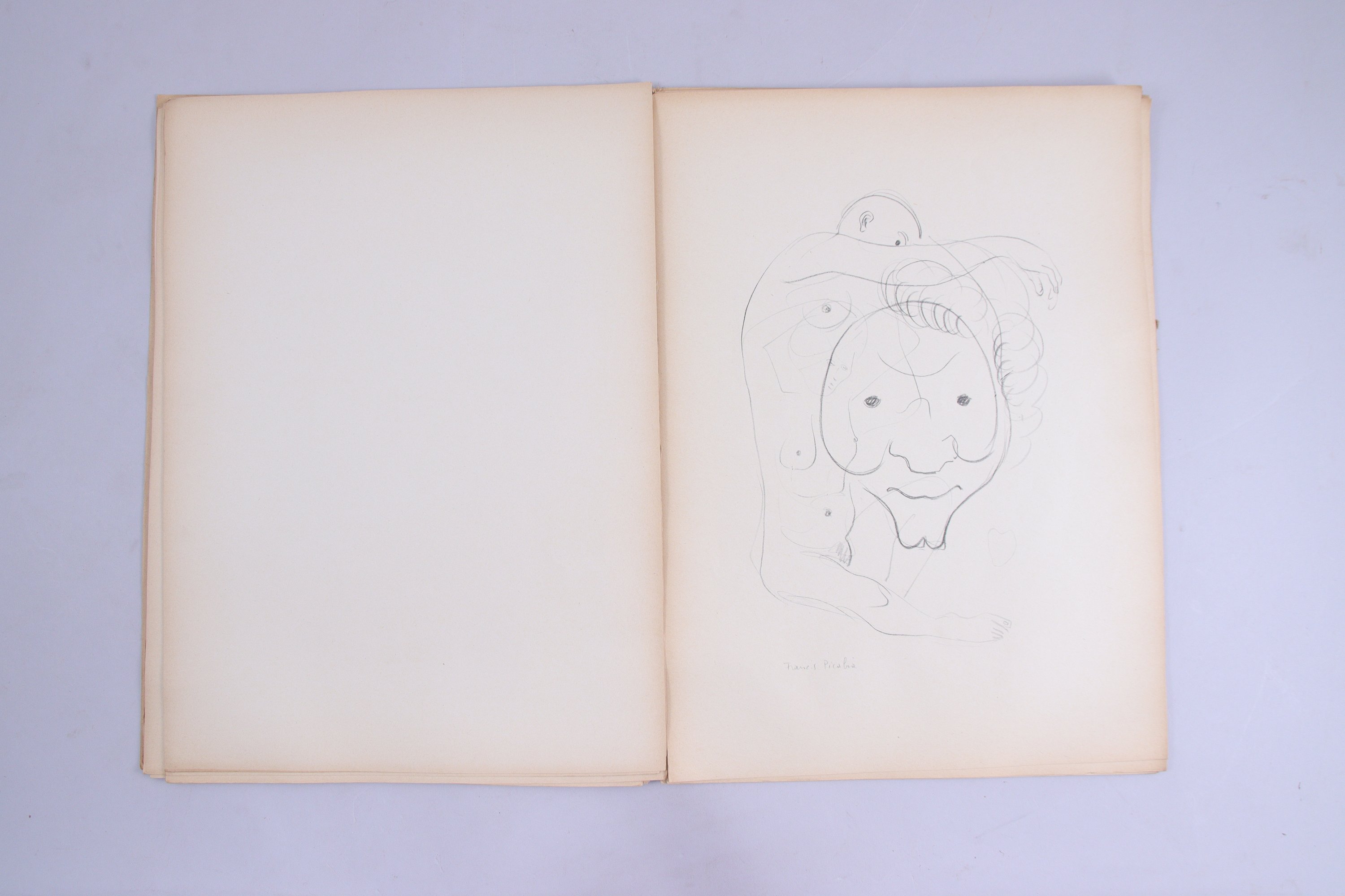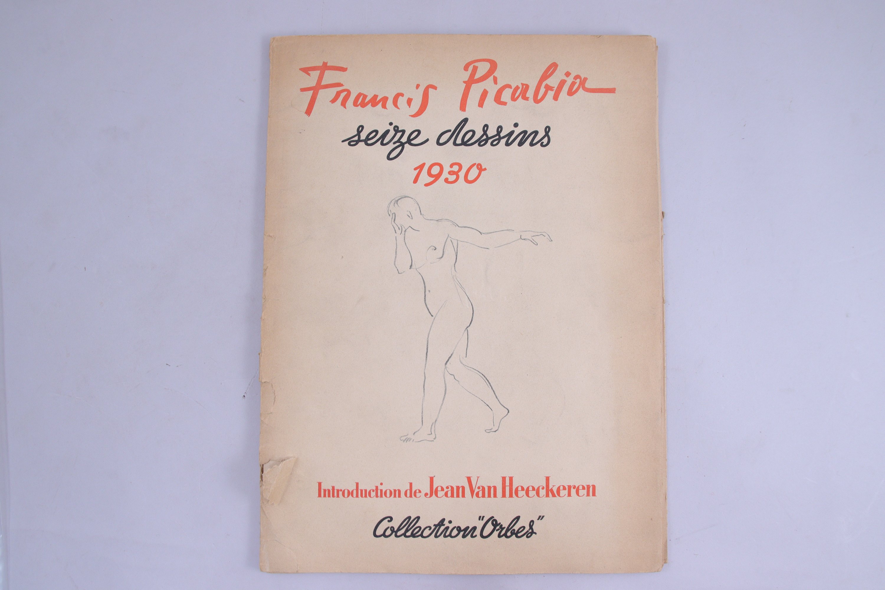 Folio broché. In-folio à feuilles mobiles, couverture illustrée, deux feuillets d'introduction de quatre pages et seize planches détachées de dessins au crayon de Picabia.
