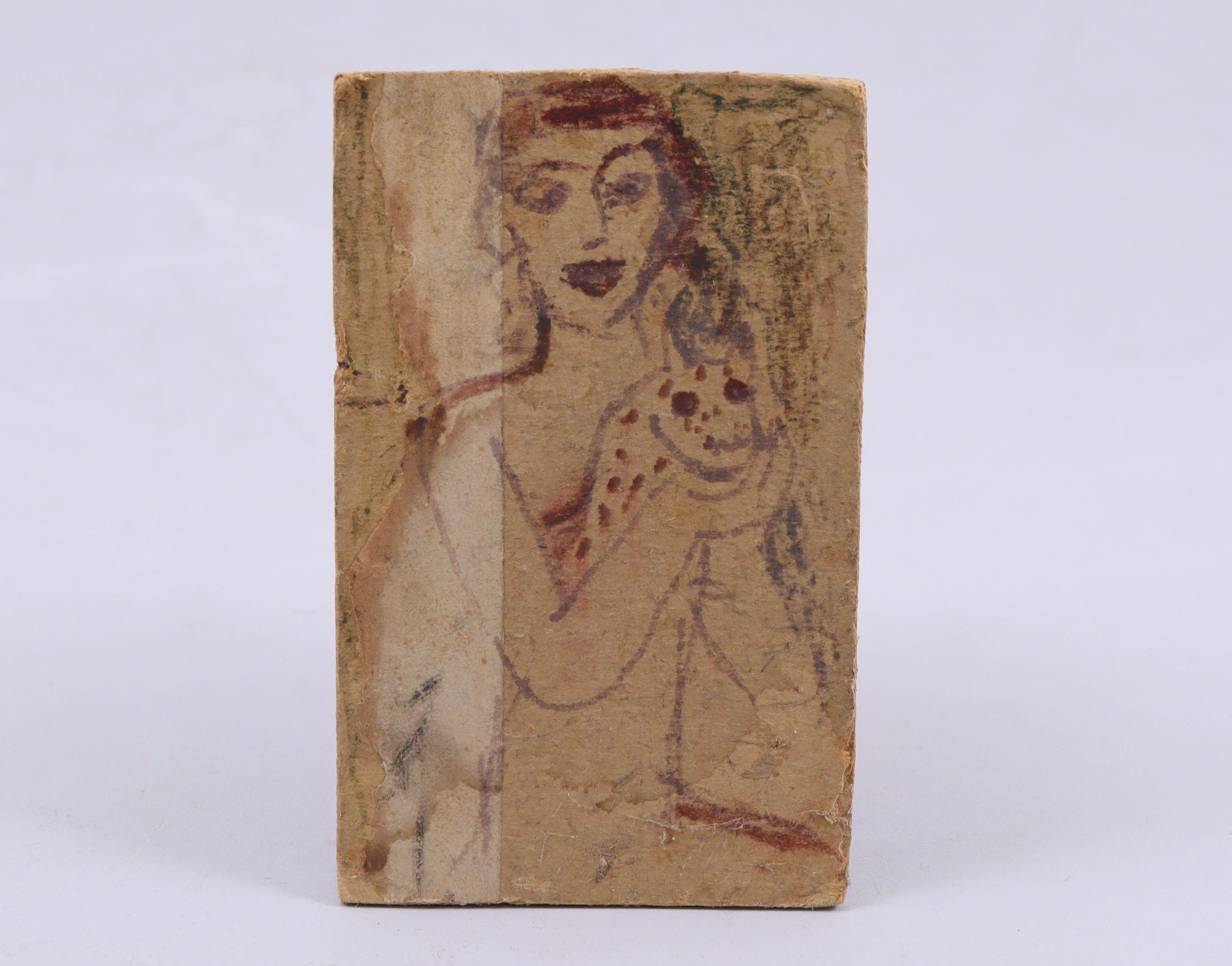 Il est joint un portrait sur carton dune femme au masque. 12,5 x 7,8 cm.