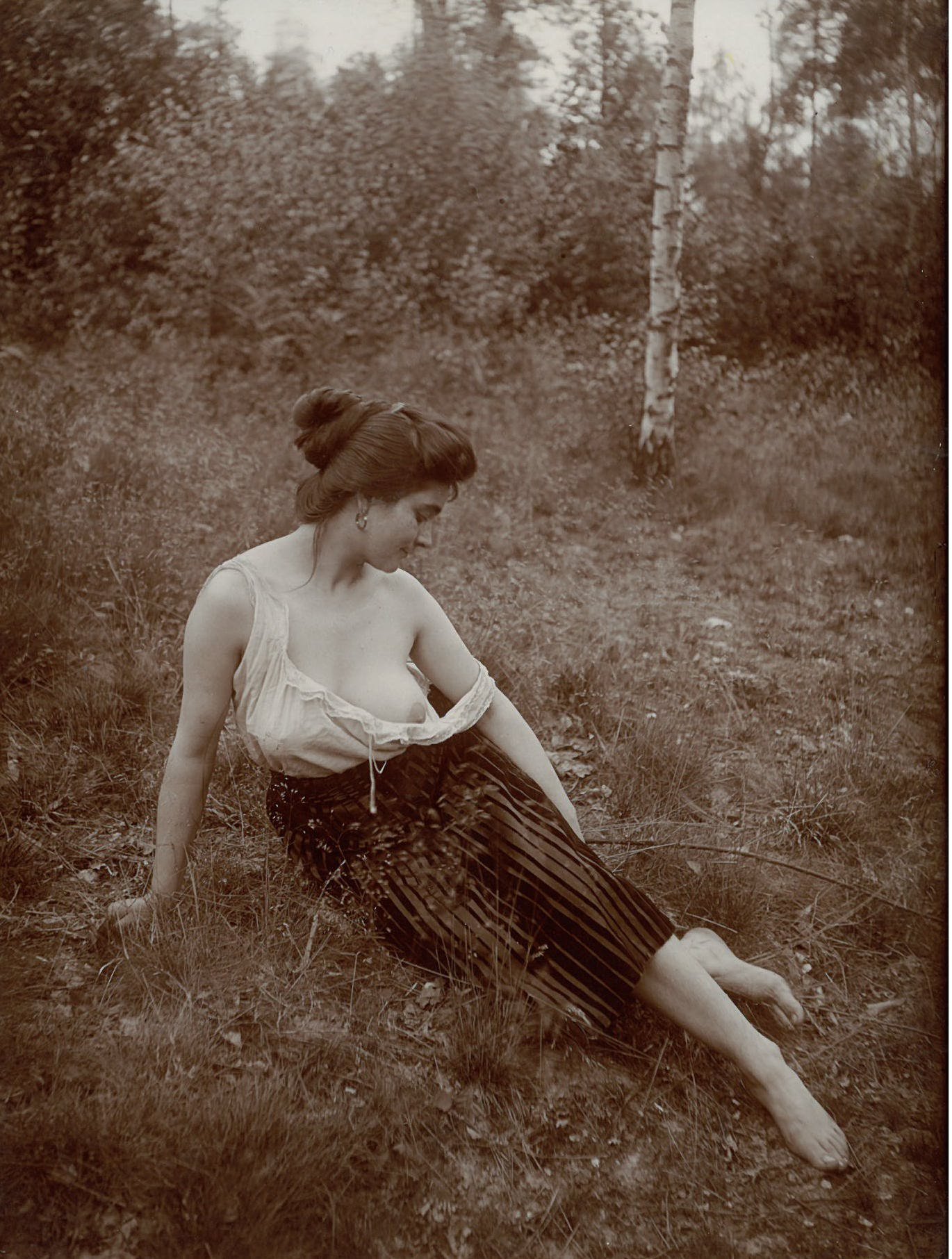 Belle étude de femme au sein dévoilé, récréation photographique.