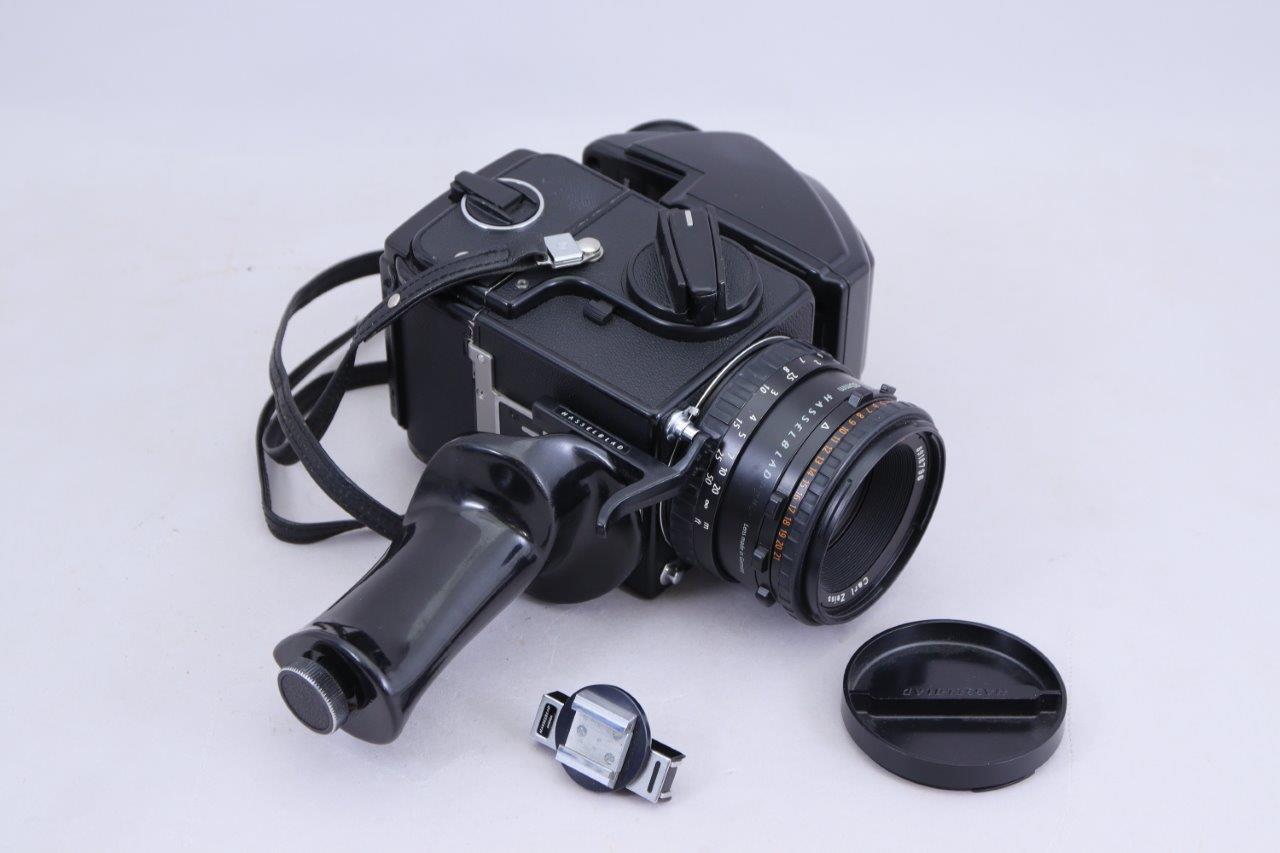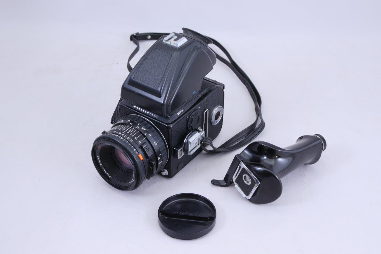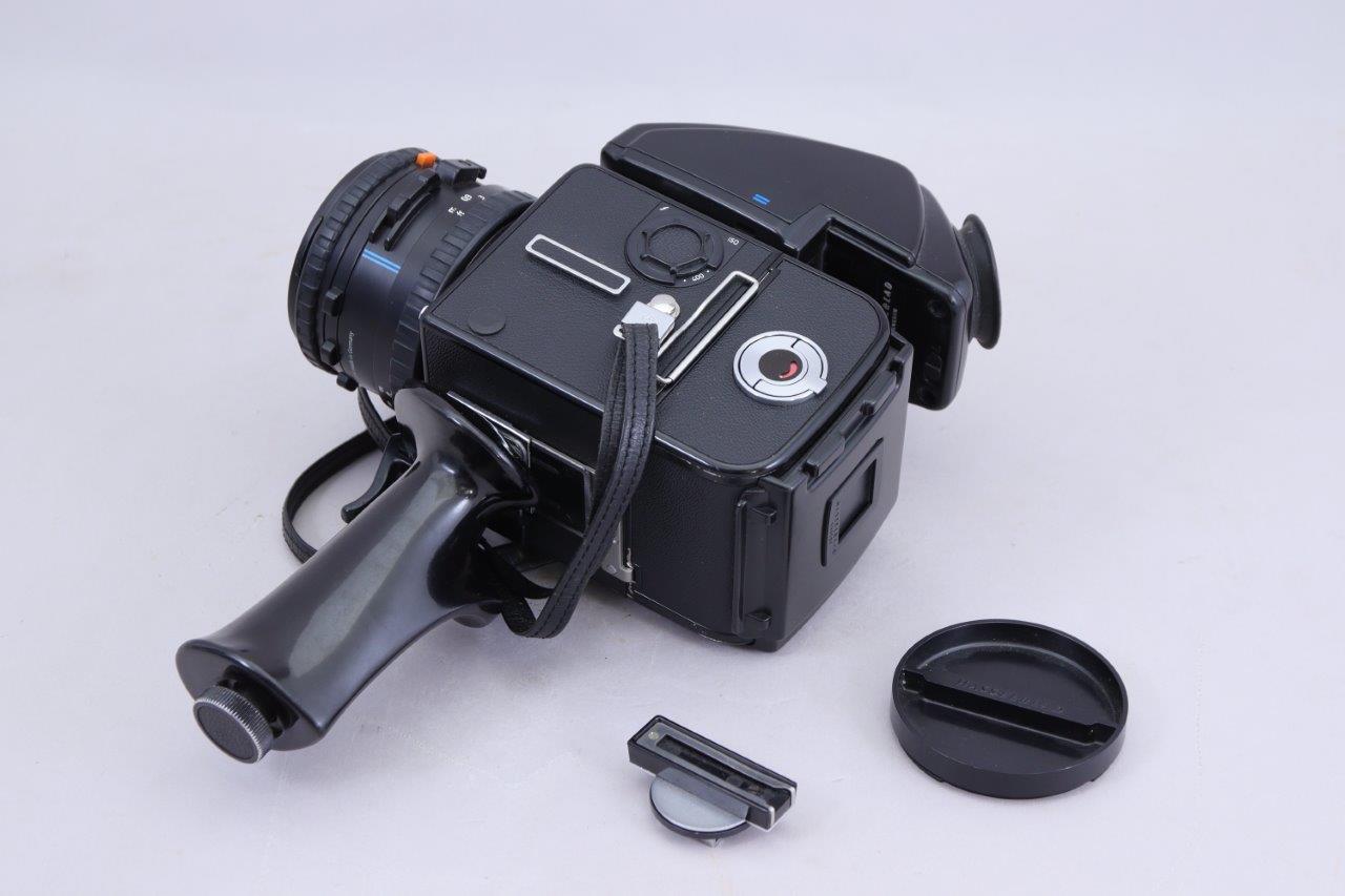 Accompagné de matériel de marque Hasselblad: viseur à prisme Hasselblad PM-45, dos A12 - 6x6, poignée revolver pour gaucher.