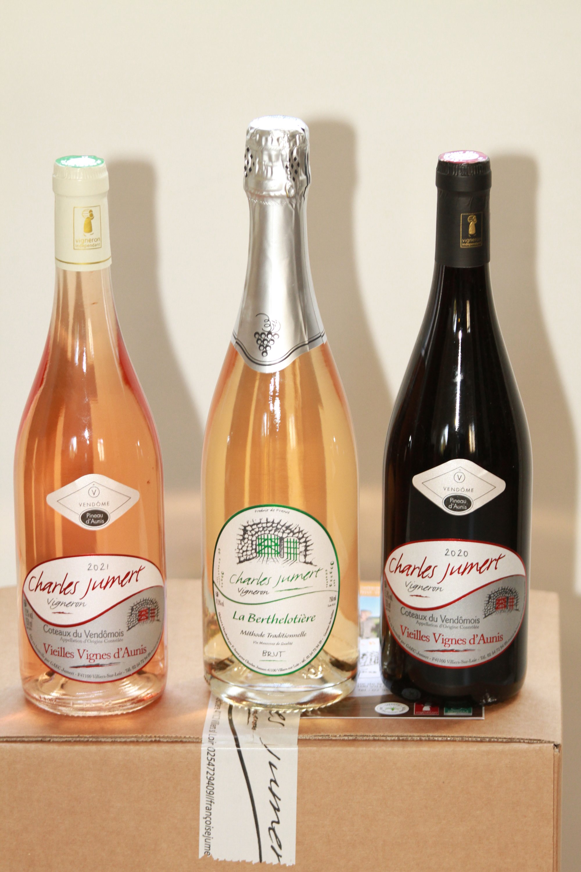 2 lots de 2 bouteilles Côteaux du Vendômois rosé vieilles vignes d’Aunis (2021), 2 bouteilles Côteaux du vendômois vieilles vignes d’Aunis rouge (2020) et 2 bouteilles de blanc mousseux brut