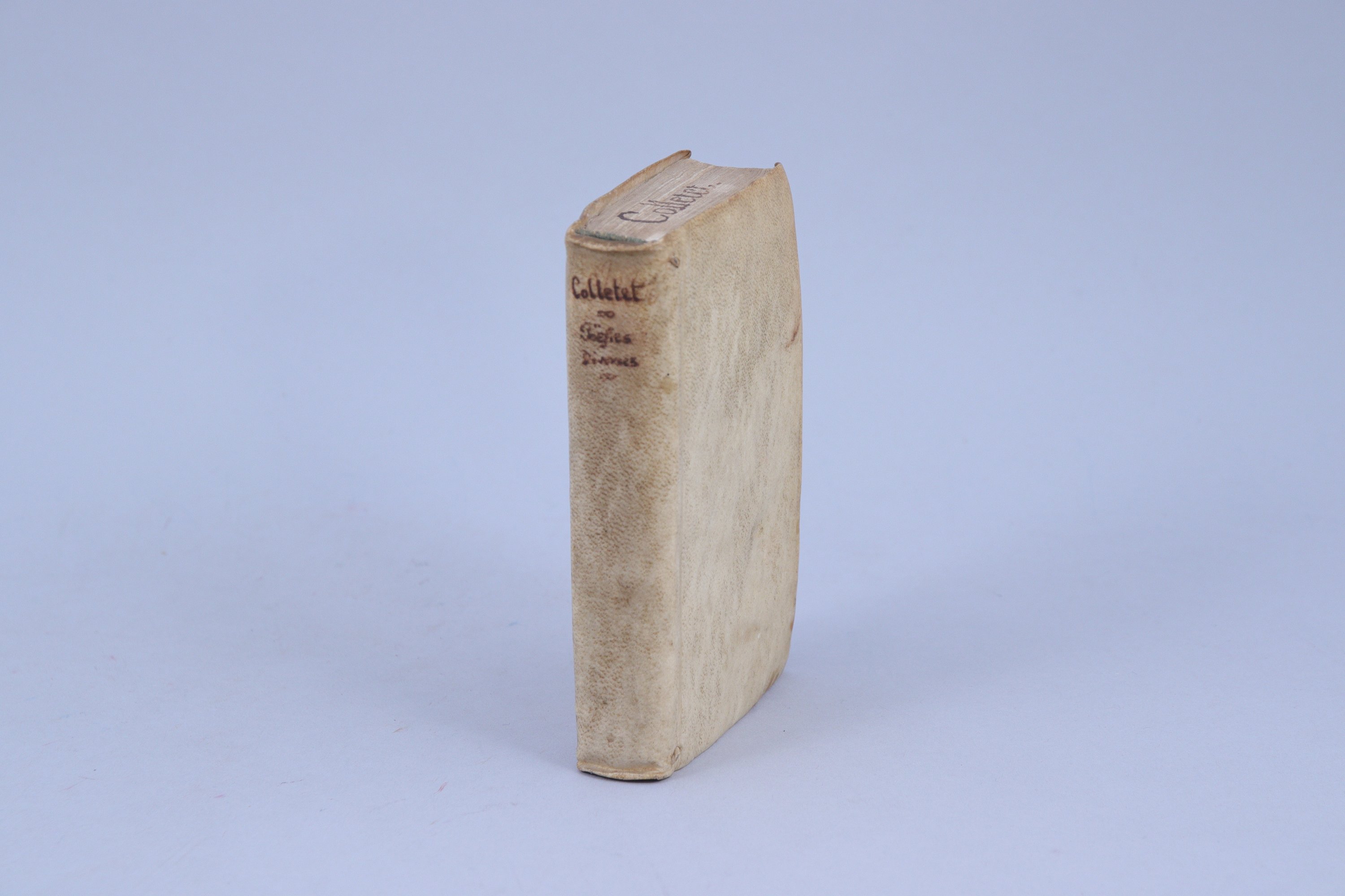 In-12, (12 ff), 468 pages et (6 ff). Vélin souple du temps.
