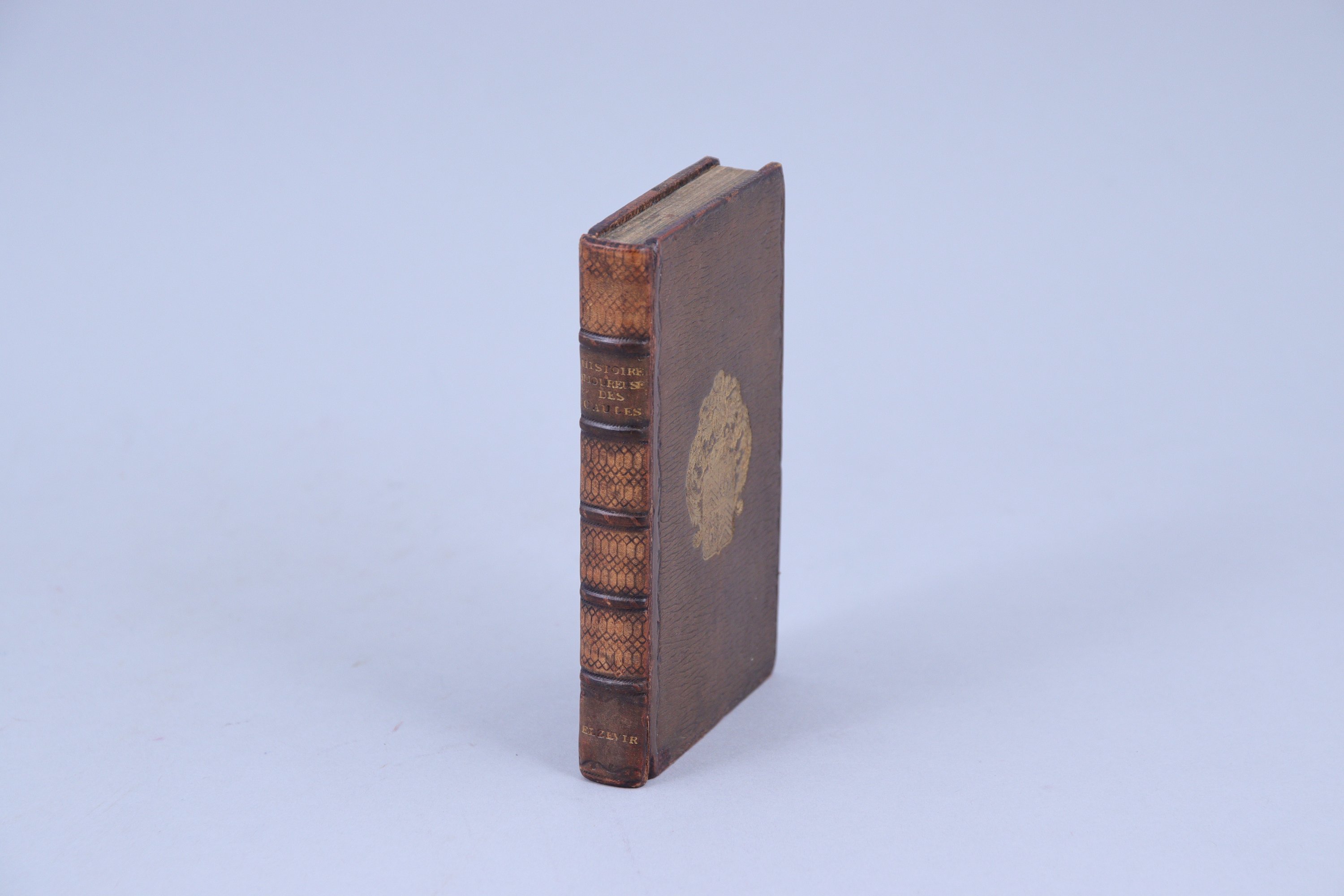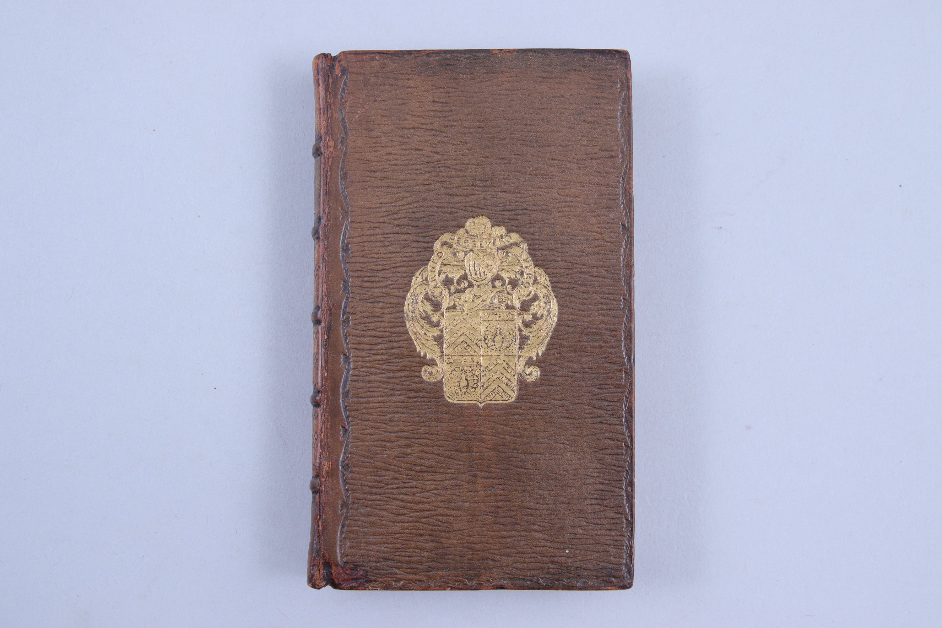 In-12, (1 f), 190 et 69 pages, (2 ff) pour la clef. Veau fauve maroquiné du XIXème siècle; encadrement d'une guirlande poussée à froid, armes de Pavée de Vandoeuvre au centre des plats ; dos orné dans les entre-nerfs d'un fer résille poussé à froid. "Elzevier" frappé en queue.
