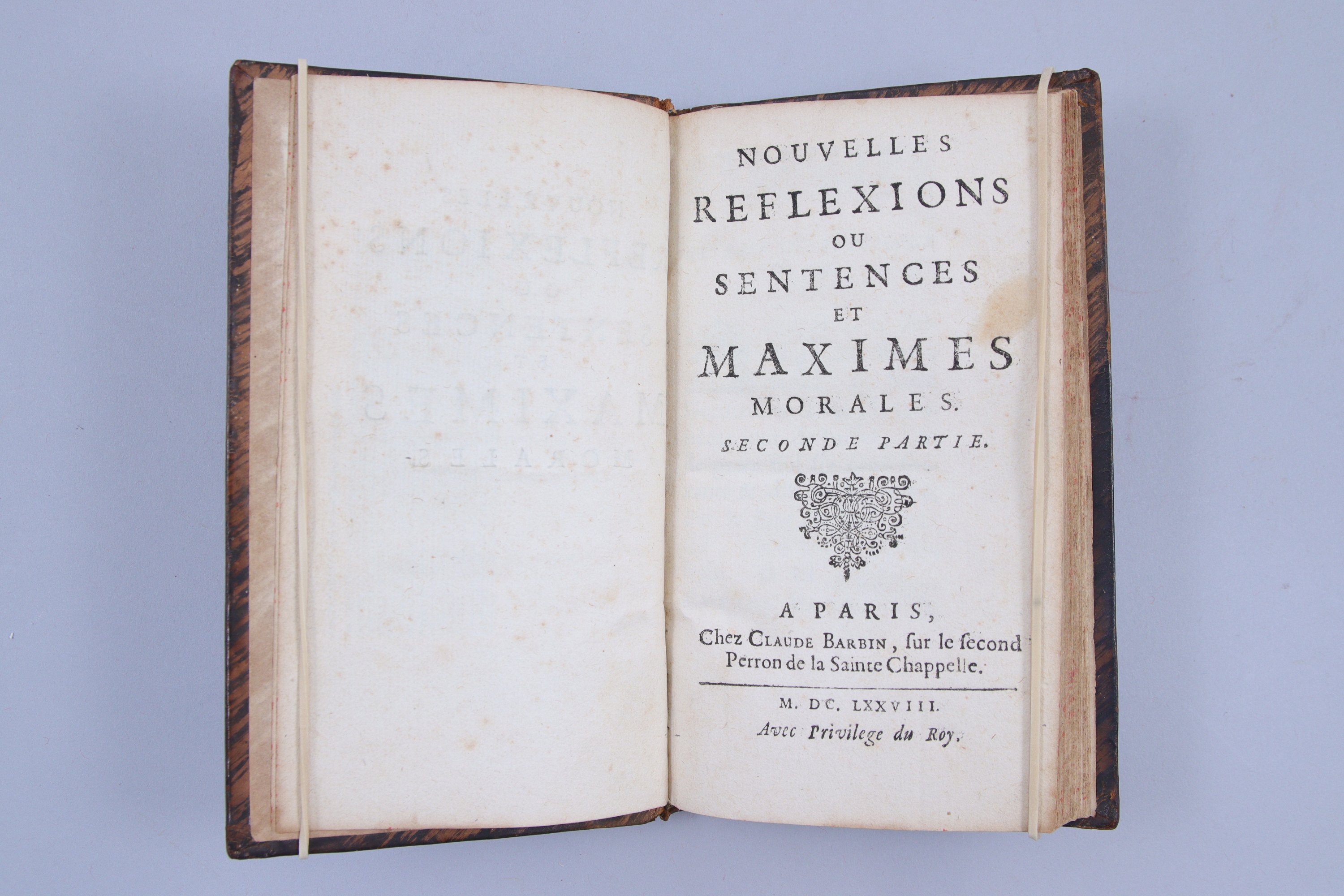 Impression en gros caractères. Cette édition, achevée d'imprimer le 6 août 1678, est un tirage à part des 107 Maximes nouvelles publiées dans l'édition du 26 juillet 1678, ou 5ème et dernière édition originale. Elle devait servir à compléter les 3ème et 4ème éditions originales (1671 et 1675), d'où l'indication Seconde partie.