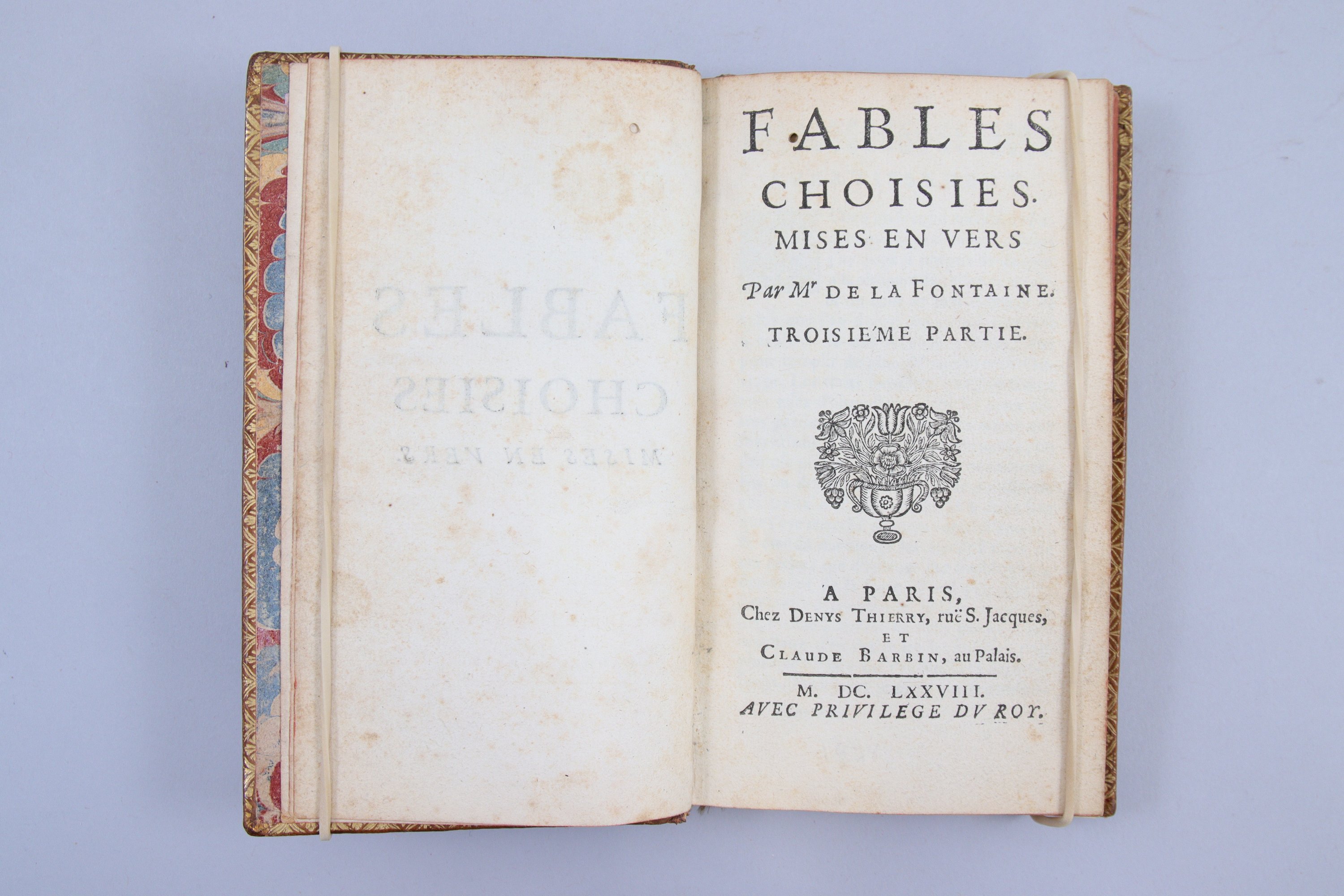 Ce troisième tome des Fables choisies contient 3 fables déjà publiées en 1671, 41 fables en édition originale, et l'Epistre à Madame de Montespan. Il est publié du vivant de La Fontaine, qui en supervise l'impression. Il est illustré de 44 gravures sur cuivre signées F.C. (François Chauveau), N.G. (Nicolas Guérin), ou non signées.
