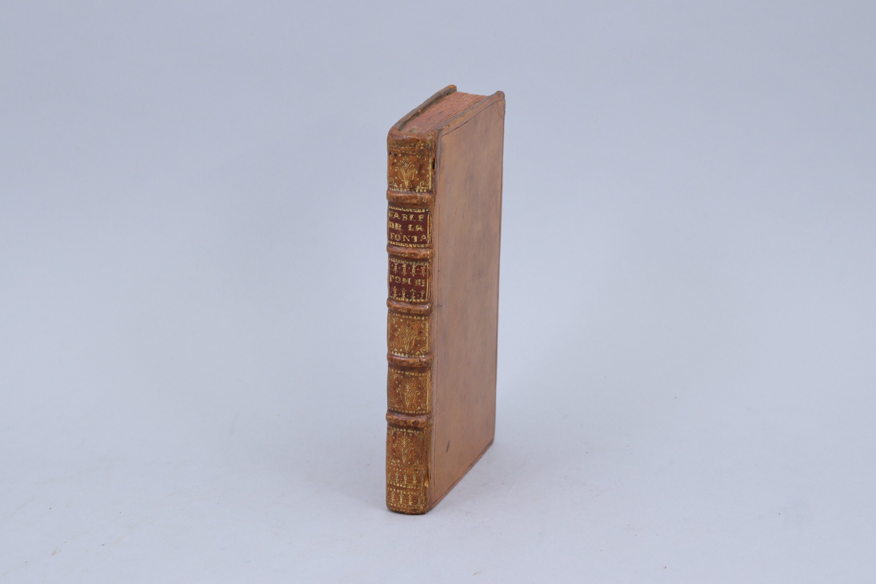 In-12, (1 f), 220 pages. Veau blond du temps. Dos orné. (Petites restaurations de papier en marge de queue des pages 50-51 et 53-54. Piqûre de ver bénigne circulant dans la partie haute du volume.)