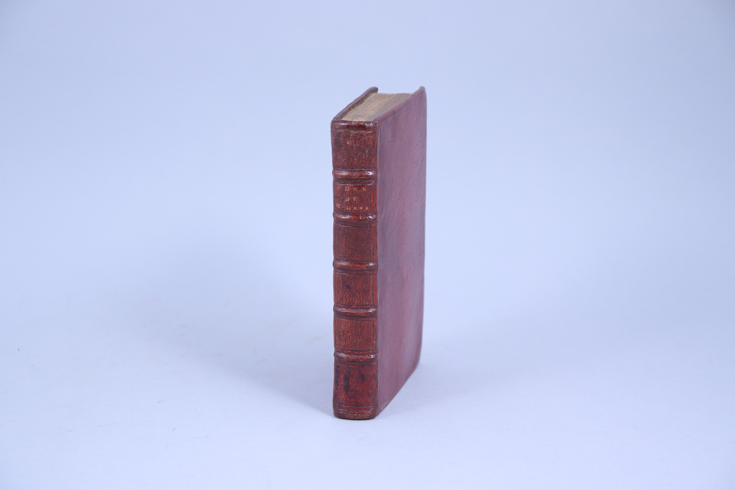 In-12, frontispice, LXXXVI pages, 192 pages, (10 ff) de table, (2 ff) pour le catalogue des livres qui se vendent chez Dupuis. Plein maroquin janséniste rouge ; filet hachuré sur les coupes, roulette intérieure, toutes tranches dorées. Reliure du temps.