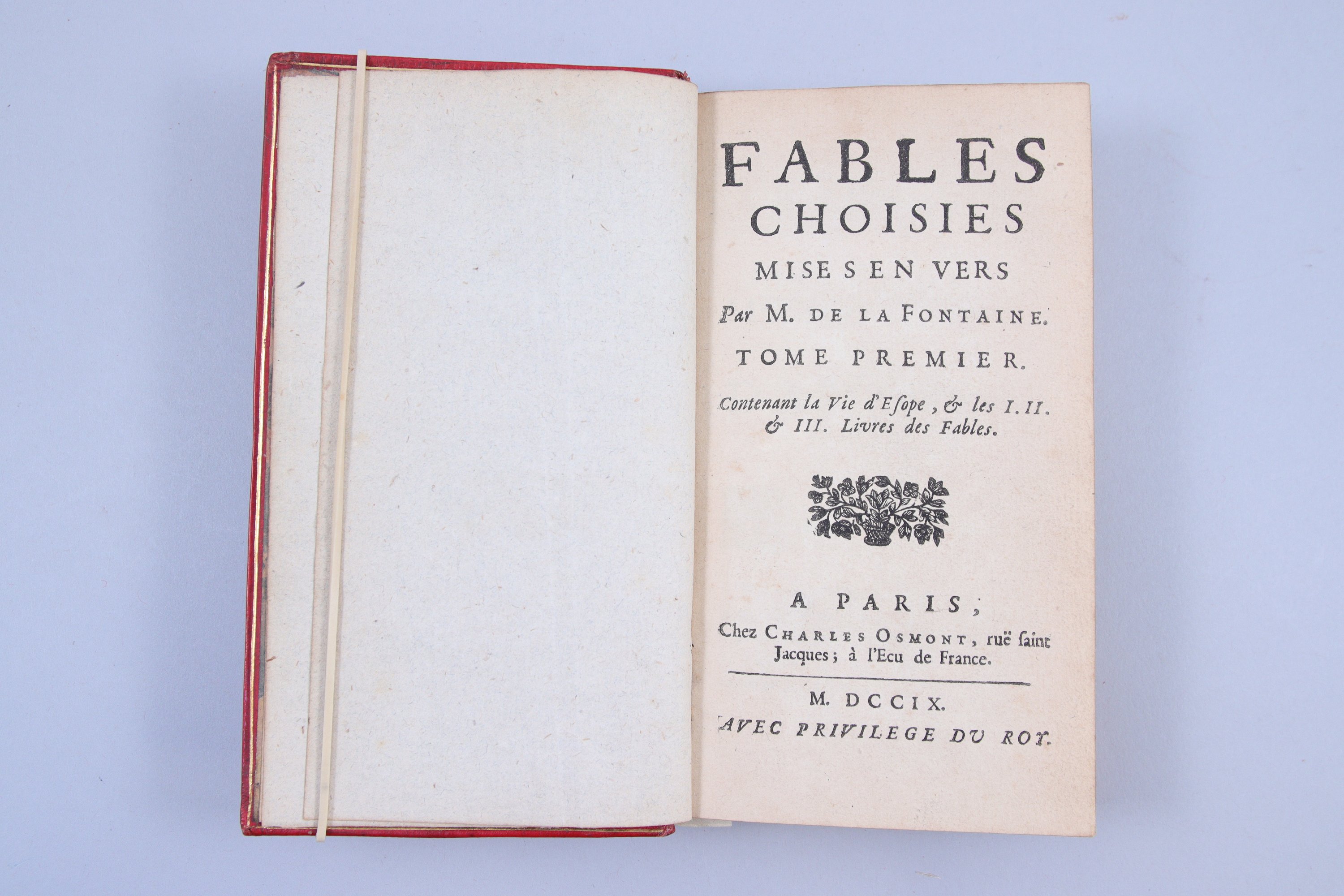 Fables choisies mises en vers par Mr de La Fontaine. Tome premier contenant la Vie d'Esope et les I, II, III. Livres des Fables. (Tome second contenant les IV, V et VI. Livres. Tome troisième contenant les VII et VIII. Livres. Tome quatrième contenant les X et XI. Livres. Tome cinquième contenant le XII. Livre)