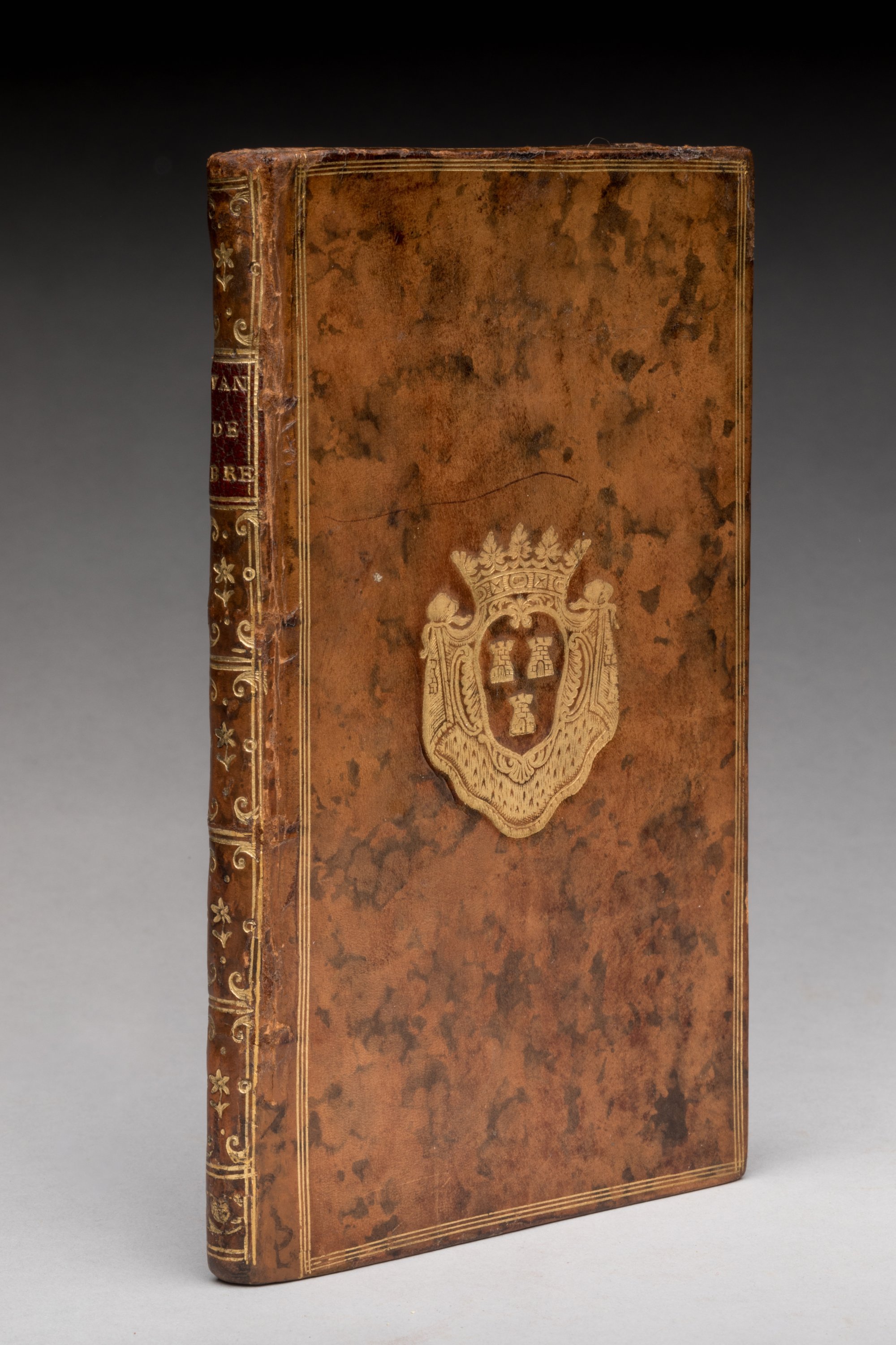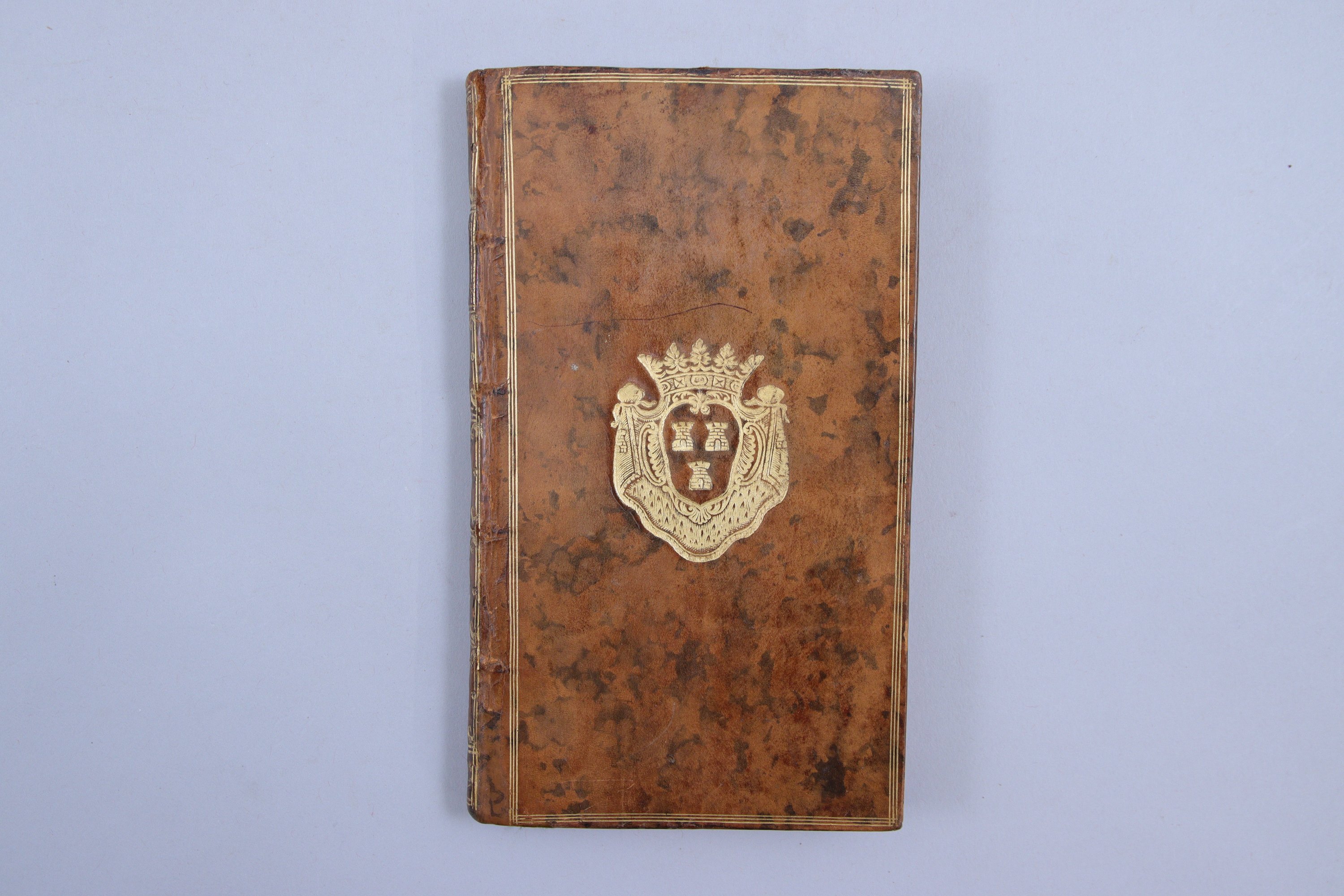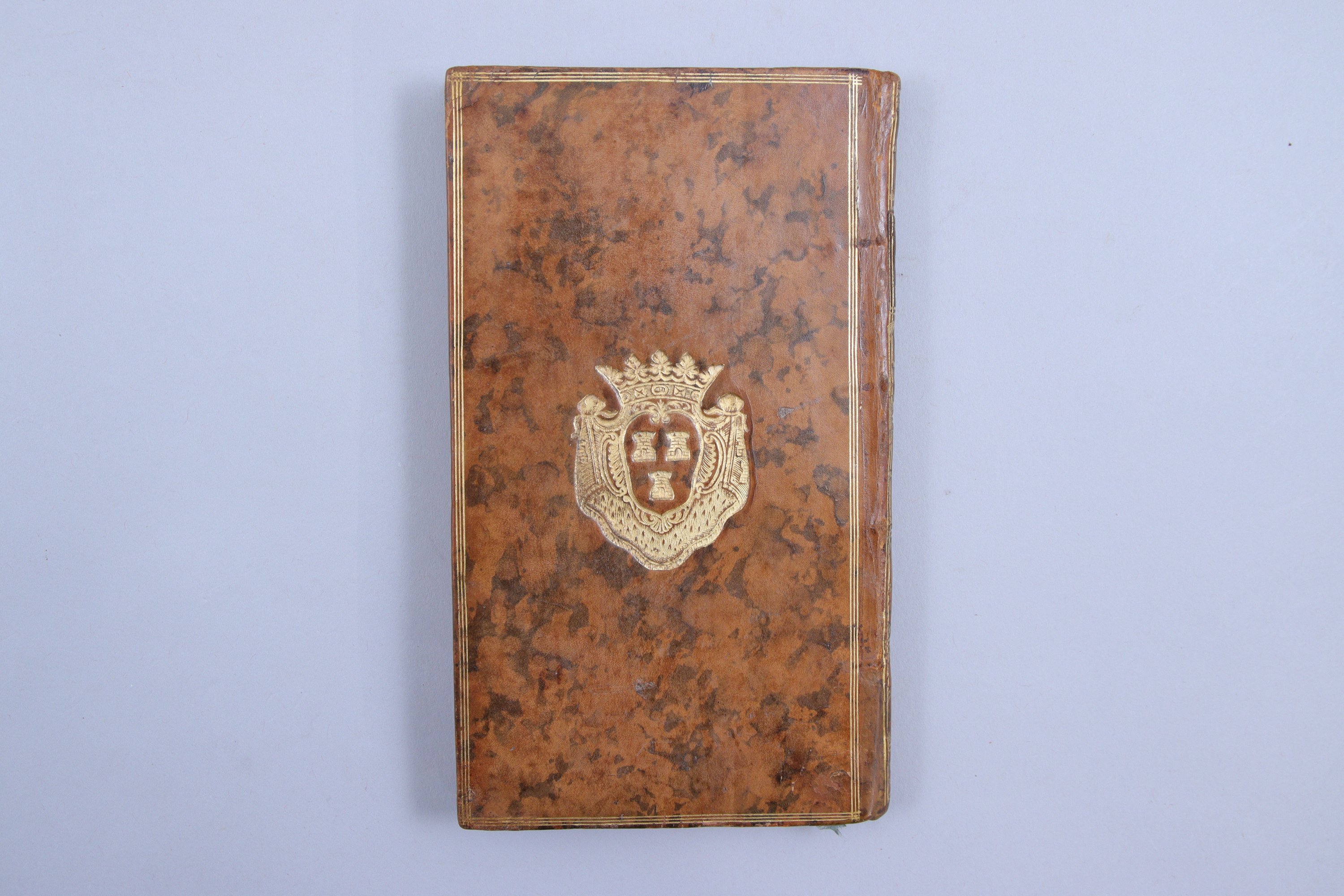 In-12, (1 f), 91 pp. (1 f). Plein veau raciné fauve, triple filet d'encadrement, armes de Madame de Pompadour au centre des plats. Filet sur les coupes. (Quelques légères rousseurs).