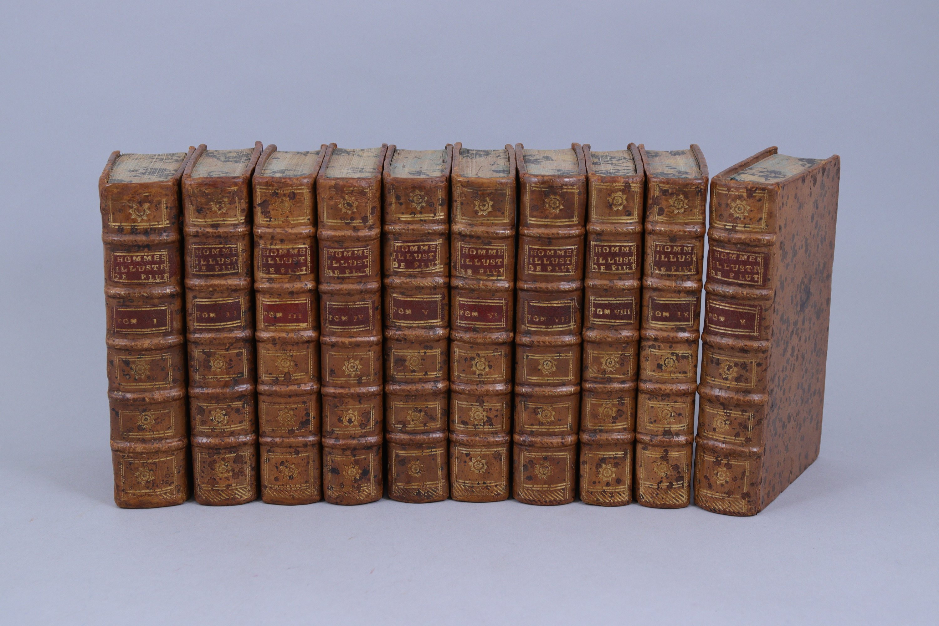 10 volumes in-12, plein veau clair moucheté. Dos ornés. Tranches mouchetées.