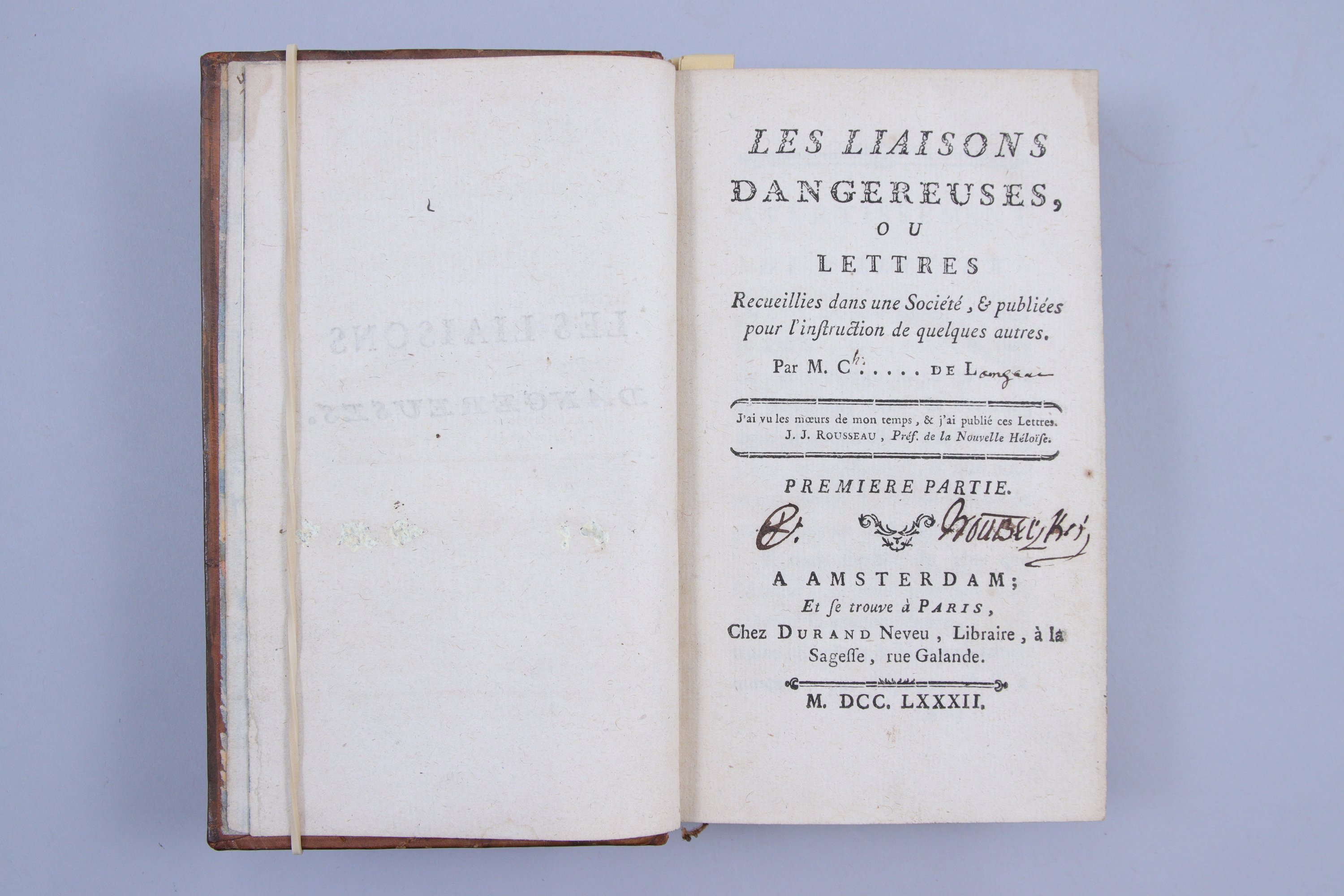 Le premier tirage de l'édition originale, publiée en avril 1782, fut épuisé en un mois. Le libraire Durand fit donc aussitôt un second tirage, sur un papier identique, avec les mêmes caractères, utilisant même quelques cahiers lui restant de l'édition originale. Ce second tirage, véritable deuxième édition originale des Liaisons Dangereuses, fut publié en mai 1782.
