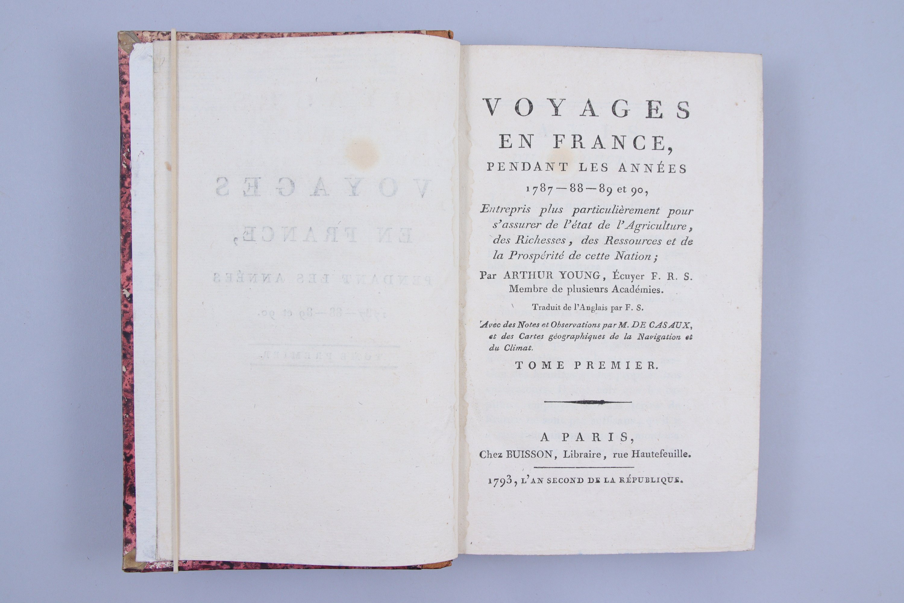 Edition originale de la traduction en français, par François Soulès. Cet ouvrage, publié en anglais en 1792, est considéré comme le tableau fidèle de la France, principalement agricole, à la fin de l'Ancien Régime.