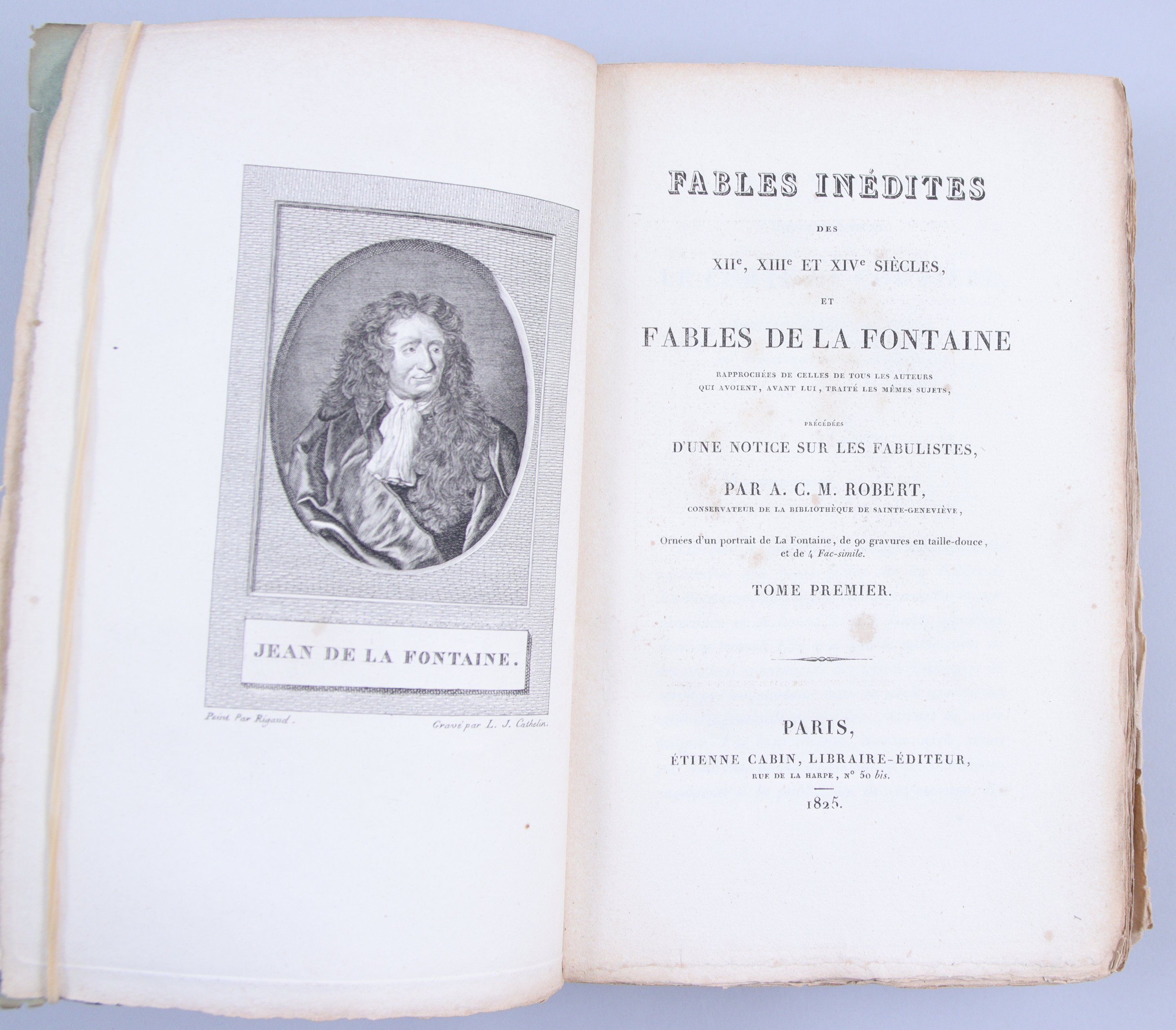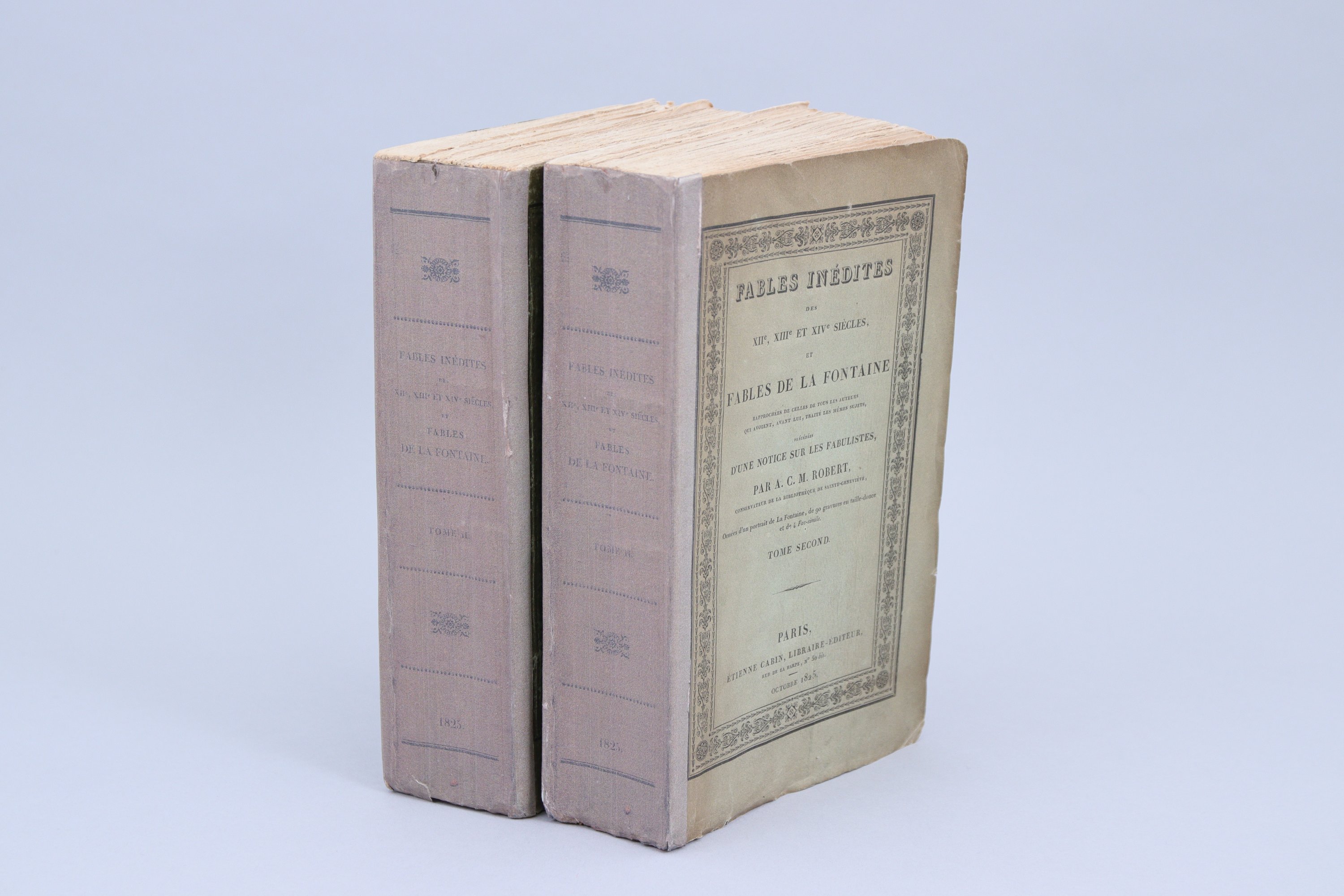 Fables inédites des XII, XIII et XIVèmes siècles. Et Fables de La Fontaine rapprochées de tous les auteurs qui avoient avant lui traité les mêmes sujets. Précédées d'une notice sur les fabulistes par A.C.M. Robert, Conservateur de la Bibliothèque Sainte-Geneviève.
