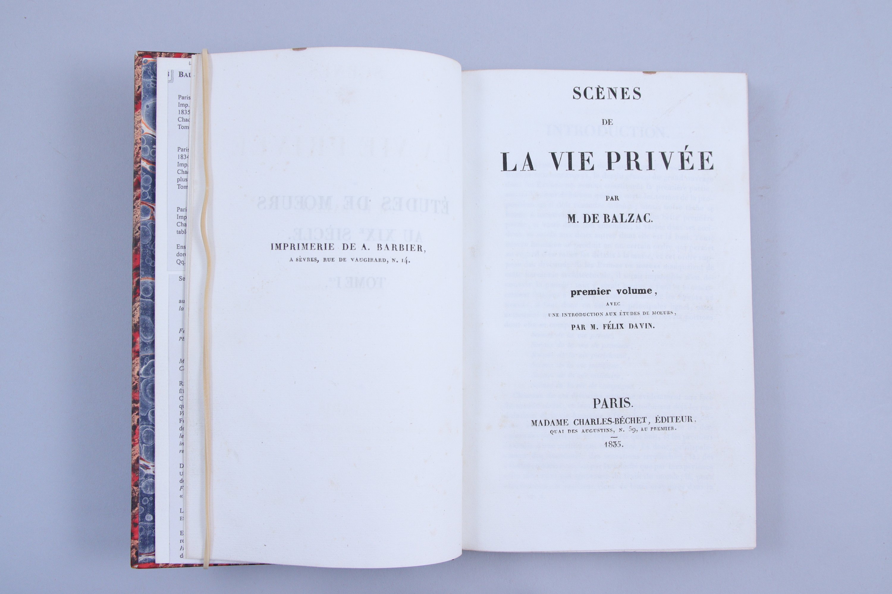 Importante édition, première tentative ou première forme de La Comédie Humaine. De nombreux textes de Balzac sont ici en édition originale, certains sous un titre provisoire: La Fleur des Pois, La Recherche de l'Absolu, Eugénie Grandet,, La Femme Abandonnée, La Grenadière, L'Illustre Gaudissart, la Grande Bretèche ou les Trois vengeances, La Vieille fille, Illusions perdues, Les Marana, Ferragus, La Duchesse de Langeais, La Fille aux Yeux d'or, et l'Histoire des Treize (dont la Comtesse aux Deux Maris, qui deviendra Le Colonel Chabert).
