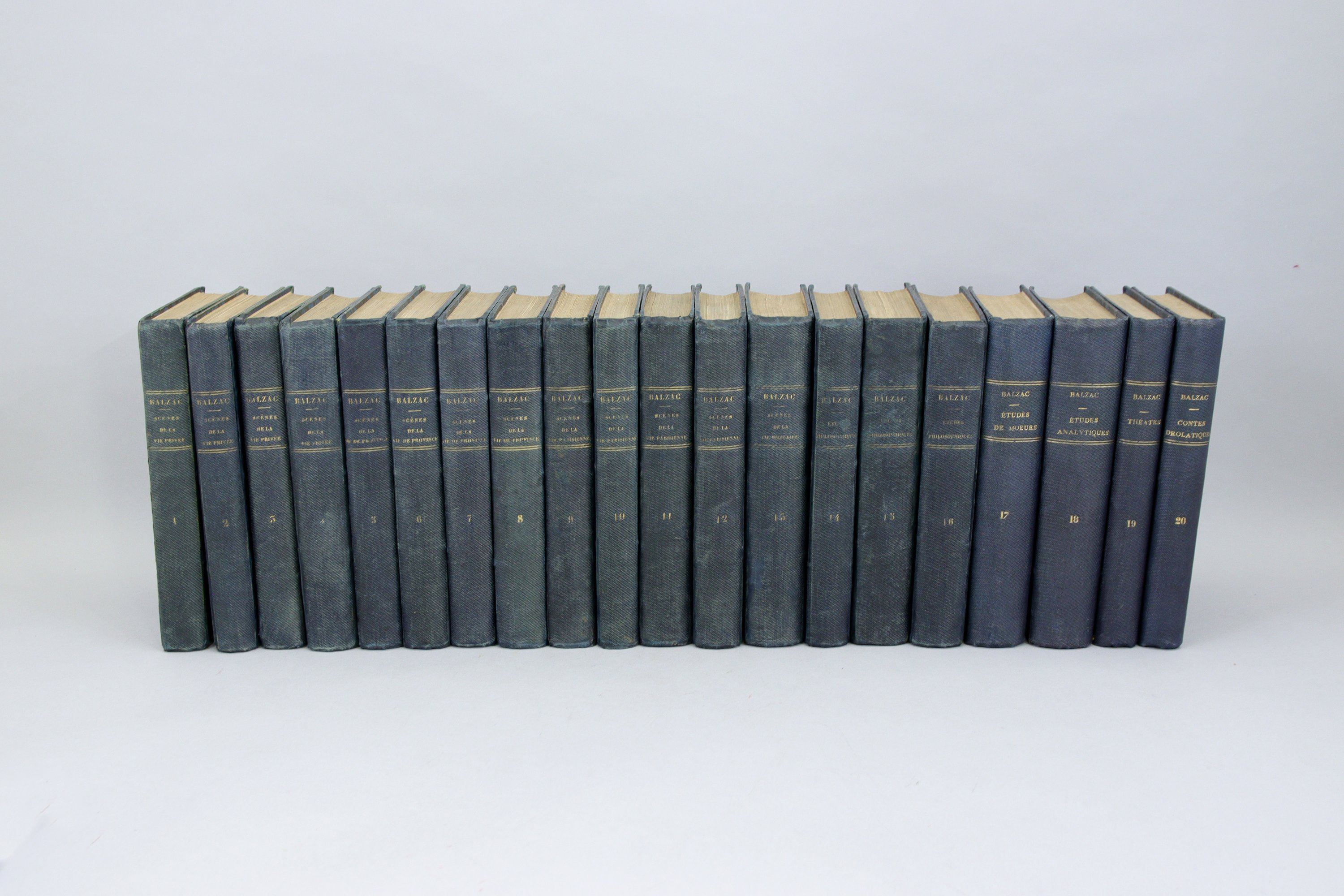 Première édition de La Comédie Humaine, revue et remaniée par Balzac pour les tomes I à XVII. Elle contient de nombreuses oeuvres en édition originale, parmi lesquelles Albert Savarus, La fausse Maîtresse, Autre étude de Femme, la dernière partie des Illusions perdues, la dernière partie de Splendeurs et misères des Courtisanes, etc... etc... Les tomes XVIII, XIX à XX sont publiés après la mort de Balzac, sans avoir été revus.