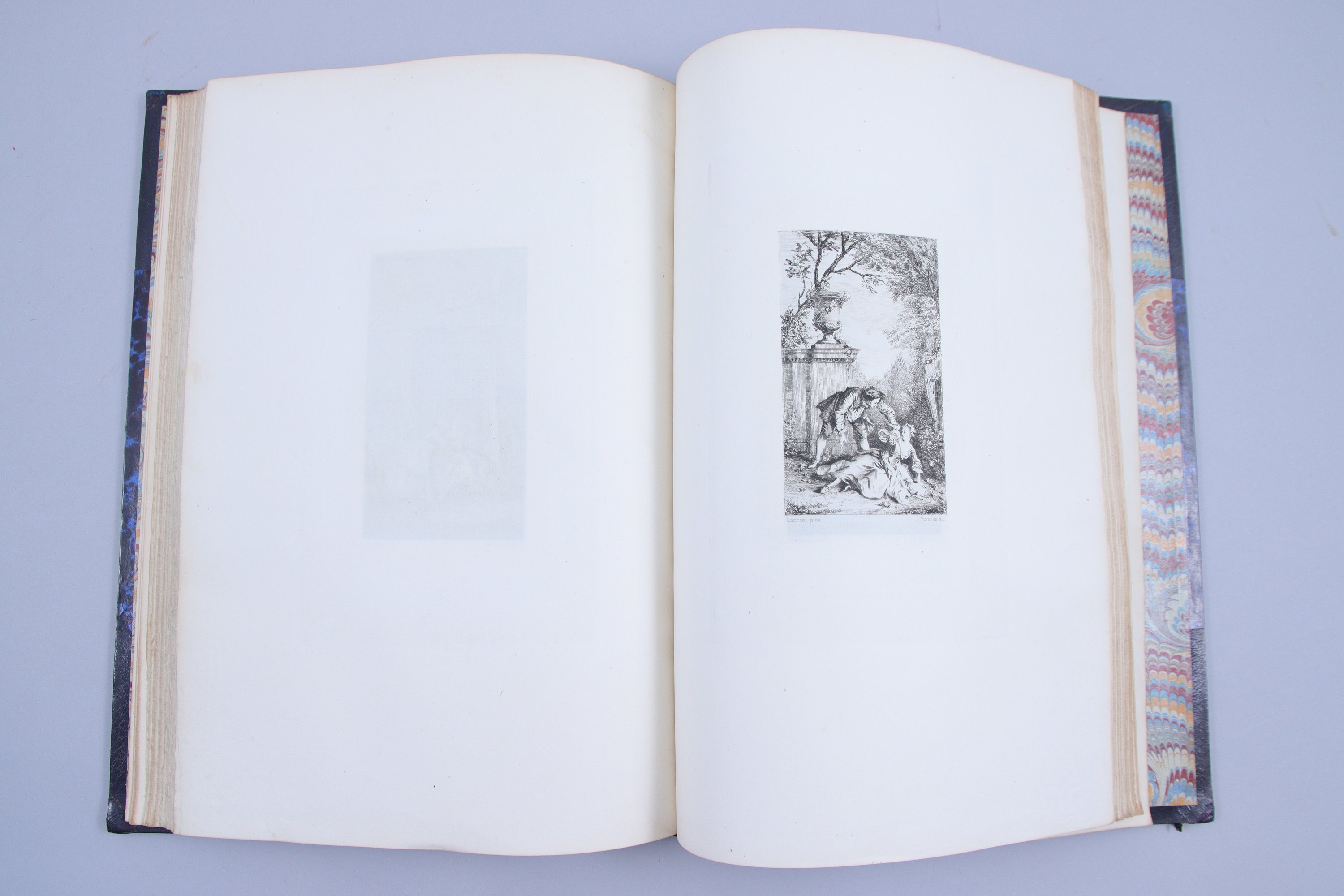 Collection complète des figures éditées par Lemerre pour illustrer les Fables de La Fontaine (71 gravures sur cuivre d'après Oudry, par Courty, Greux, Le Rat, etc...) et ses Contes (40 gravures sur cuivre d'après Fragonard, Boucher, Eisen, etc...gravées par les mêmes), plus deux portraits gravés par Le Rat. Tirage sur beau vergé, à toutes marges.