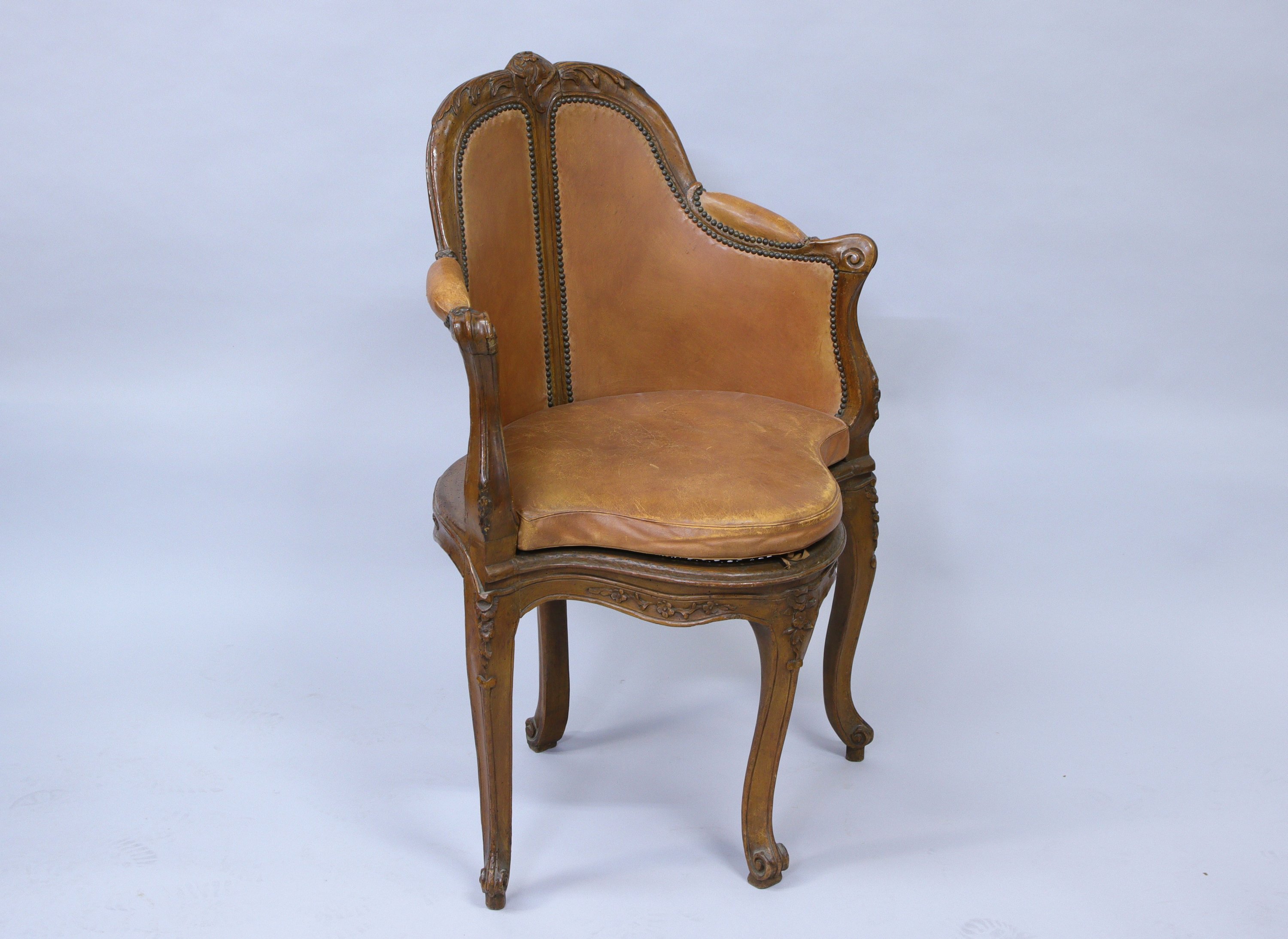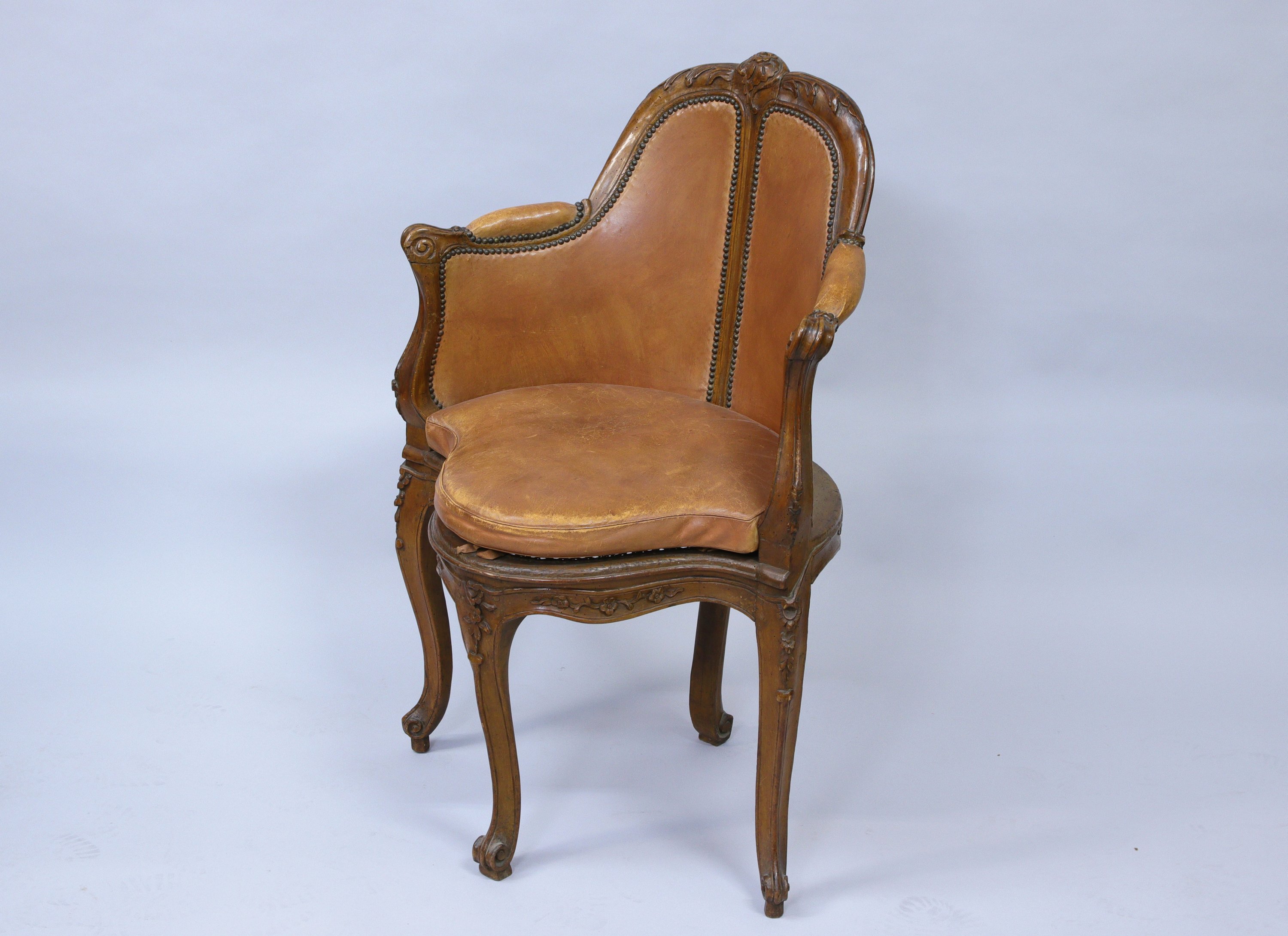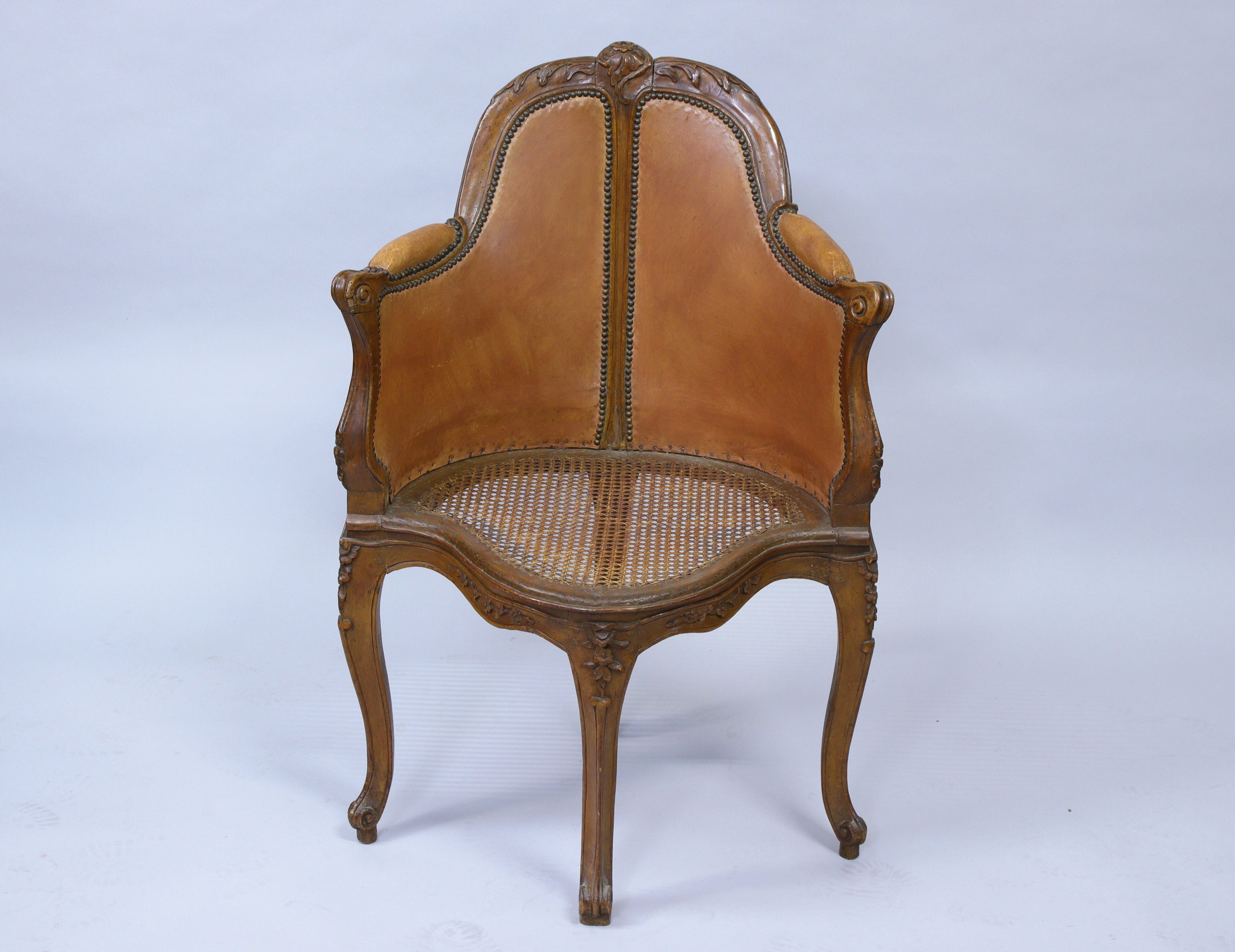 Fauteuil de bureau canné de forme galbée, en bois mouluré...