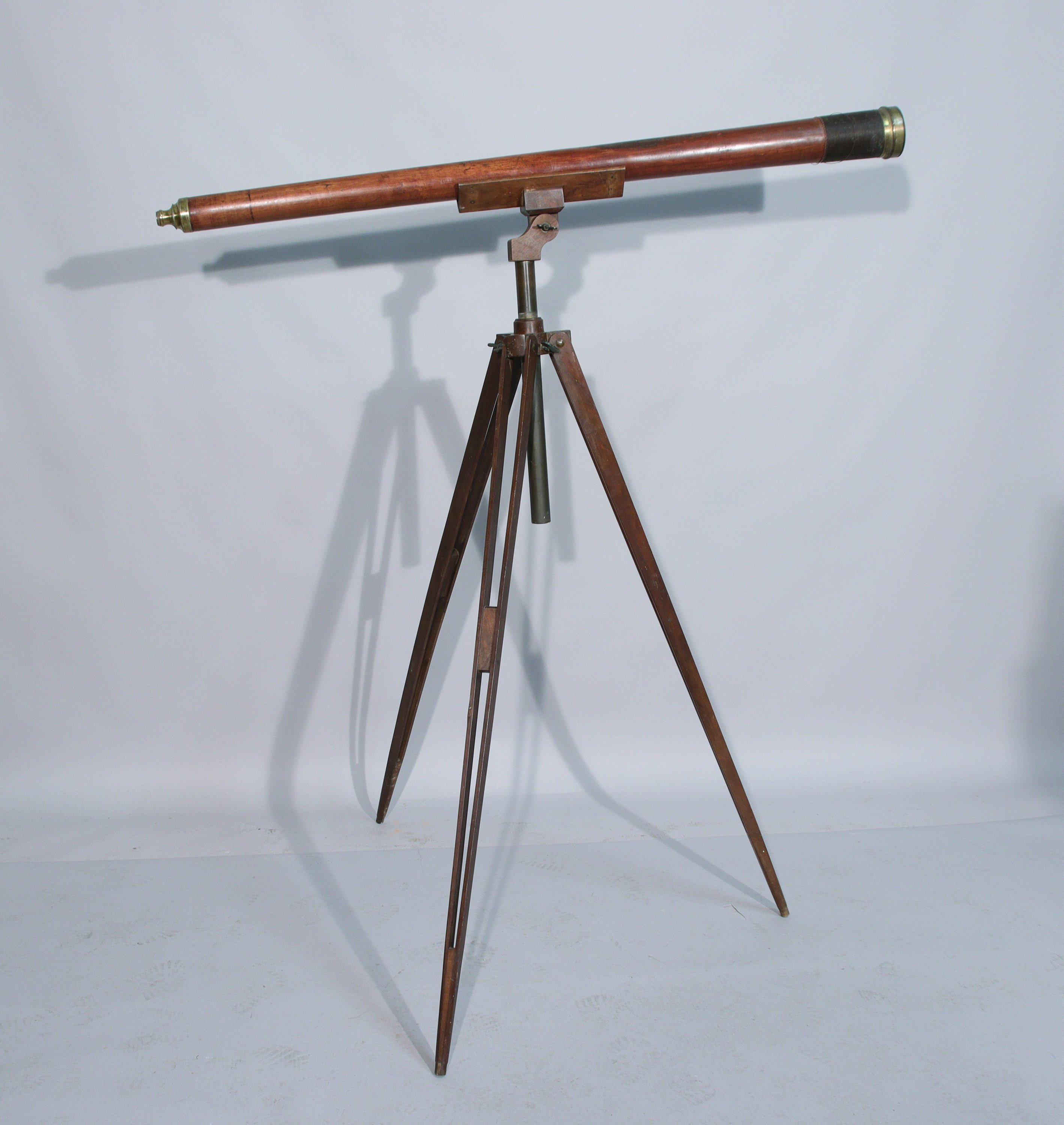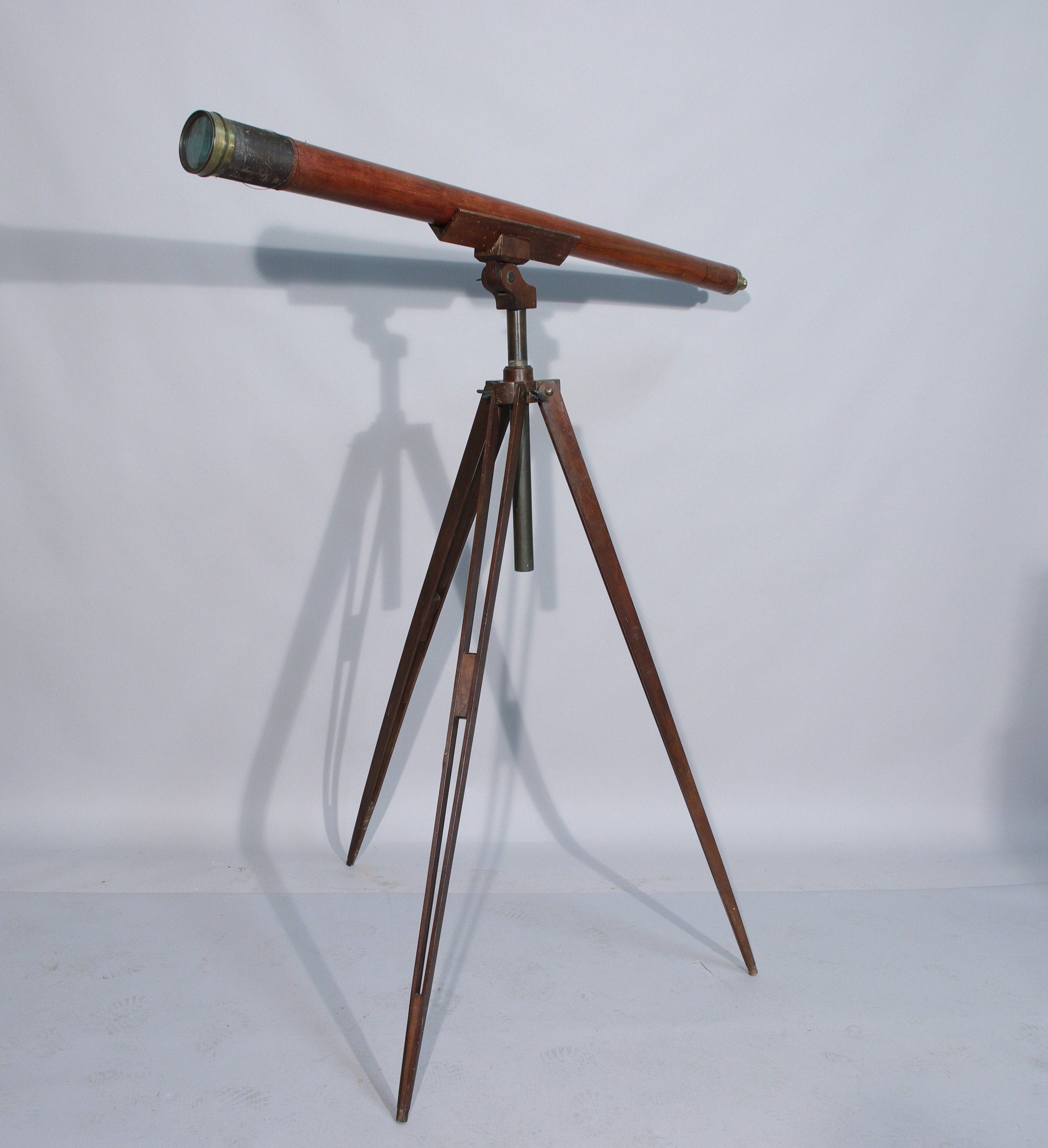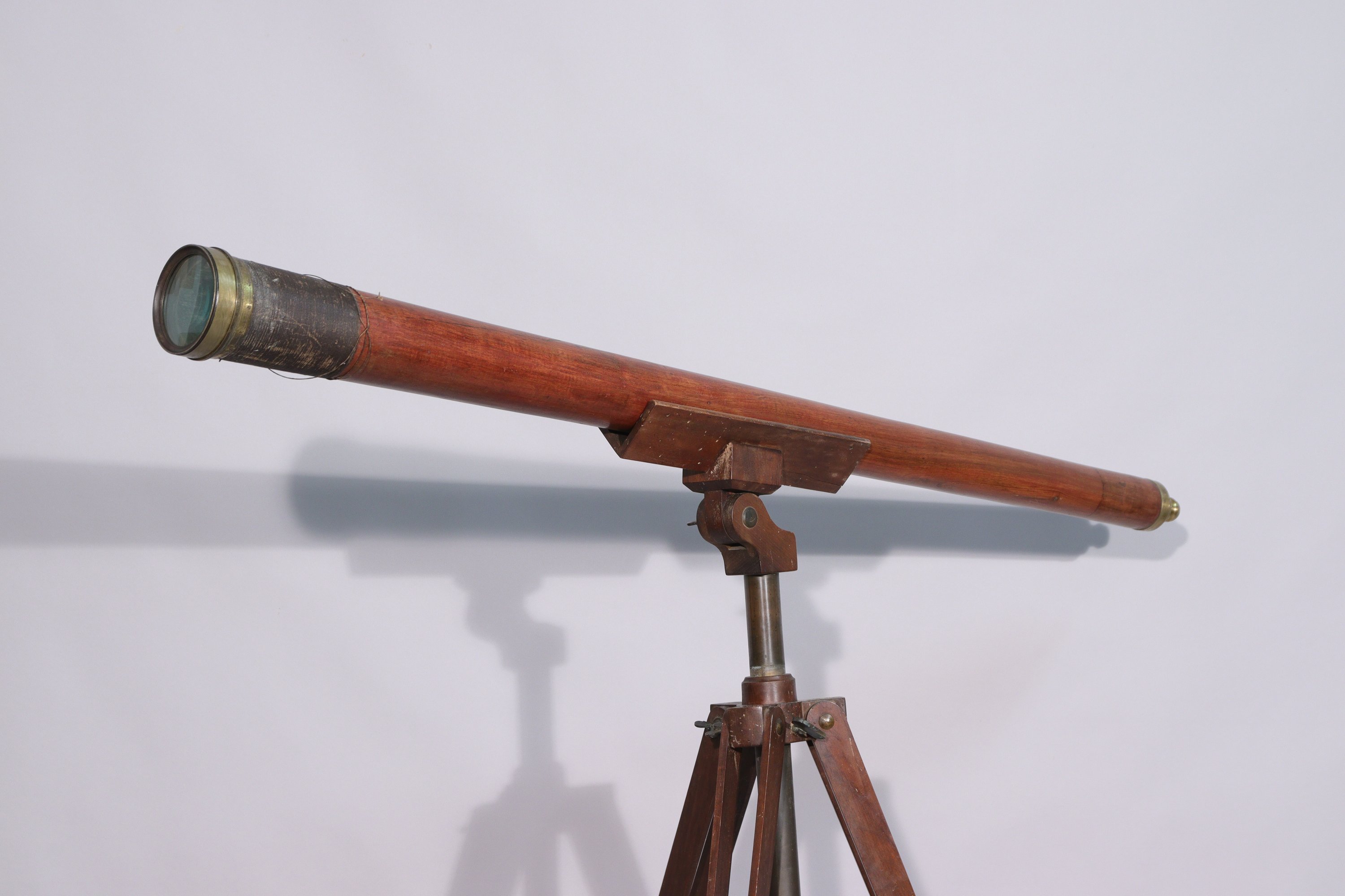 Belle longue-vue astronomique ou de marine en bois et laiton...