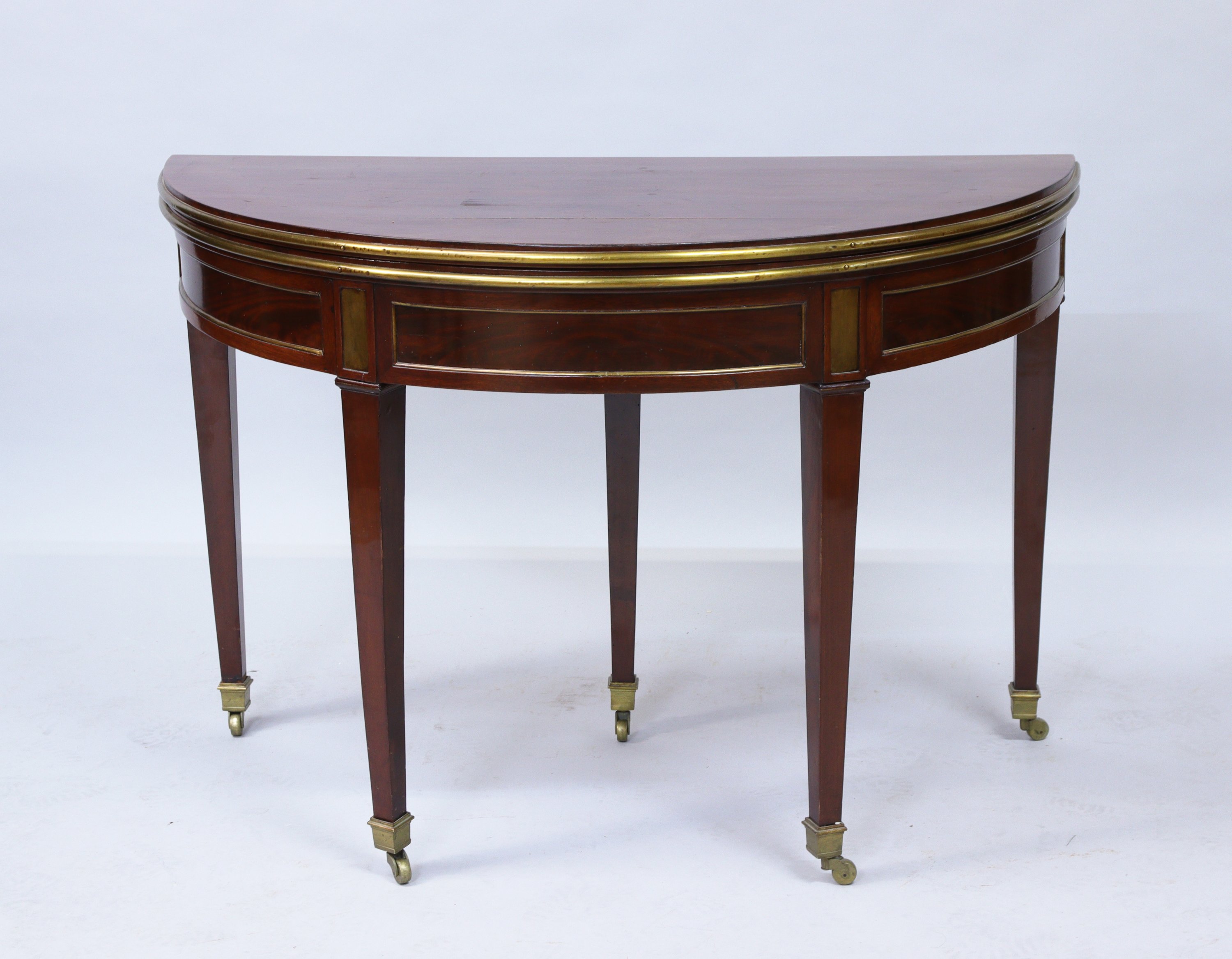 Table demi-lune en acajou et placage d'acajou. Le plateau se...