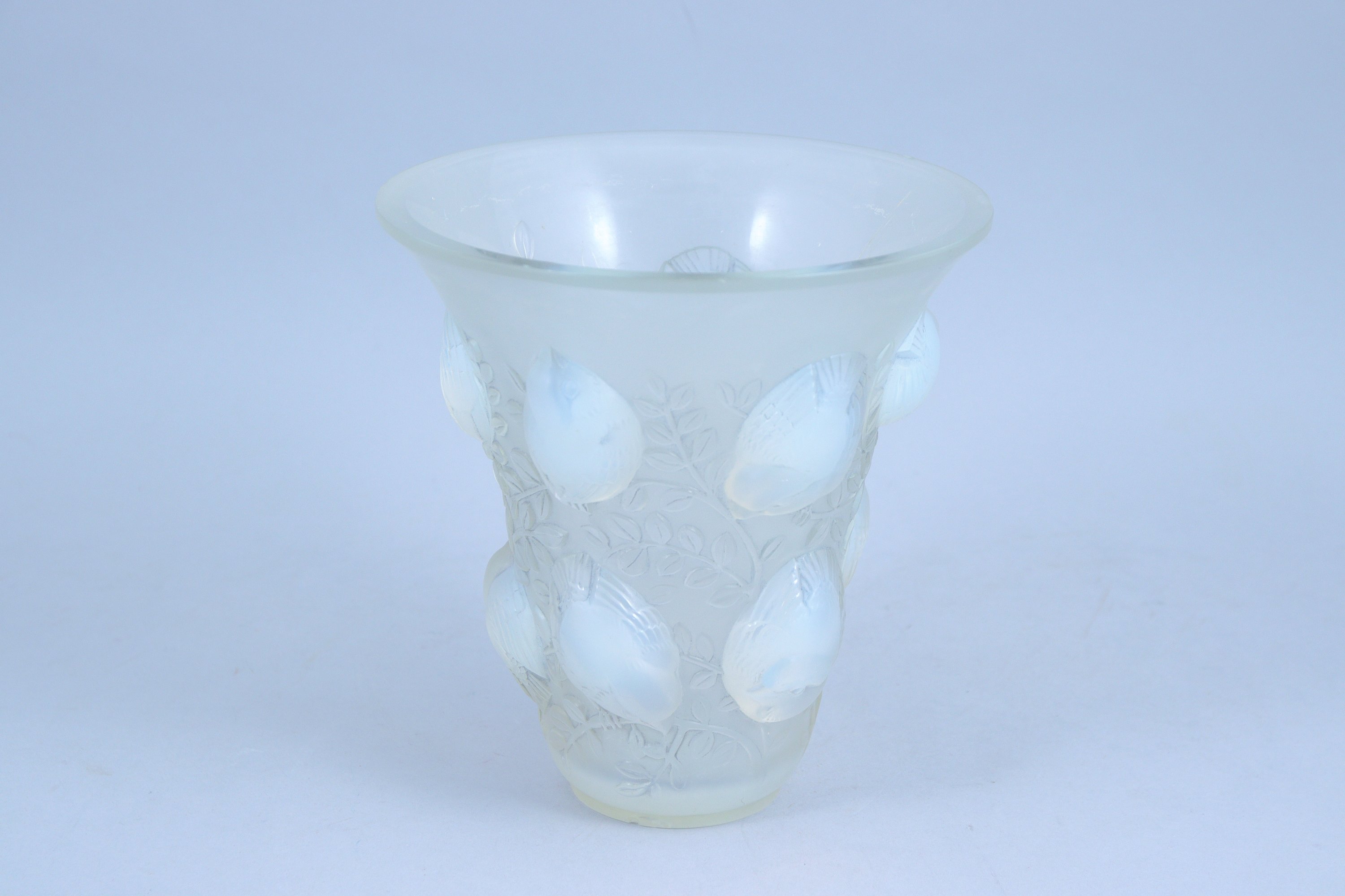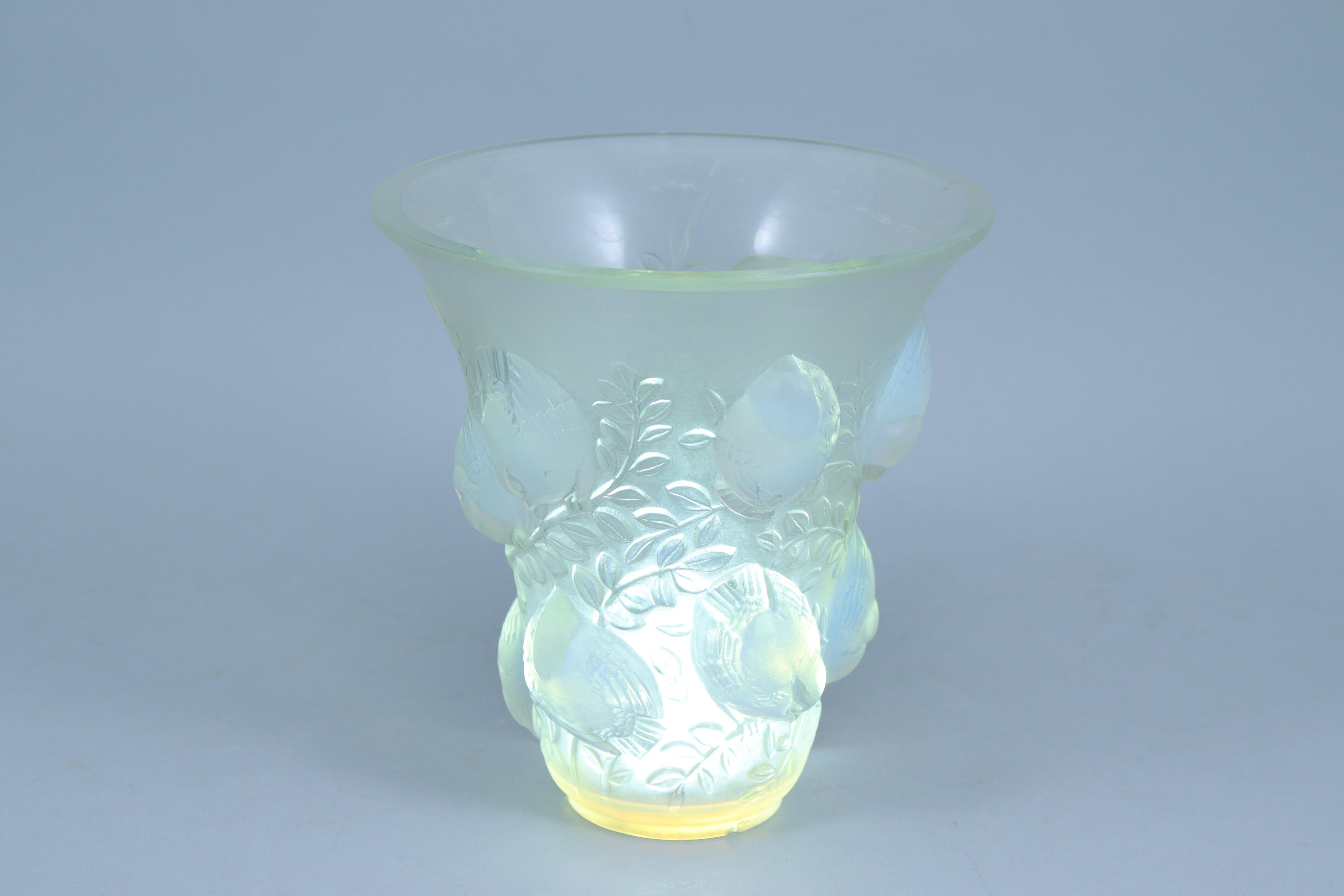 en verre moulé-pressé à patine opalescente.