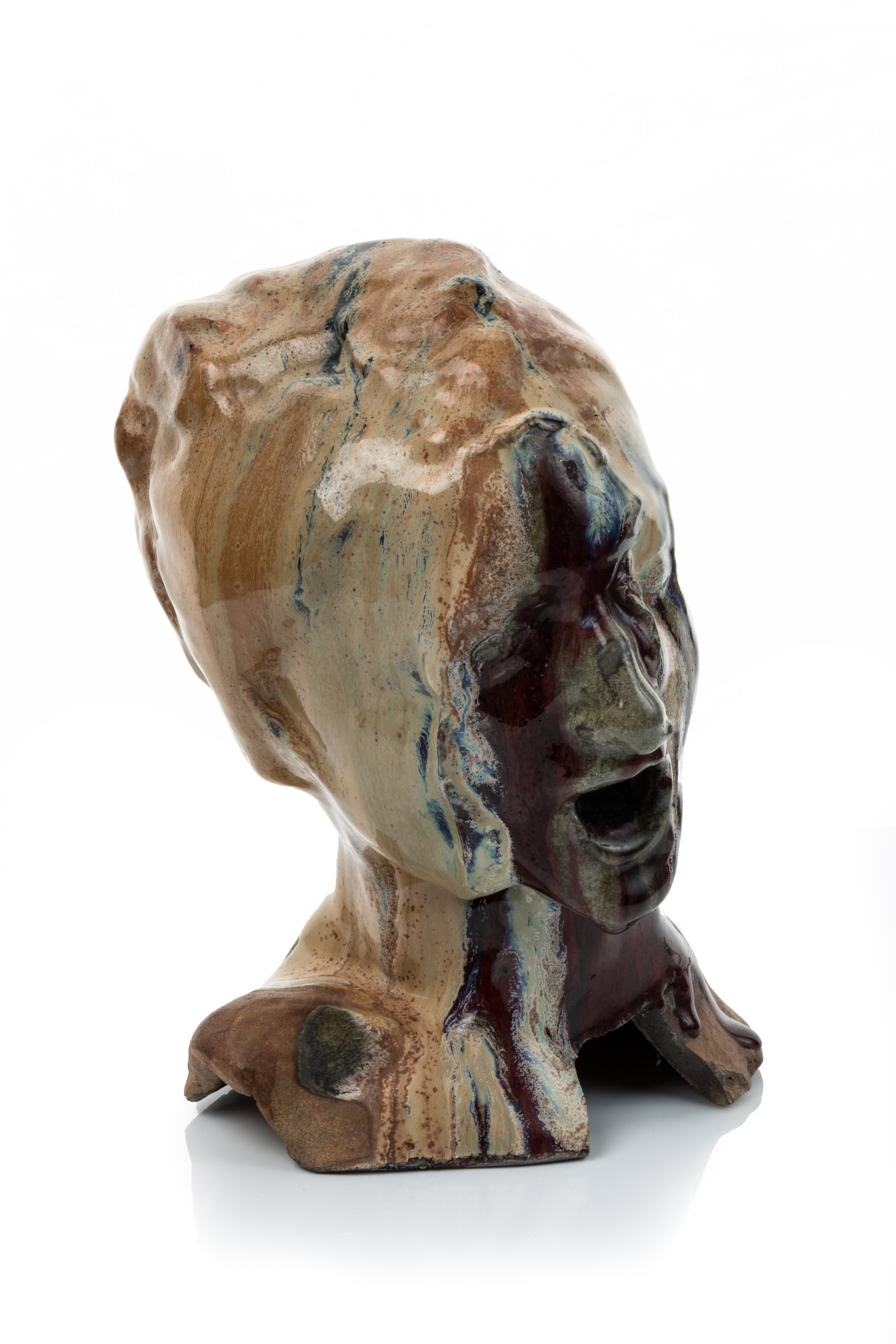 Buste de femme hurlant Grès en ronde bosse vernissé de...