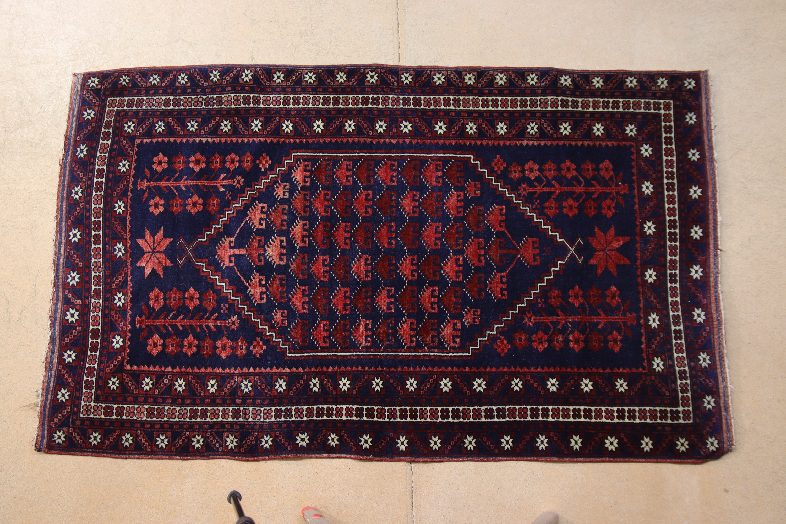 Tapis Bélouchistan à fond noir, décor de crochets dans un...