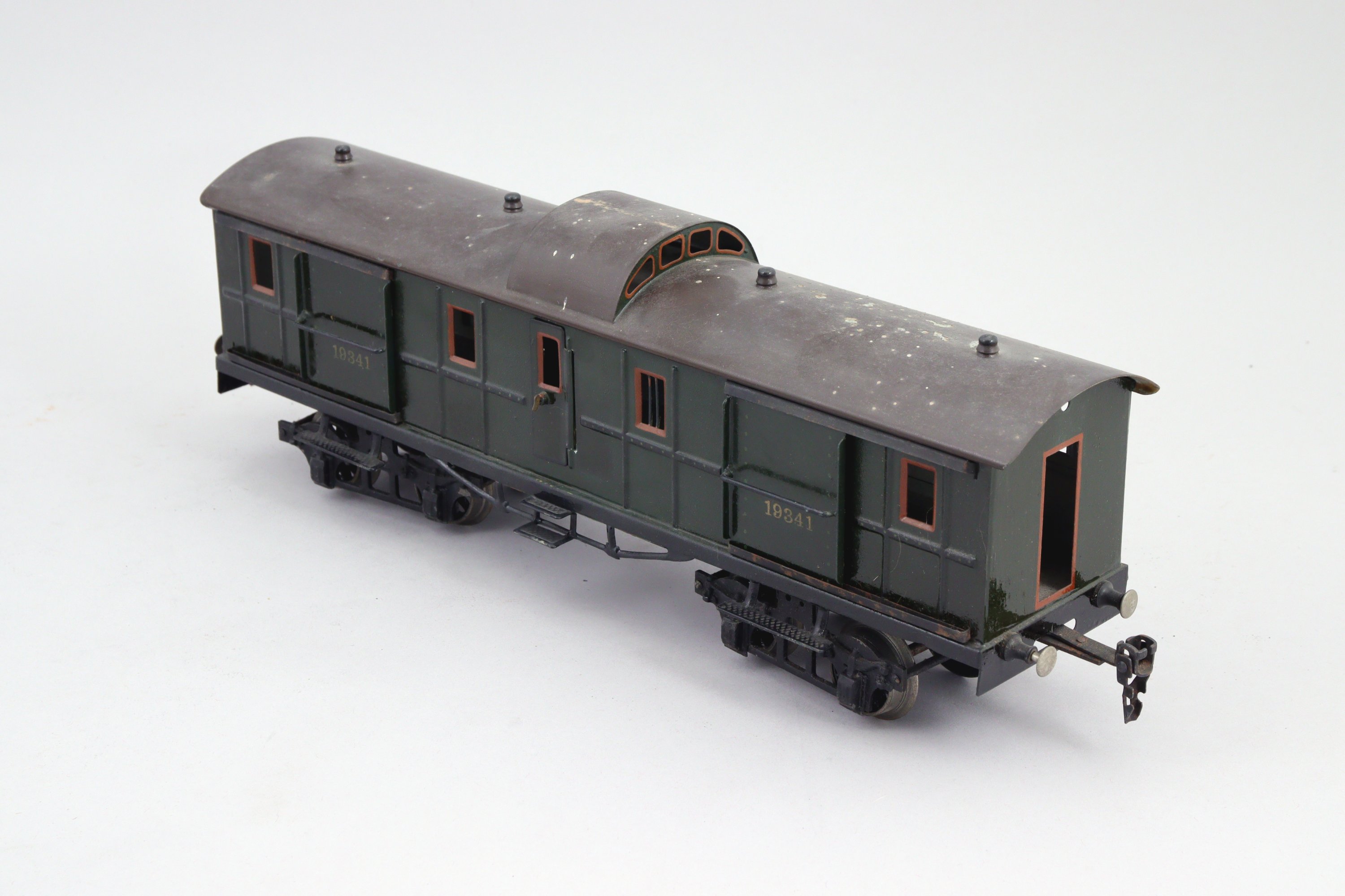 Fourgon à bagage à bogies, vert, référence 19341, toit rond marron.